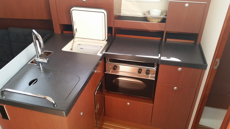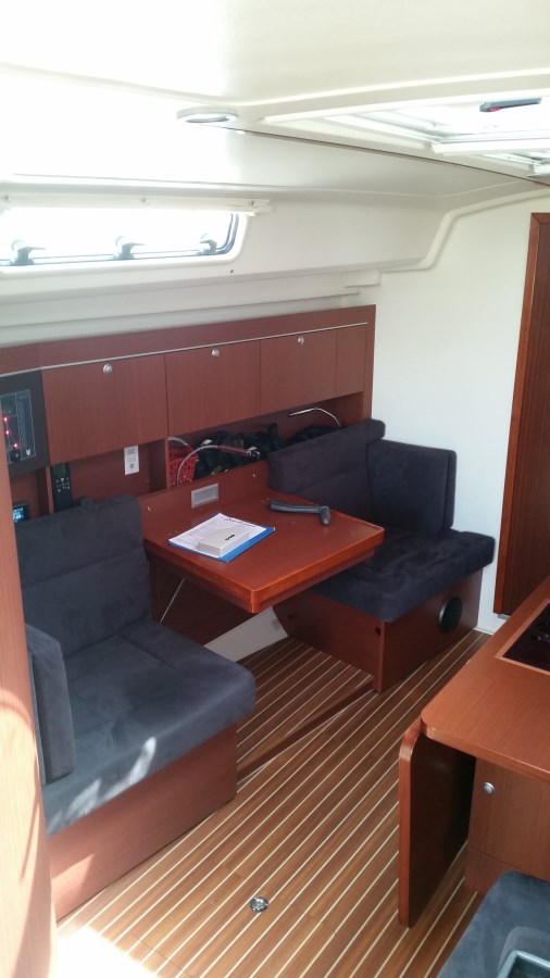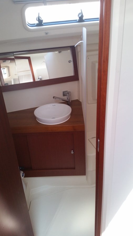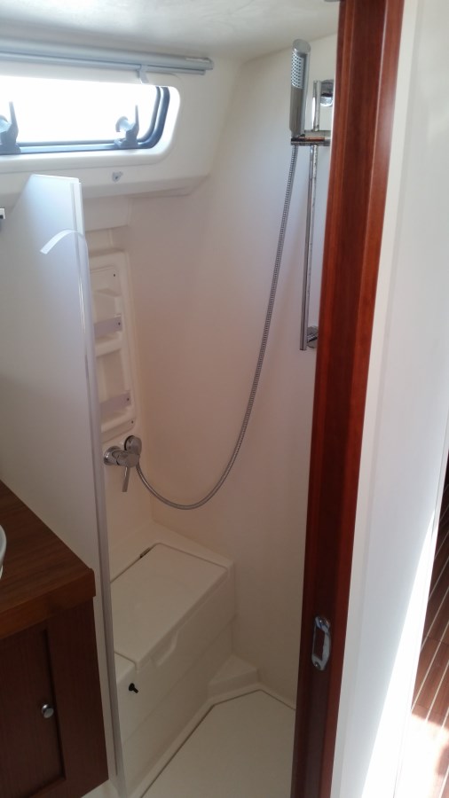 | Outside | 12 V-Anschluss, Biminitop, Cockpitdusche, Cockpittisch, elektr. Ankerwinsch, Gangway, Solaranlage, Sprayhood, Teak im Cockpit, Windex |