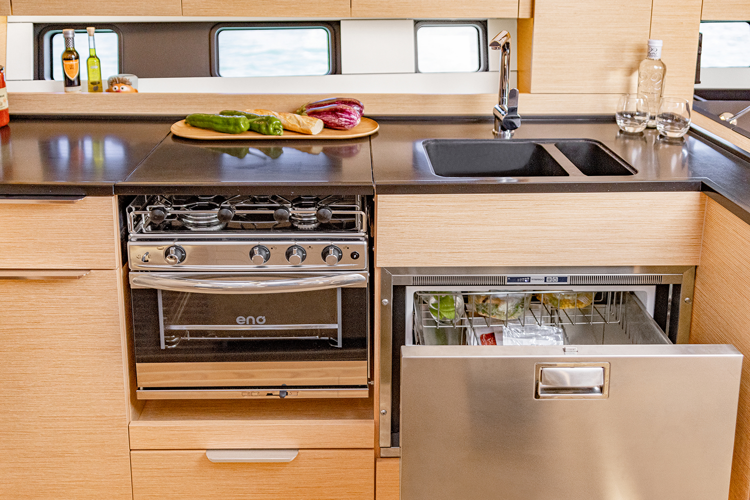 | Outside | Badeplattform, Biminitop, Cockpitdusche, Cockpitlautsprecher, Cockpitpolster, Cockpittisch, Grill, Sprayhood, Teak im Cockpit |