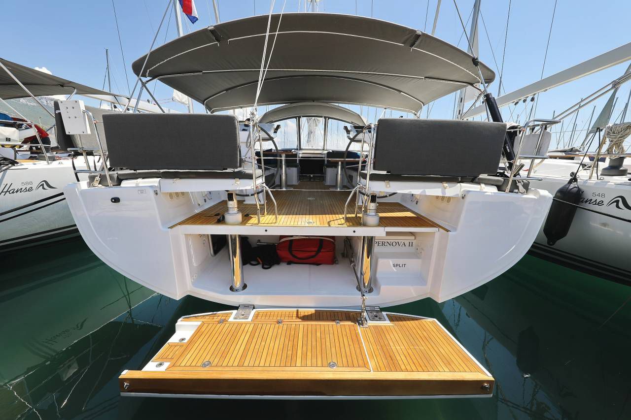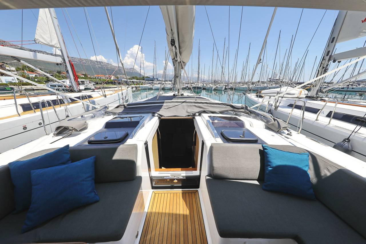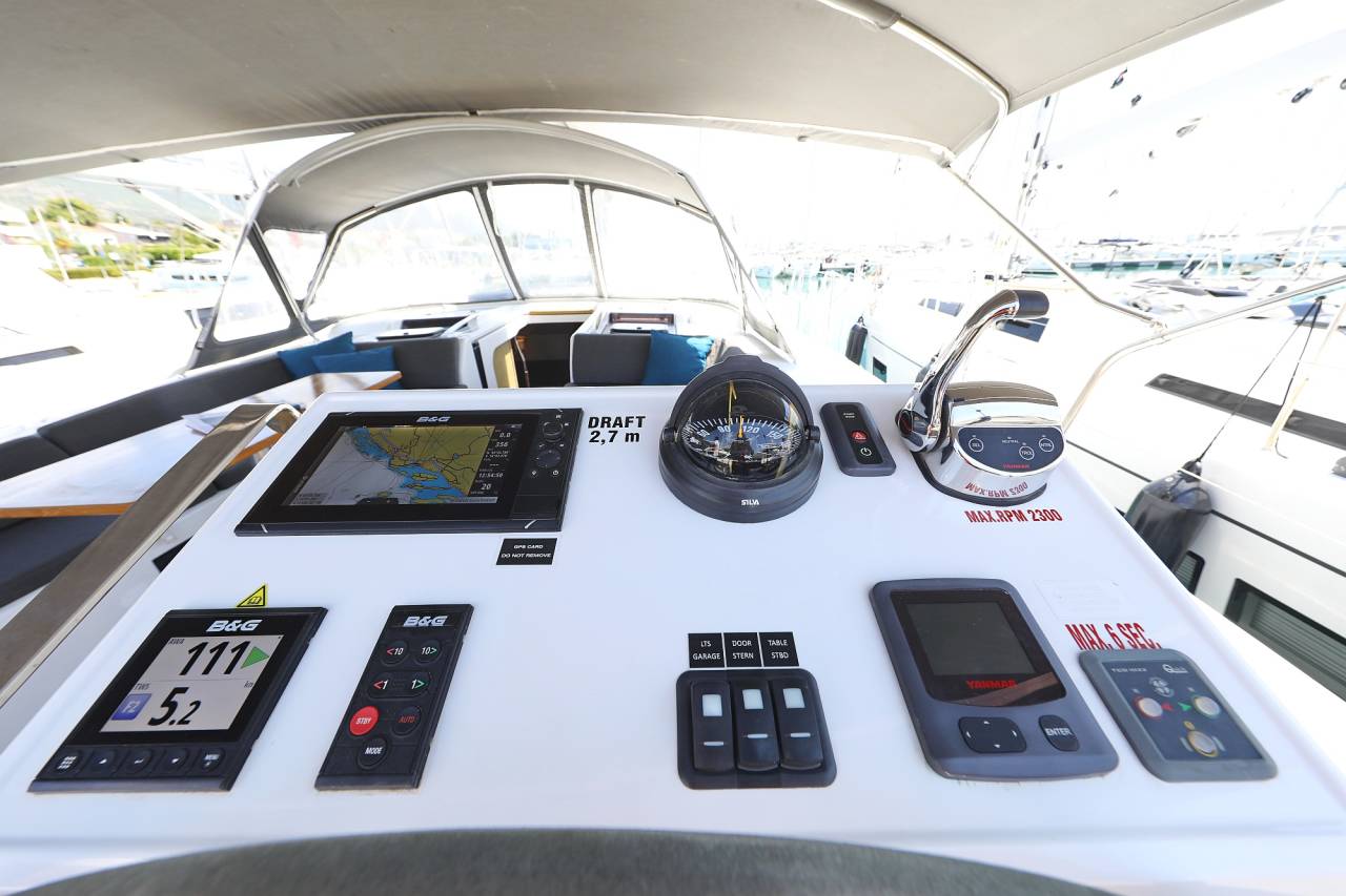 | Outside | Biminitop, Cockpitdusche, Cockpitpolster, elektr. Ankerwinsch, elektr. Winsch, Sprayhood, Teak im Cockpit, Unterwasserbeleuchtung, Windex |