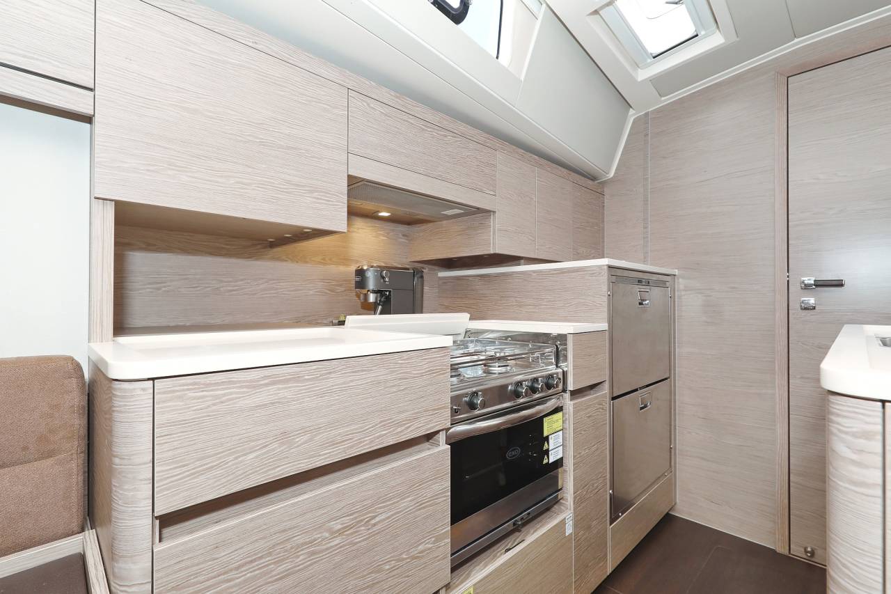 | Inside | Eiswürfelmaschine, Espresso Maschine, Gasherd mit Backofen, Generator, Heizung, Inverter 12V/220V, Kaffeemaschine, Klimaanlage (ohne Landstrombedarf), Kühlschrank, Radio mit MP3 , Warmwasser, WC (elektr.) |