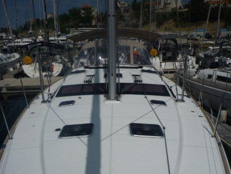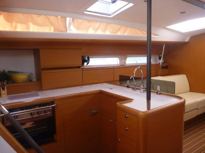 | Outside | 220 V-Landanschluss, Anker mit Kette, Biminitop, Bootshaken, Cockpitdusche, Cockpitpolster, Cockpittisch, elektr. Ankerwinsch, Fender, Festmacherleinen, Gangway, Sprayhood, Wantenschneider, Windex |