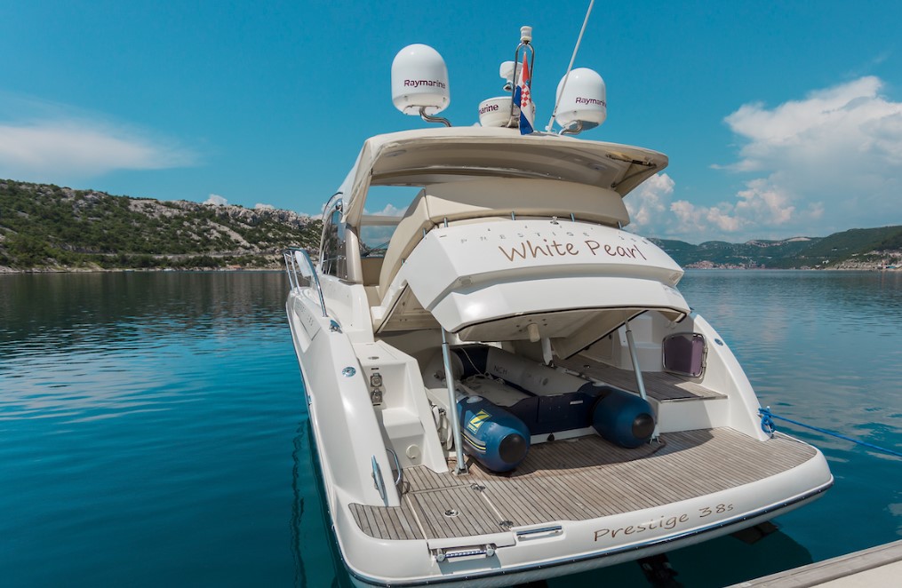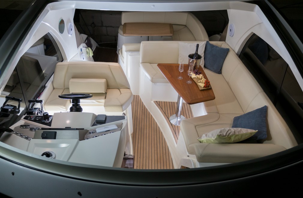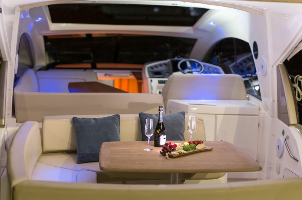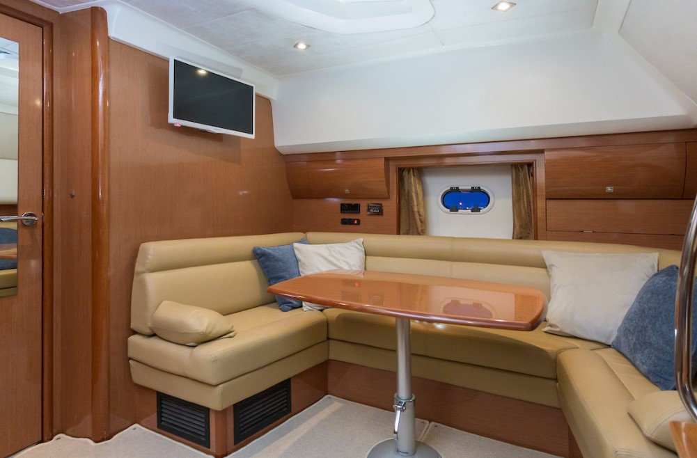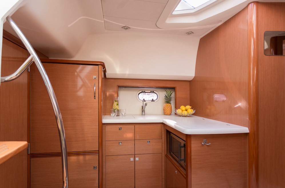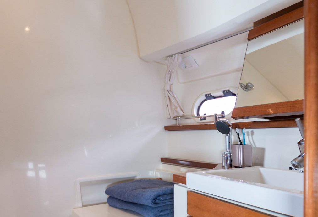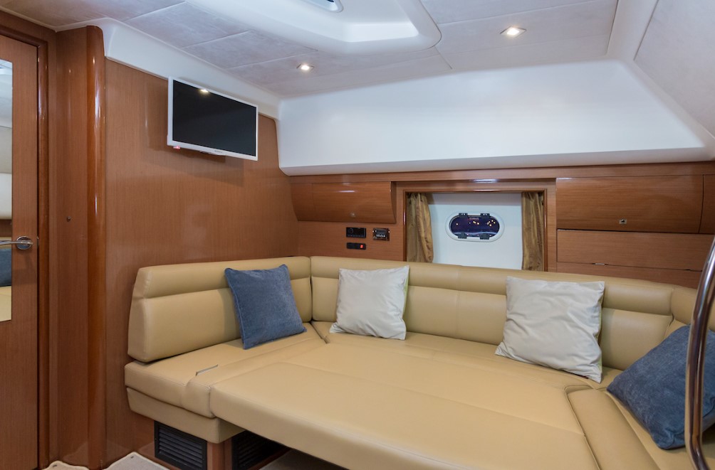 | Outside | Anker mit Kette, Badeleiter, Badeplattform, Bootshaken, Cockpitdusche, Cockpitkühlschrank, Cockpitlautsprecher, Cockpitpolster, Deckbürste, Deckpolster, Fender, Gangway, Hardtop, Kunststoff-Eimer (Pütz), Wasserschlauch |