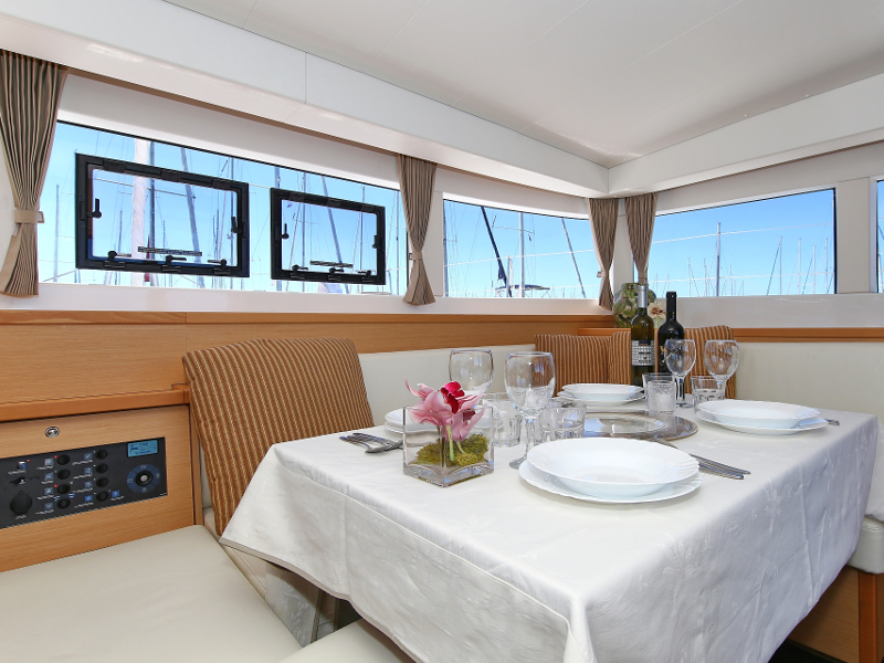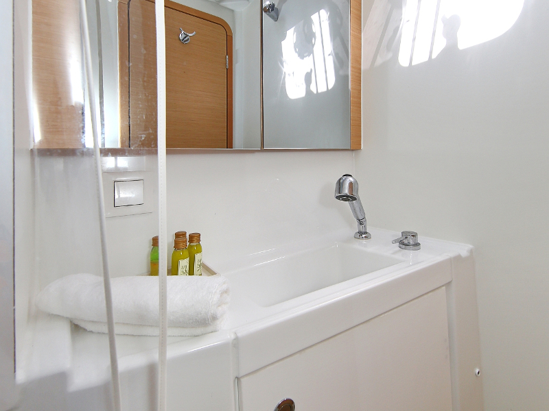 | Outside | Badeleiter, Biminitop, Cockpitdusche, Cockpitlautsprecher, Cockpitpolster, Cockpittisch, elektr. Ankerwinsch, Fender, Gangway, Heckdusche, Winschen |