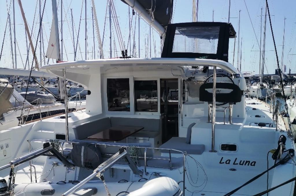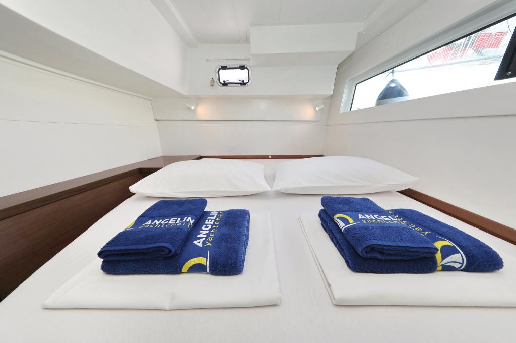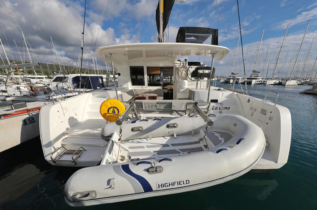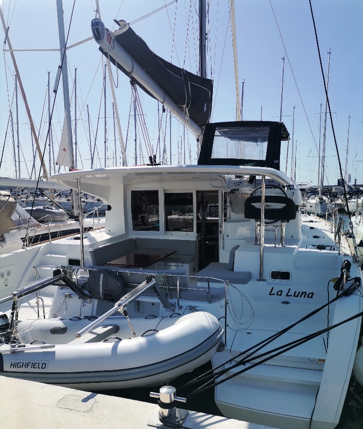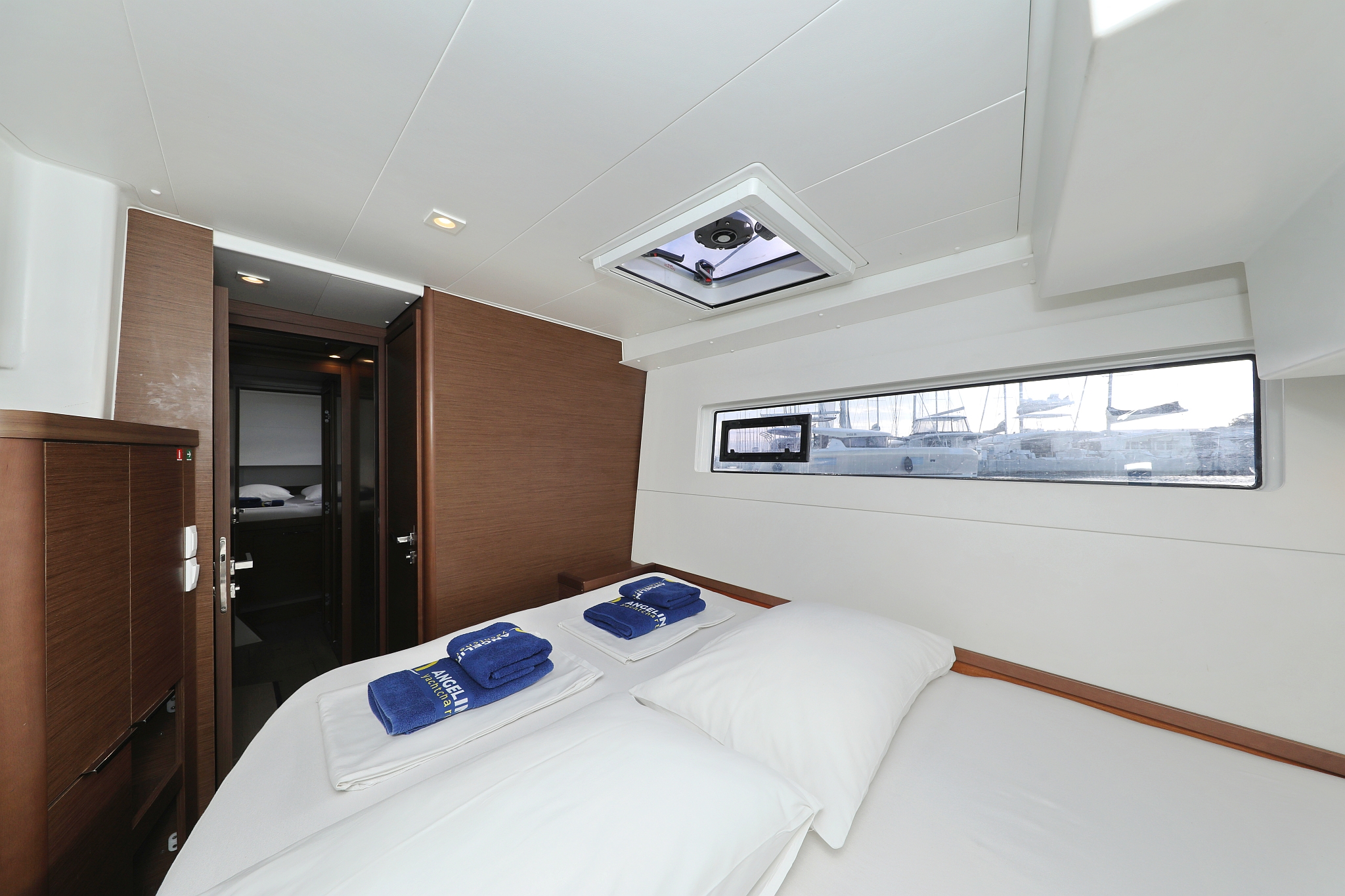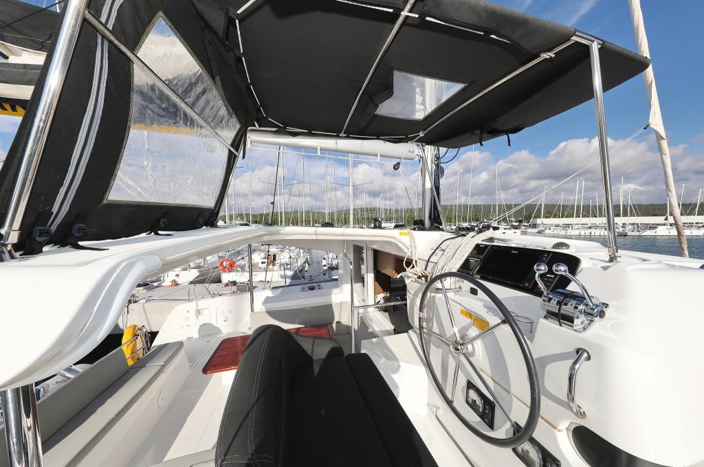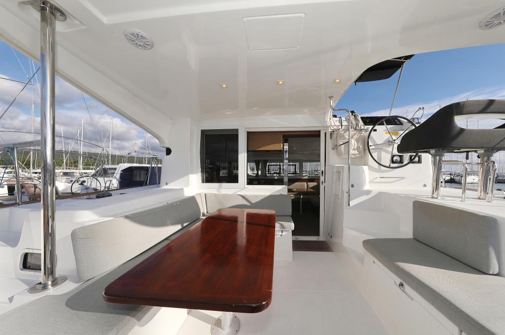 | Outside | 220 V-Landanschluss, Anker mit Kette, Badeleiter, Biminitop, Bootshaken, Cockpitdusche, Cockpitlautsprecher, Cockpitpolster, Cockpittisch, Cockpittisch mit Eisbox, Deckpolster, elektr. Ankerwinsch, Faltsteuerrad, Fender, Festmacherleinen, Gangway, Sonnendeck, Wasserschlauch, Winschen |