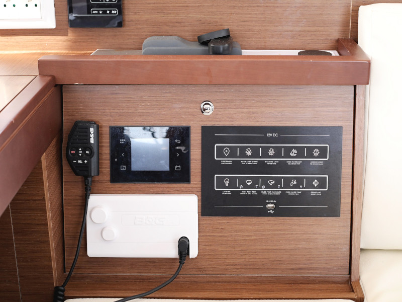 Outside Anker mit Kette, Biminitop, Bootshaken, Cockpitdusche, Cockpitlautsprecher, Cockpitpolster, Cockpittisch, elektr. Ankerwinsch, Fender, Winschen