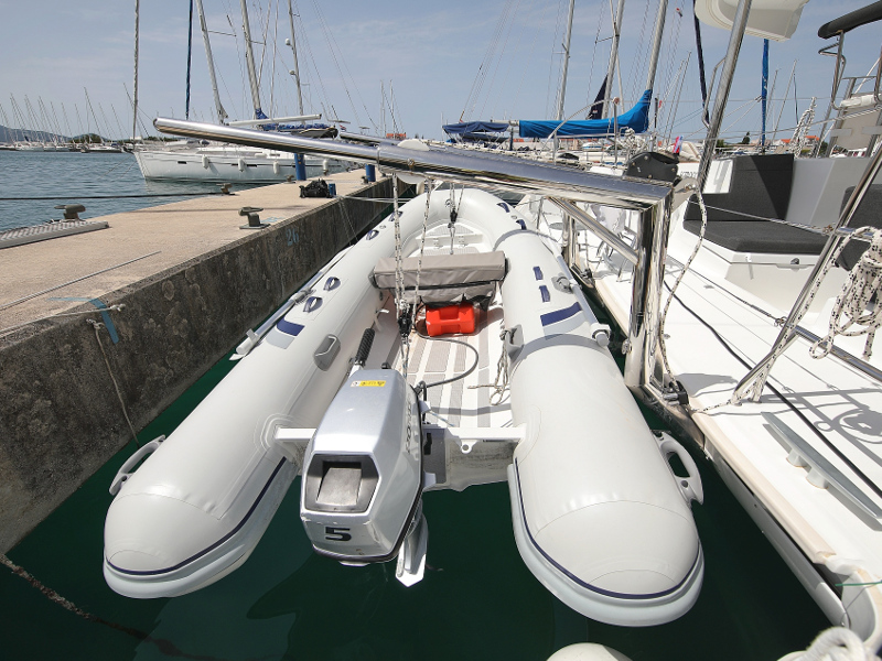 | Outside | Anker mit Kette, Cockpitkühlschrank, Cockpitpolster, elektr. Winsch, Fender |