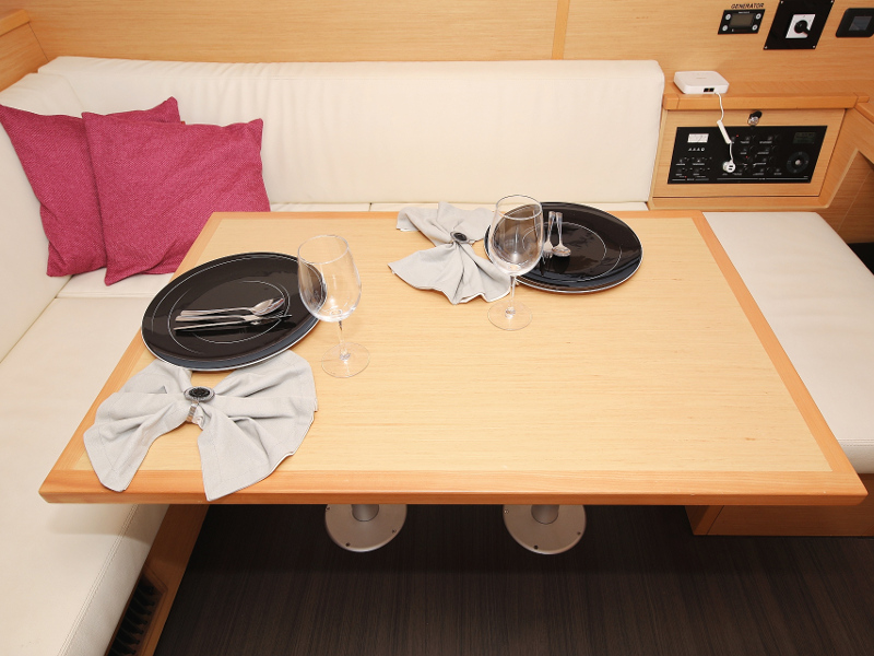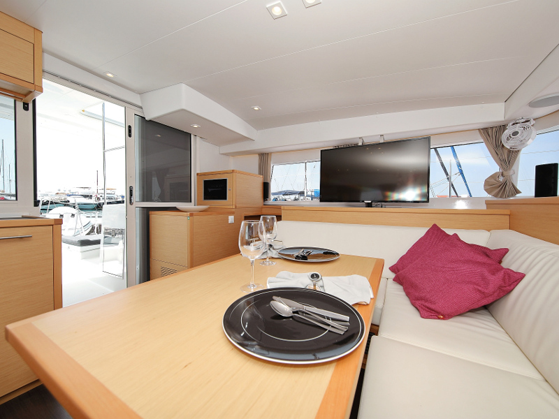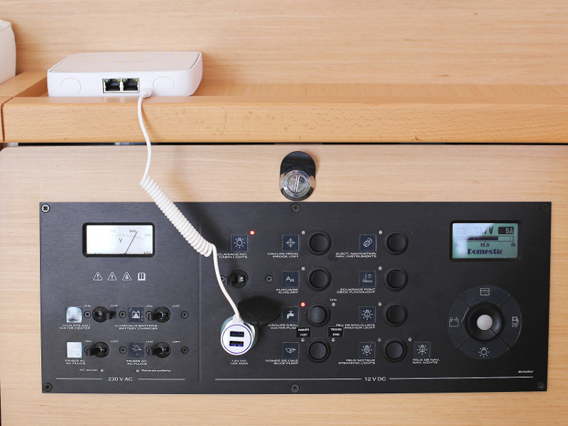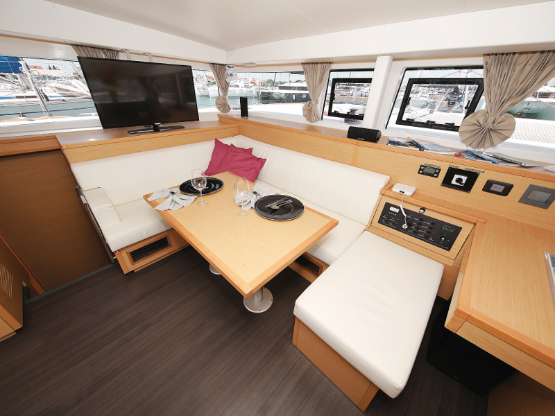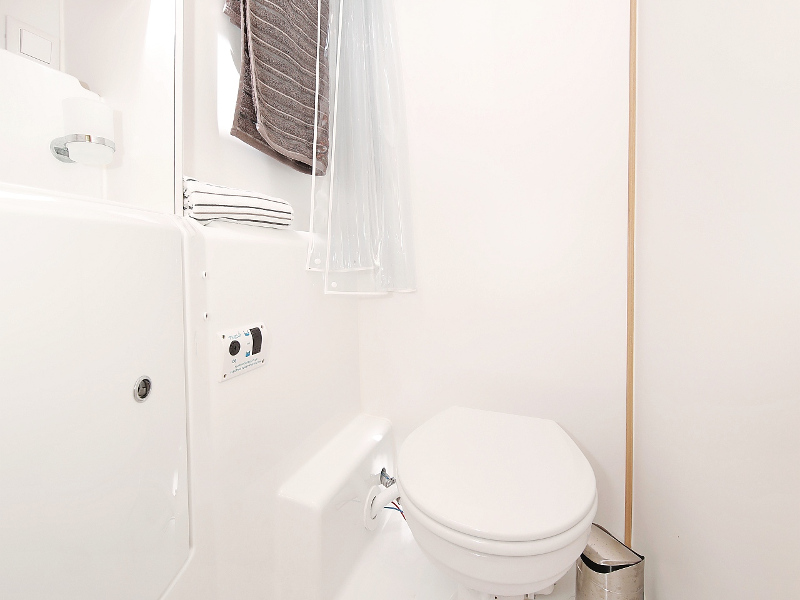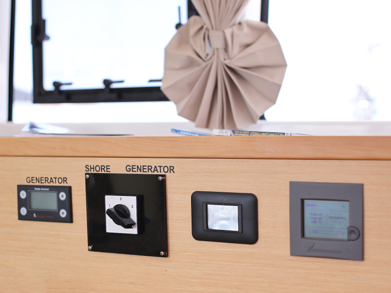 | Inside | Eiswürfelmaschine, Generator, Heizung, Klimaanlage (ohne Landstrombedarf), Klimaanlage (Salon), Kühlschrank, Salontisch absenkbar, TV, USB Steckdosen in den Kabinen, Ventilator, WC (elektr.) |