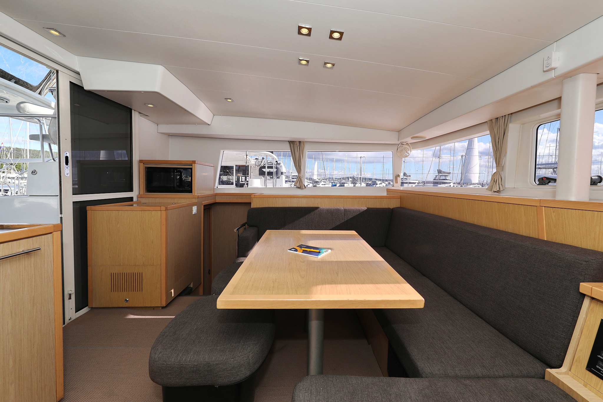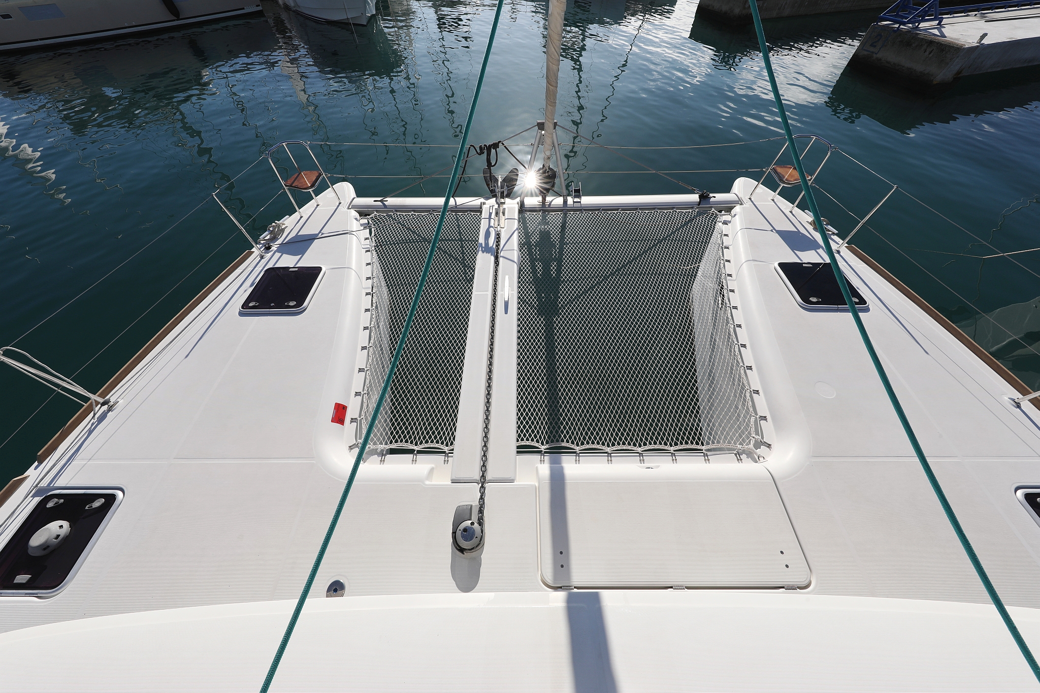 | Outside | 220 V-Landanschluss, Anker mit Kette, Cockpitdusche, Cockpitkühlschrank, Cockpitlautsprecher, Cockpitpolster, Cockpittisch, elektr. Ankerwinsch, elektr. Großwinsch, Fender, Gangway, Hardtop, Kugelfender, Solaranlage, Winschen |
