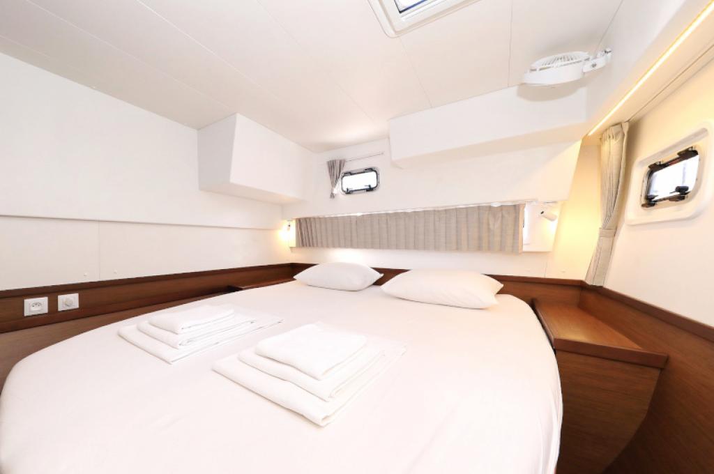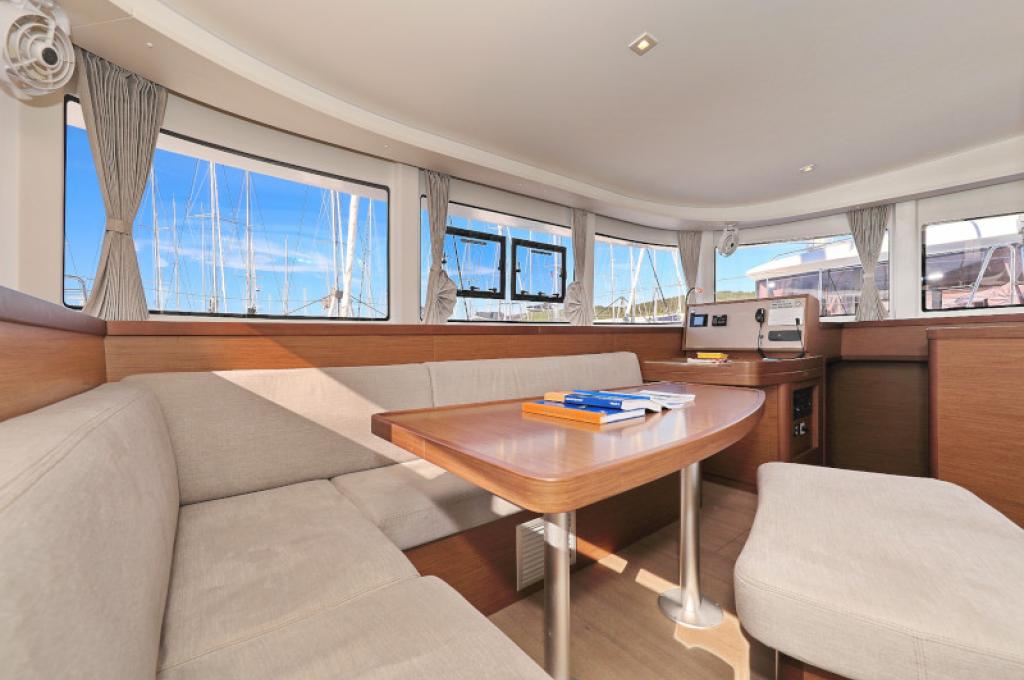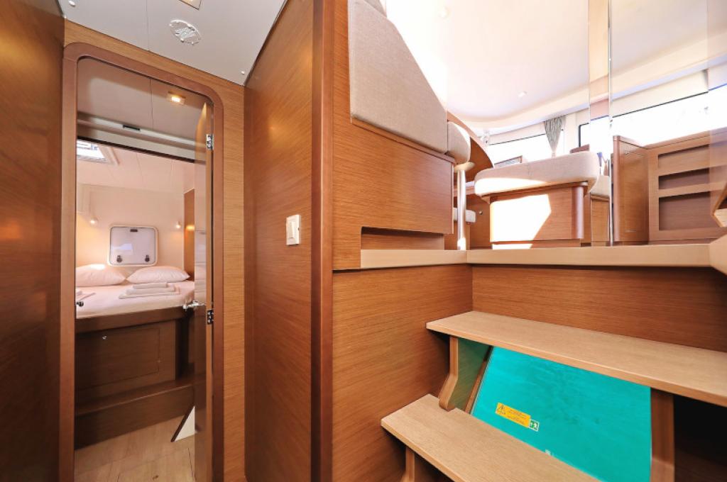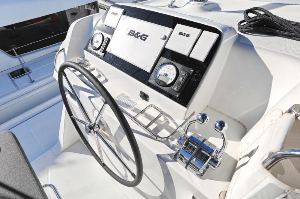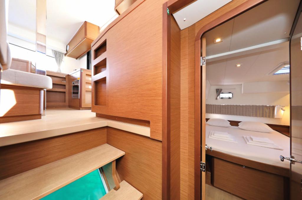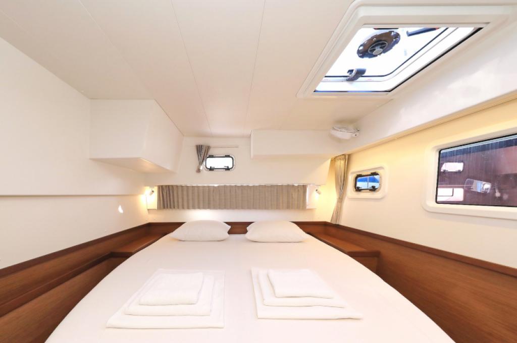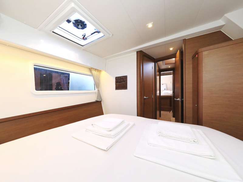 | Inside | Generator, Klimaanlage (ohne Landstrombedarf), Klimaanlage (Salon), Radio mit CD/MP3/USB/AUX-In, Salontisch absenkbar, USB Steckdosen in den Kabinen, Ventilatoren in Salon und Kabinen |