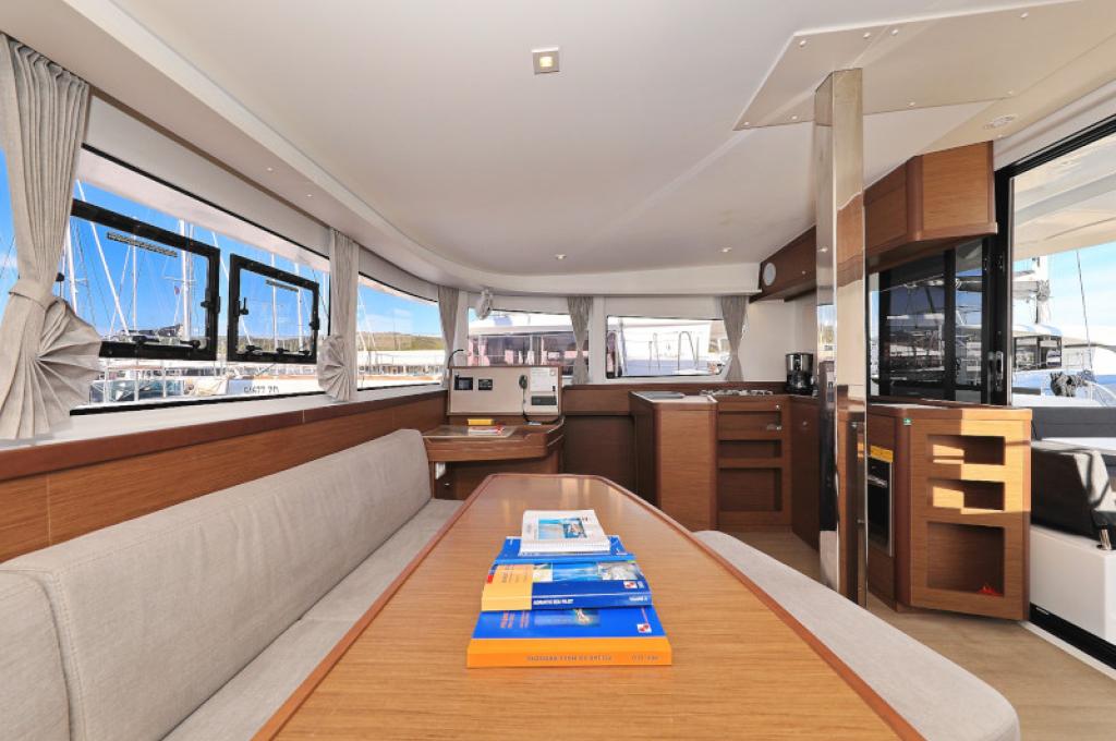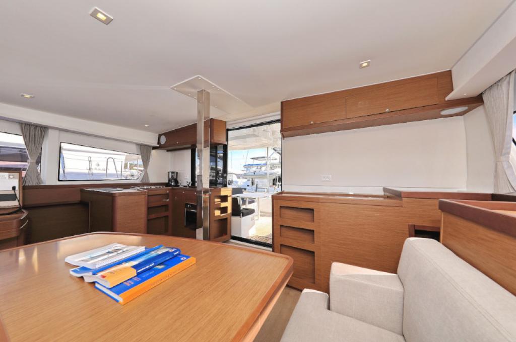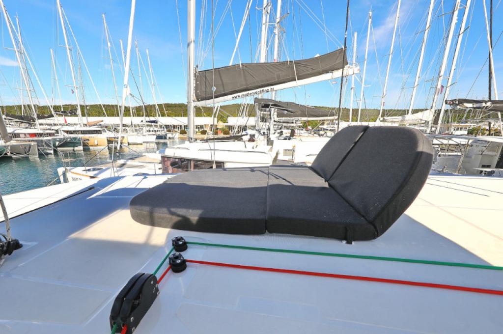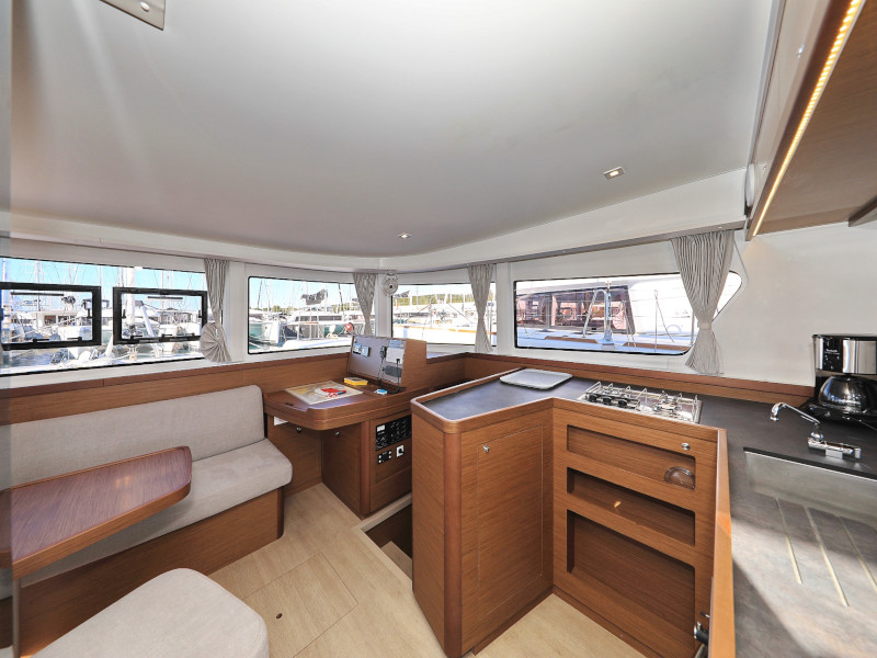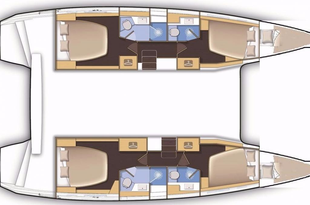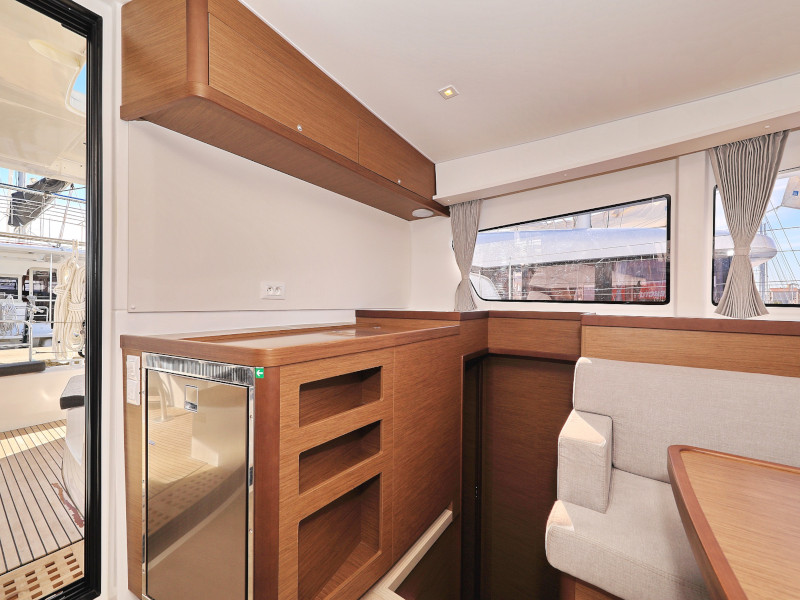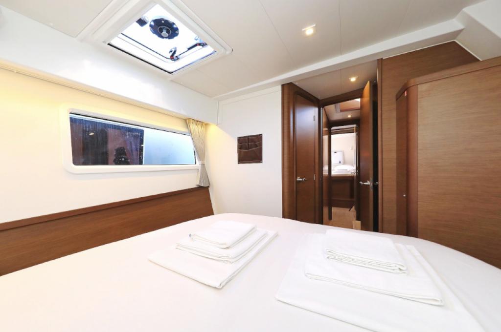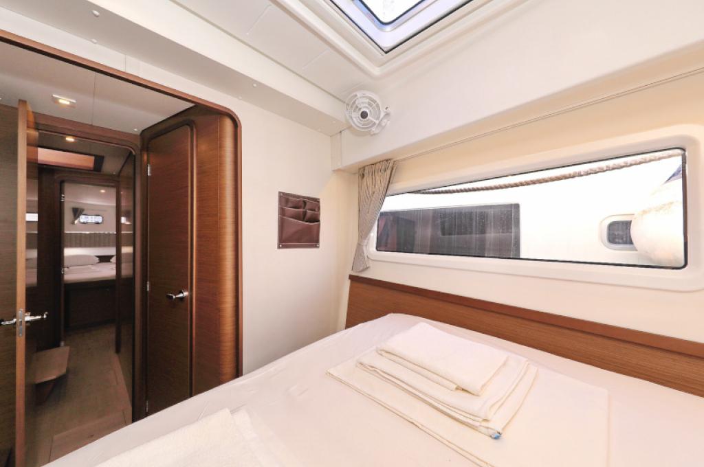| Inside | Generator, Klimaanlage (ohne Landstrombedarf), Klimaanlage (Salon), Radio mit CD/MP3/USB/AUX-In, Salontisch absenkbar, USB Steckdosen in den Kabinen, Ventilatoren in Salon und Kabinen |