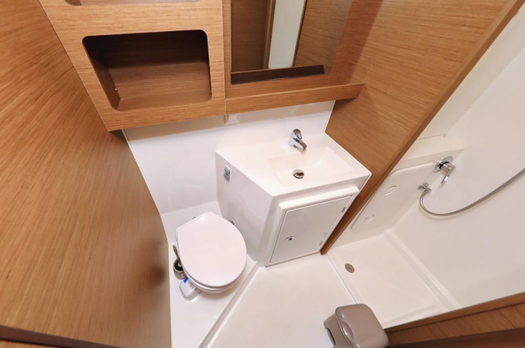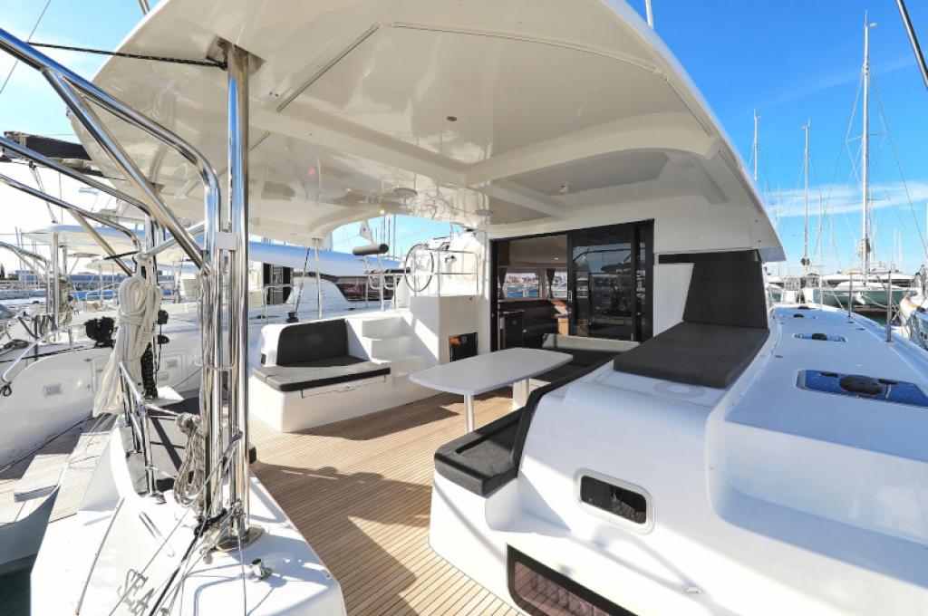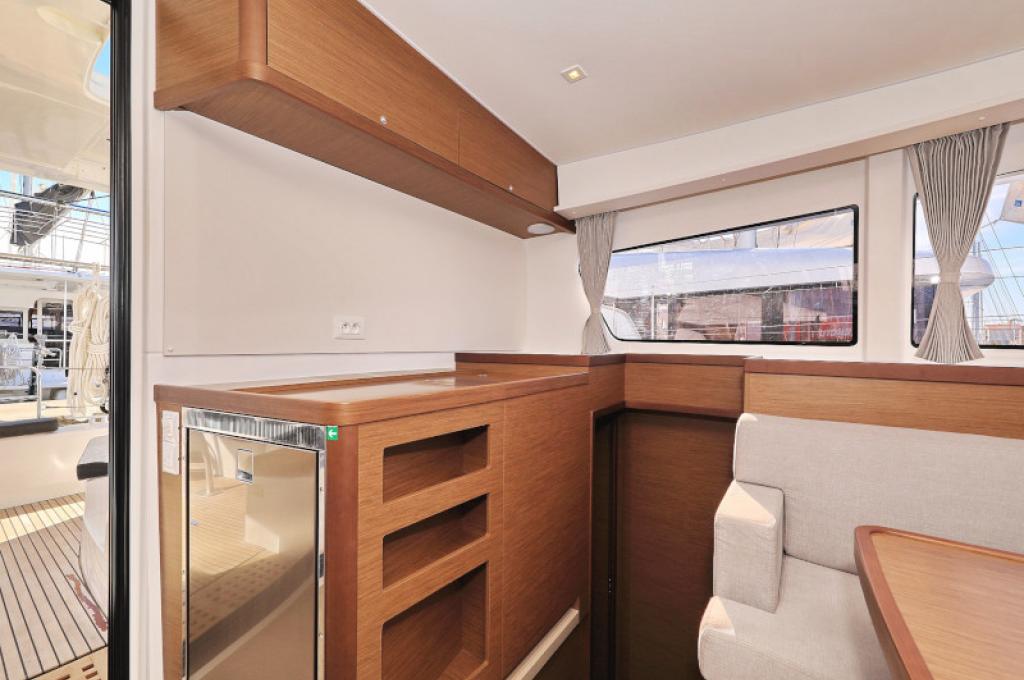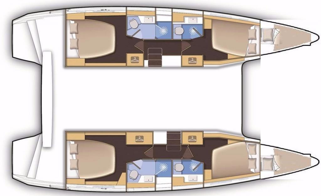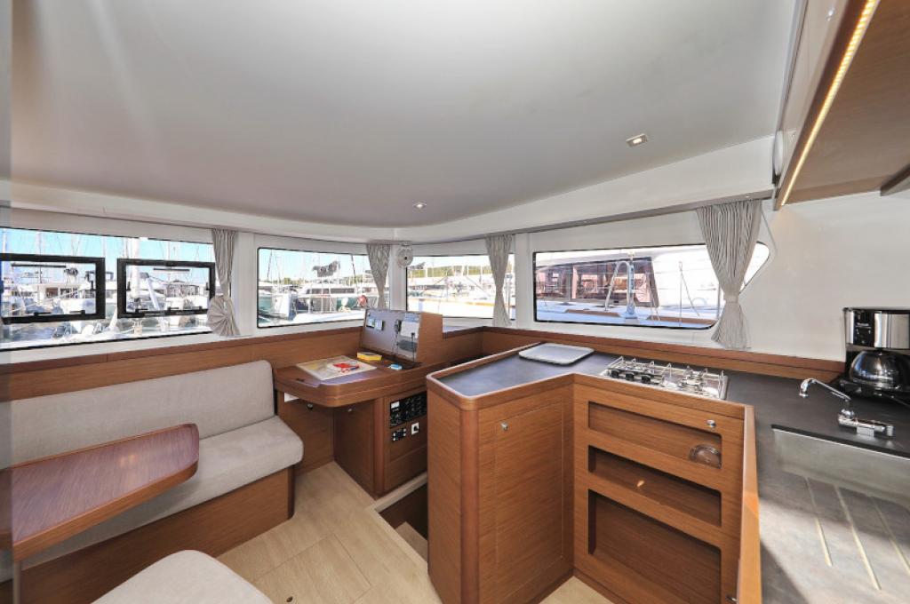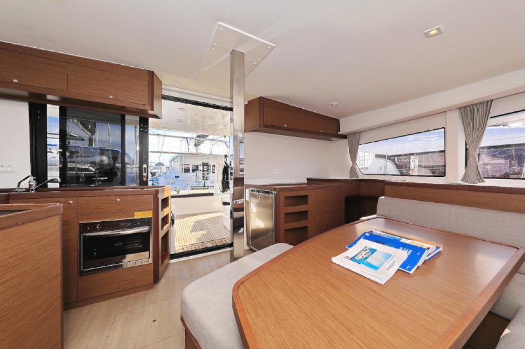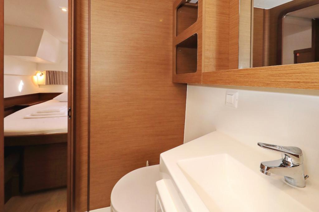 | Inside | Generator, Klimaanlage (ohne Landstrombedarf), Klimaanlage (Salon), Radio mit CD/MP3/USB/AUX-In, Salontisch absenkbar, USB Steckdosen in den Kabinen, Ventilatoren in Salon und Kabinen |