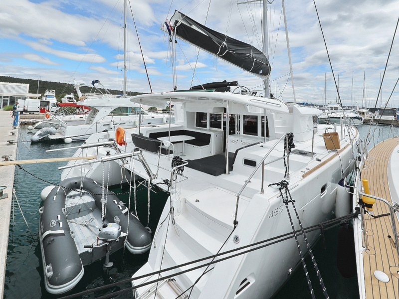 | Inside | Backofen, Generator, Geschirr, Klimaanlage (ohne Landstrombedarf), Klimaanlage in Salon und Kabinen, Kühlschrank, Ladegerät, Radio mit CD/MP3/USB/AUX-In, Salontisch absenkbar, Spüle mit 2 Becken, USB Steckdosen in den Kabinen, Ventilator, WC (elektr.) |