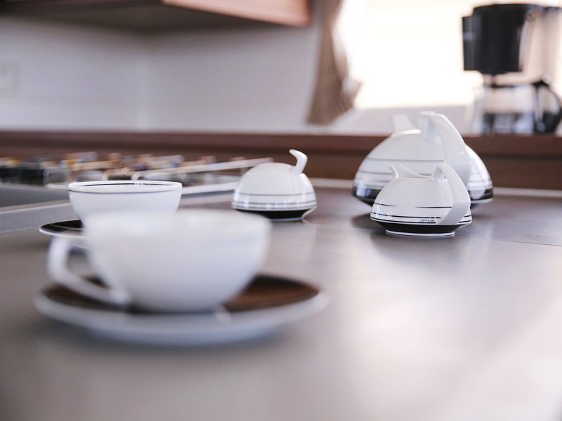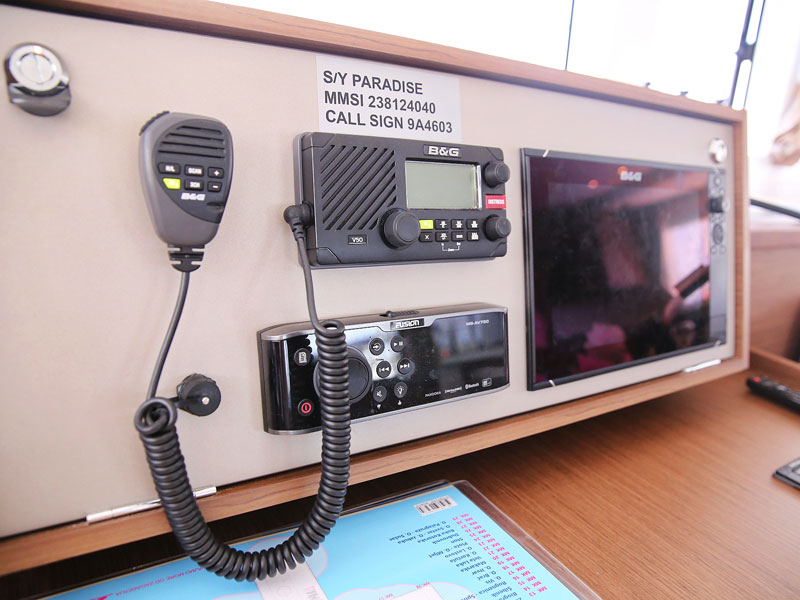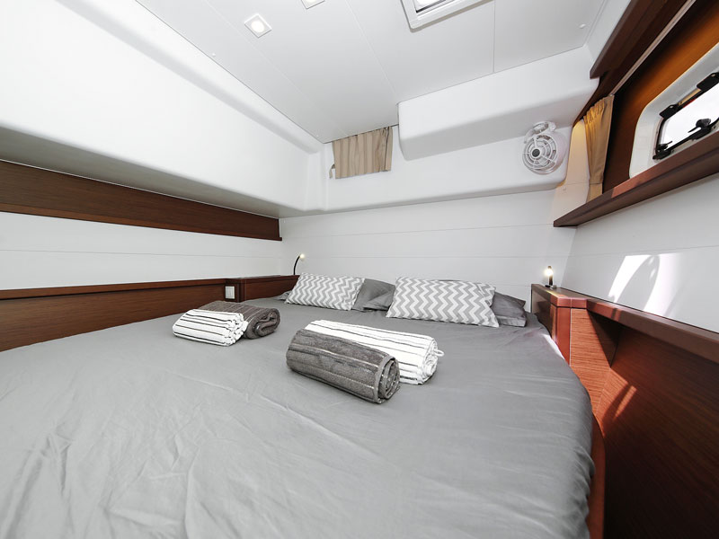 | Inside | Backofen, Generator, Inverter 12V/220V, Klimaanlage (ohne Landstrombedarf), Klimaanlage in Salon und Kabinen, Kühlschrank, Ladegerät, Mikrowelle, Radio mit CD/MP3/USB/AUX-In, Salontisch absenkbar, Spüle mit 2 Becken, TV, USB Steckdosen in den Kabinen, USB Steckdosen in Salon und Kabinen, Ventilator, Watermaker, WC (elektr.) |