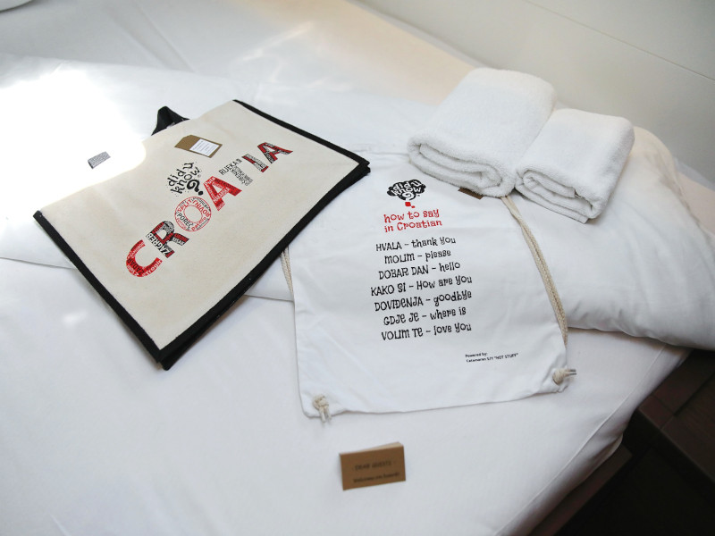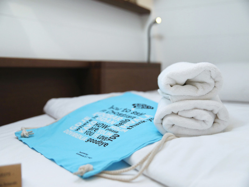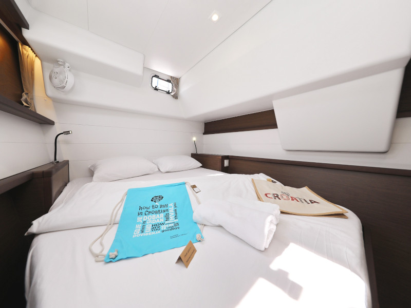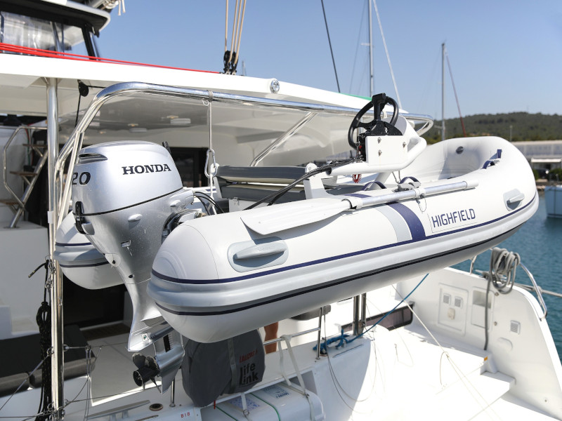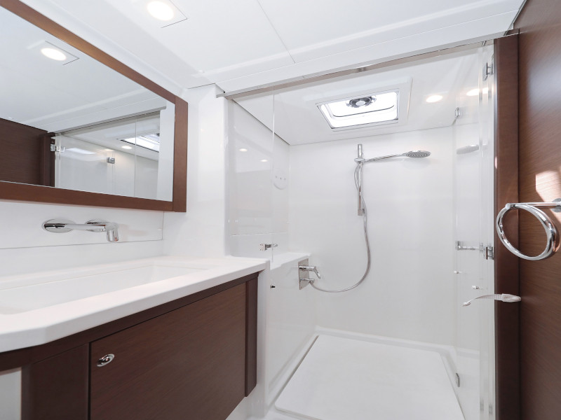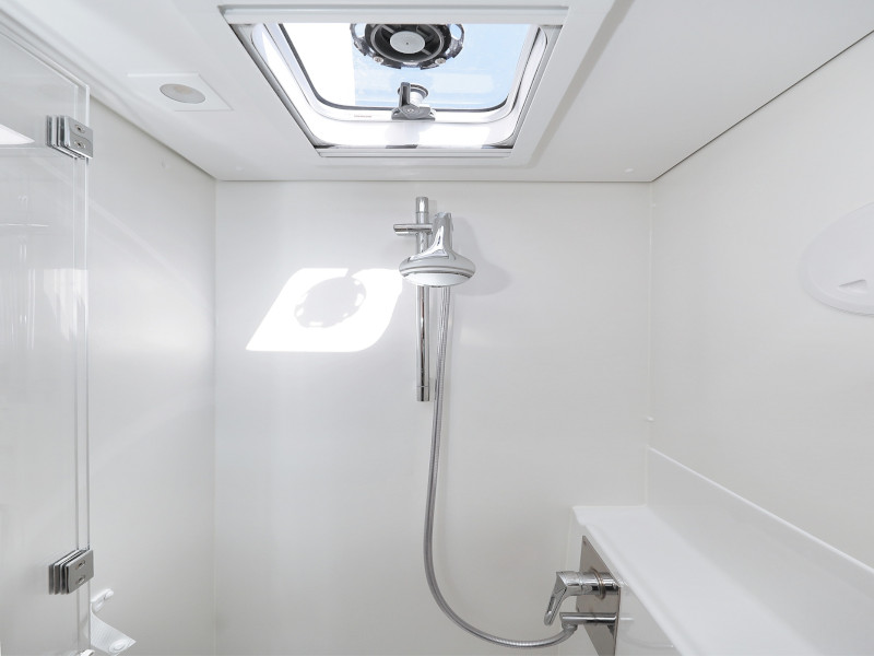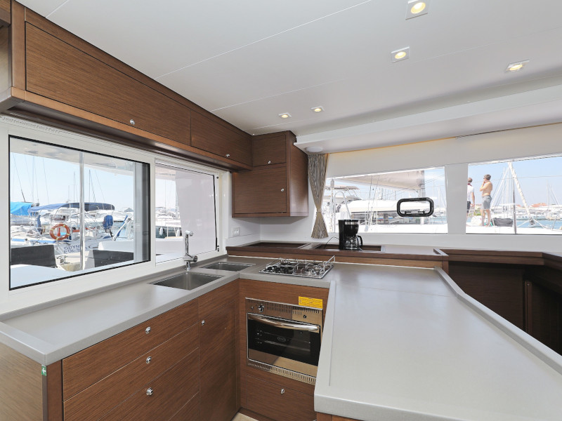 | Inside | Backofen, Eiswürfelmaschine, Generator, Heizung, Klimaanlage (ohne Landstrombedarf), Klimaanlage (Salon), Kühlschrank, Ladegerät, Radio mit CD/MP3/USB/AUX-In, Salontisch absenkbar, Spüle mit 2 Becken, USB Steckdosen in den Kabinen, USB Steckdosen in Salon und Kabinen, Ventilator |