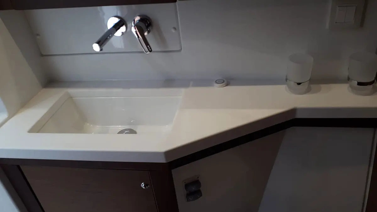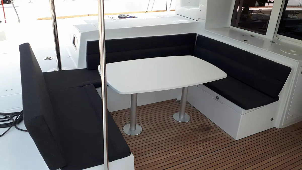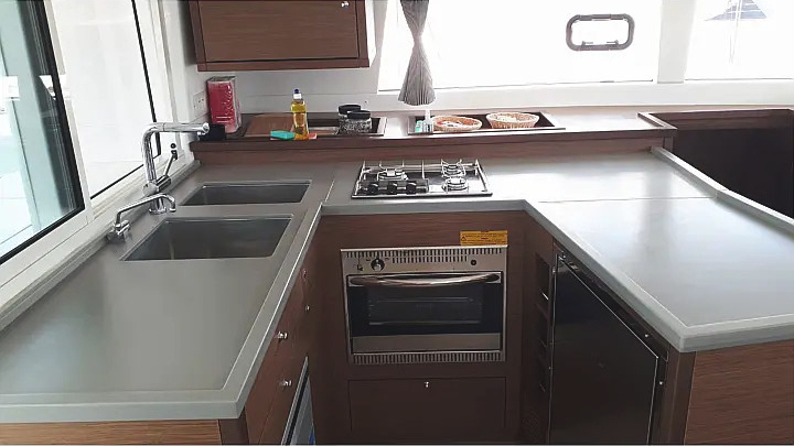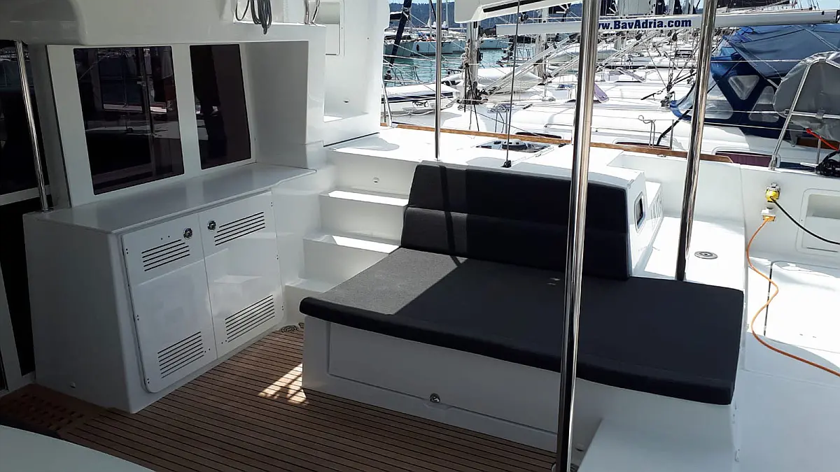 | Inside | Eiswürfelmaschine, Generator, Geschirrspüler, Inverter 12V/220V, Klimaanlage (ohne Landstrombedarf), Klimaanlage in Salon und Kabinen, Radio mit CD/MP3/USB/AUX-In, USB Steckdosen in Salon und Kabinen, WC (elektr.) |