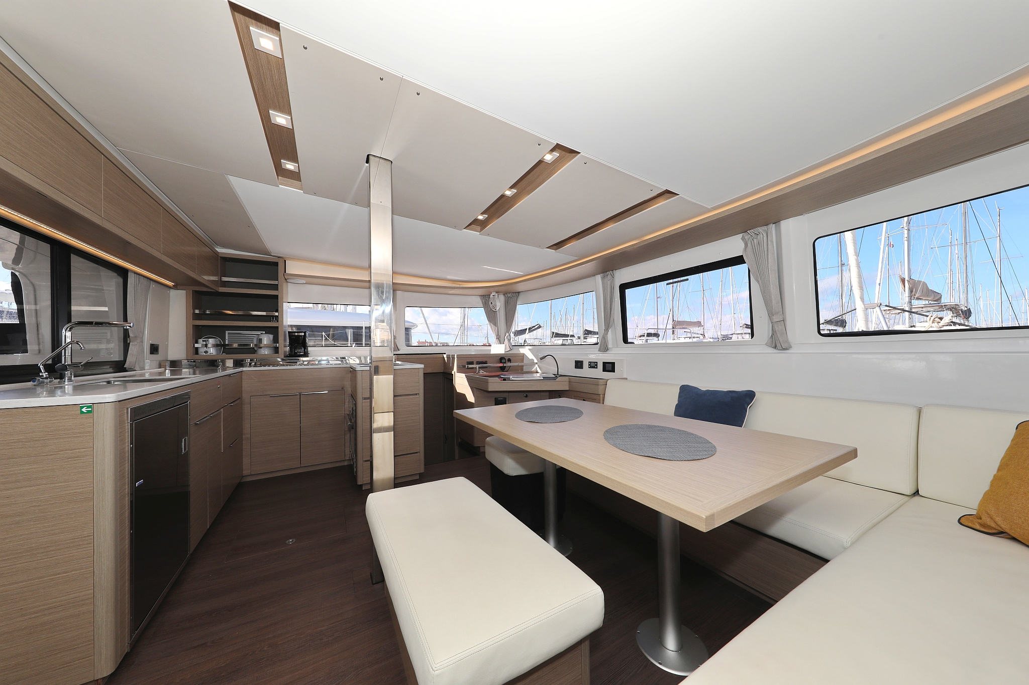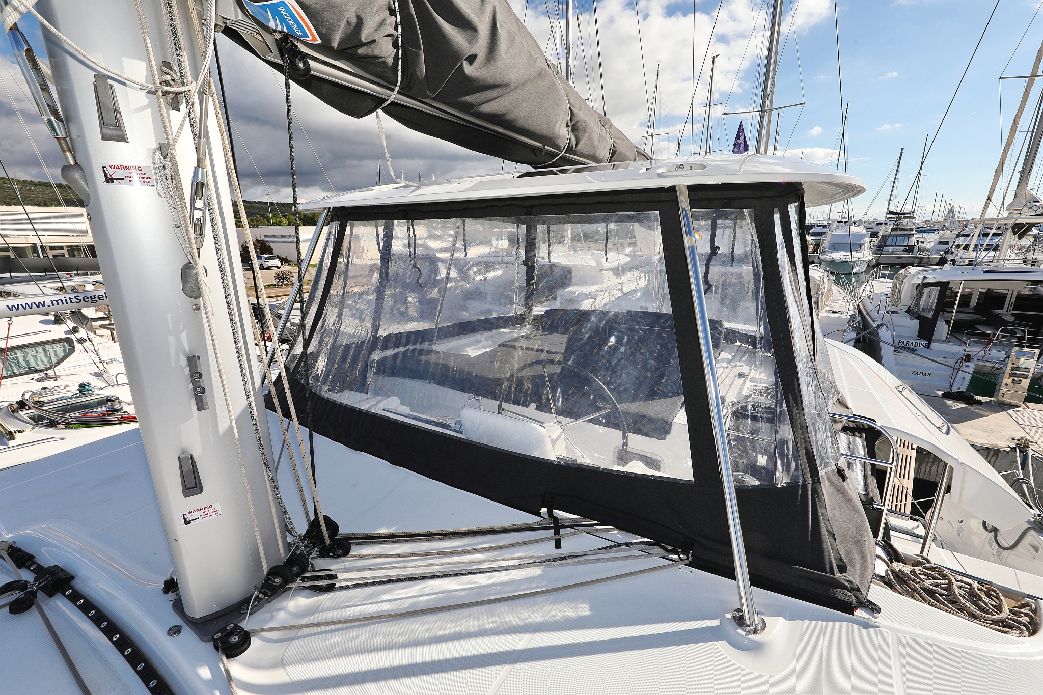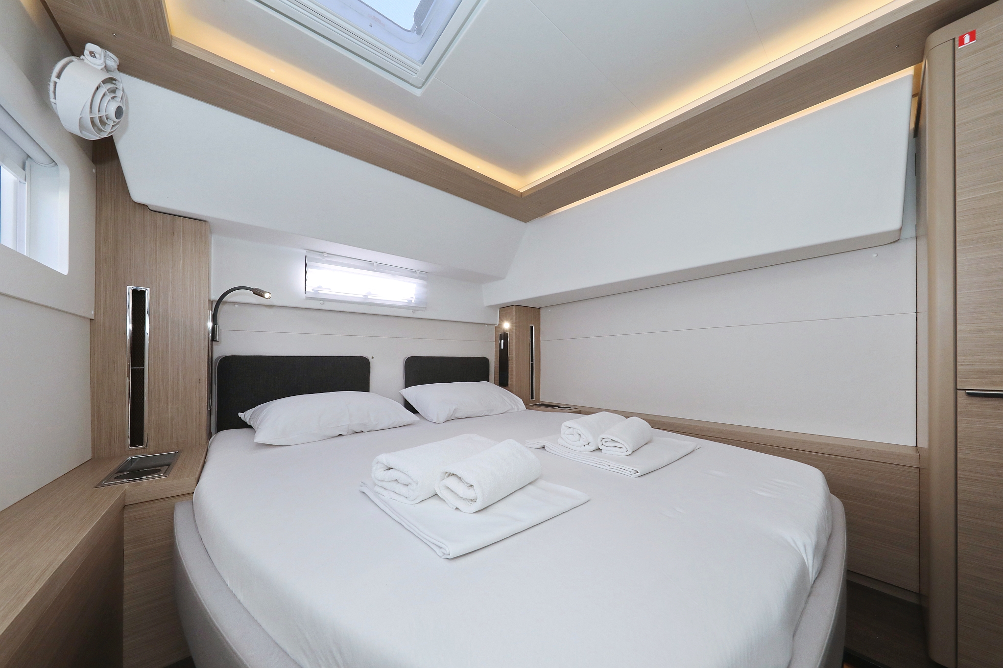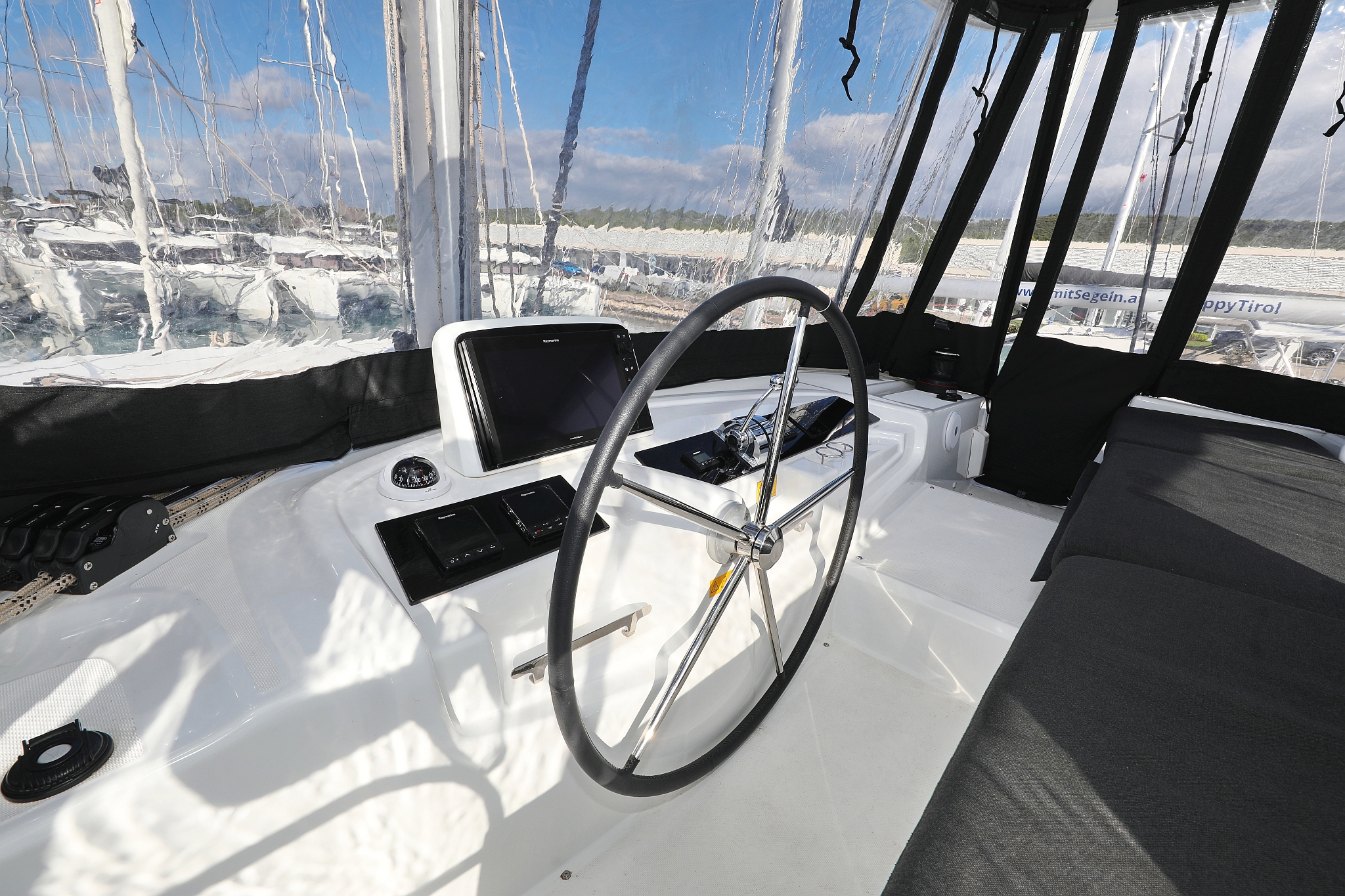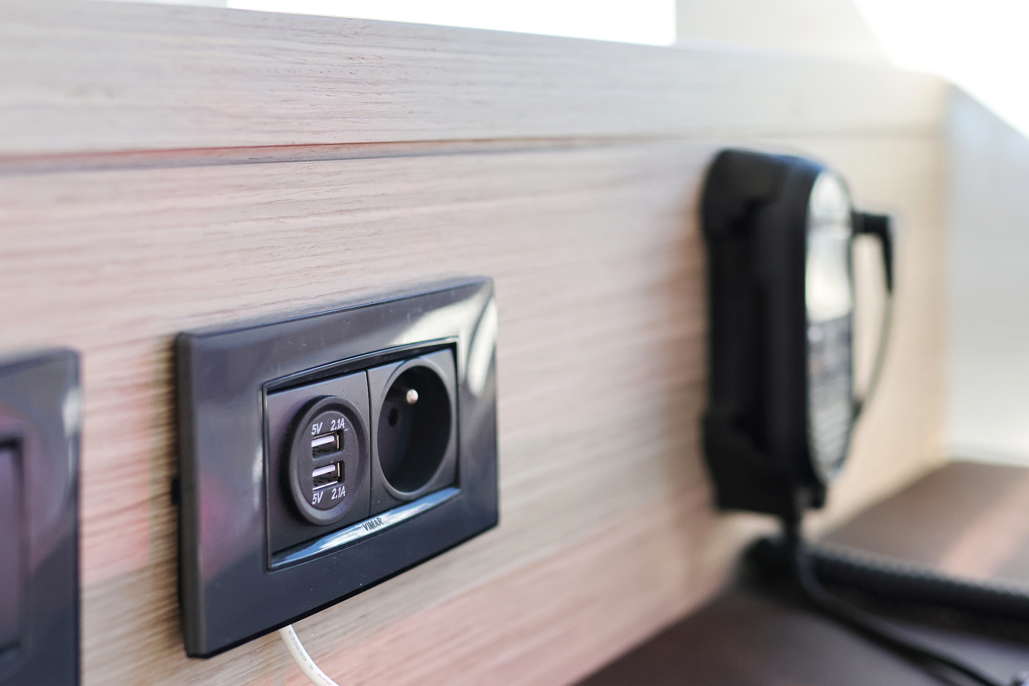 | Inside | Generator, Klimaanlage, Klimaanlage (ohne Landstrombedarf), Kühlschrank, Radio mit CD/MP3/USB/AUX-In, Salontisch absenkbar, USB Steckdosen in den Kabinen, Ventilatoren in Salon und Kabinen, Watermaker, WC (elektr.) |