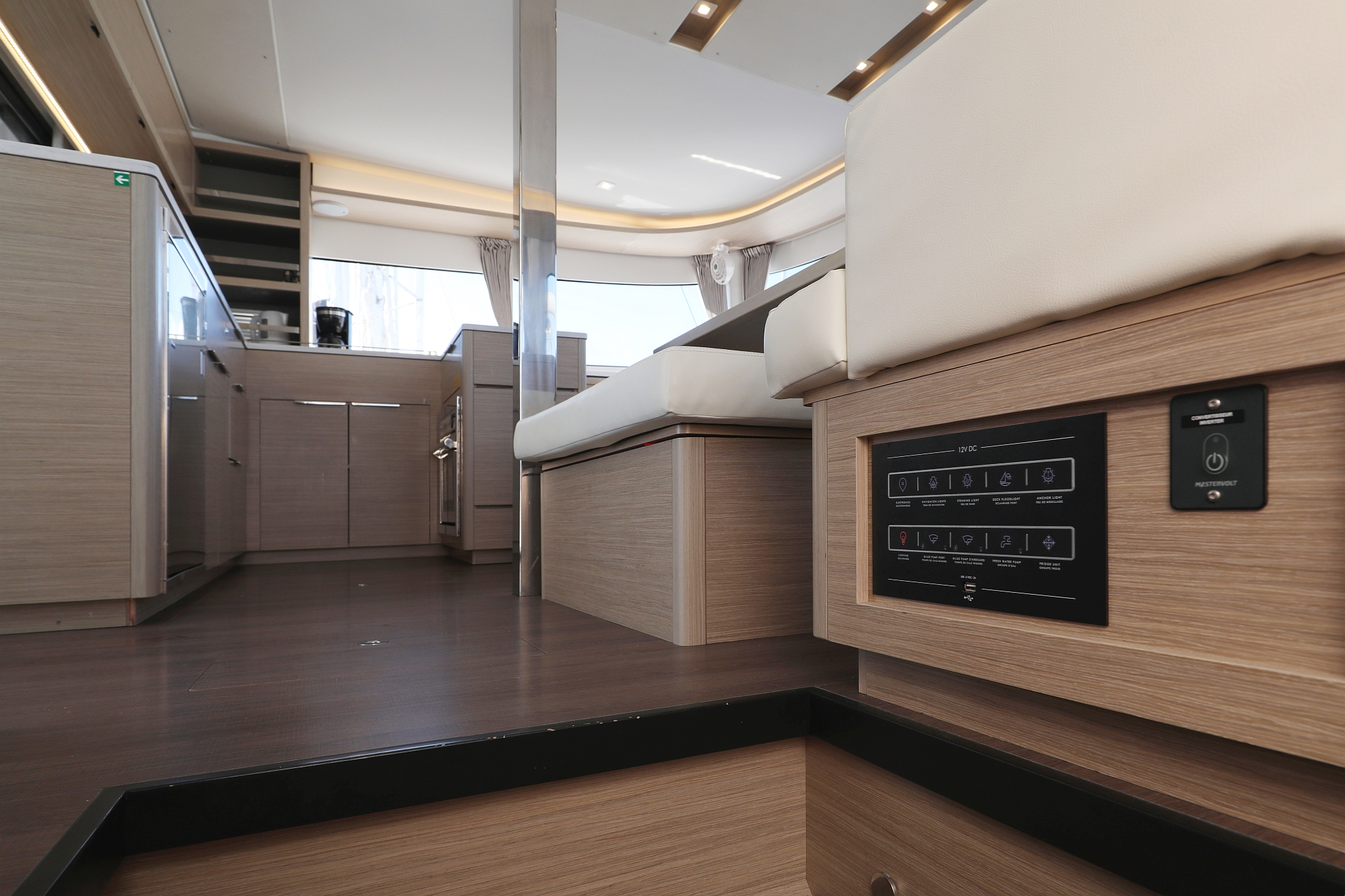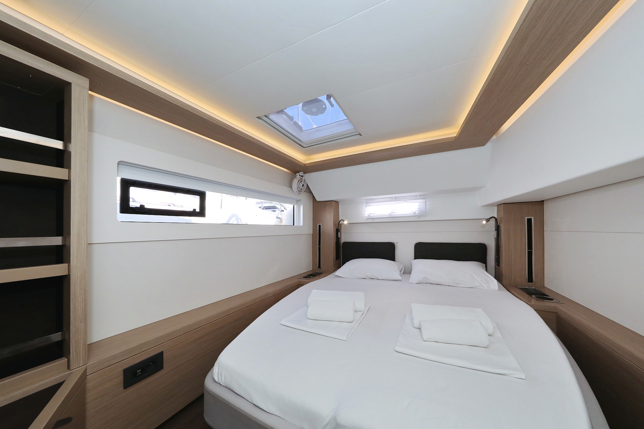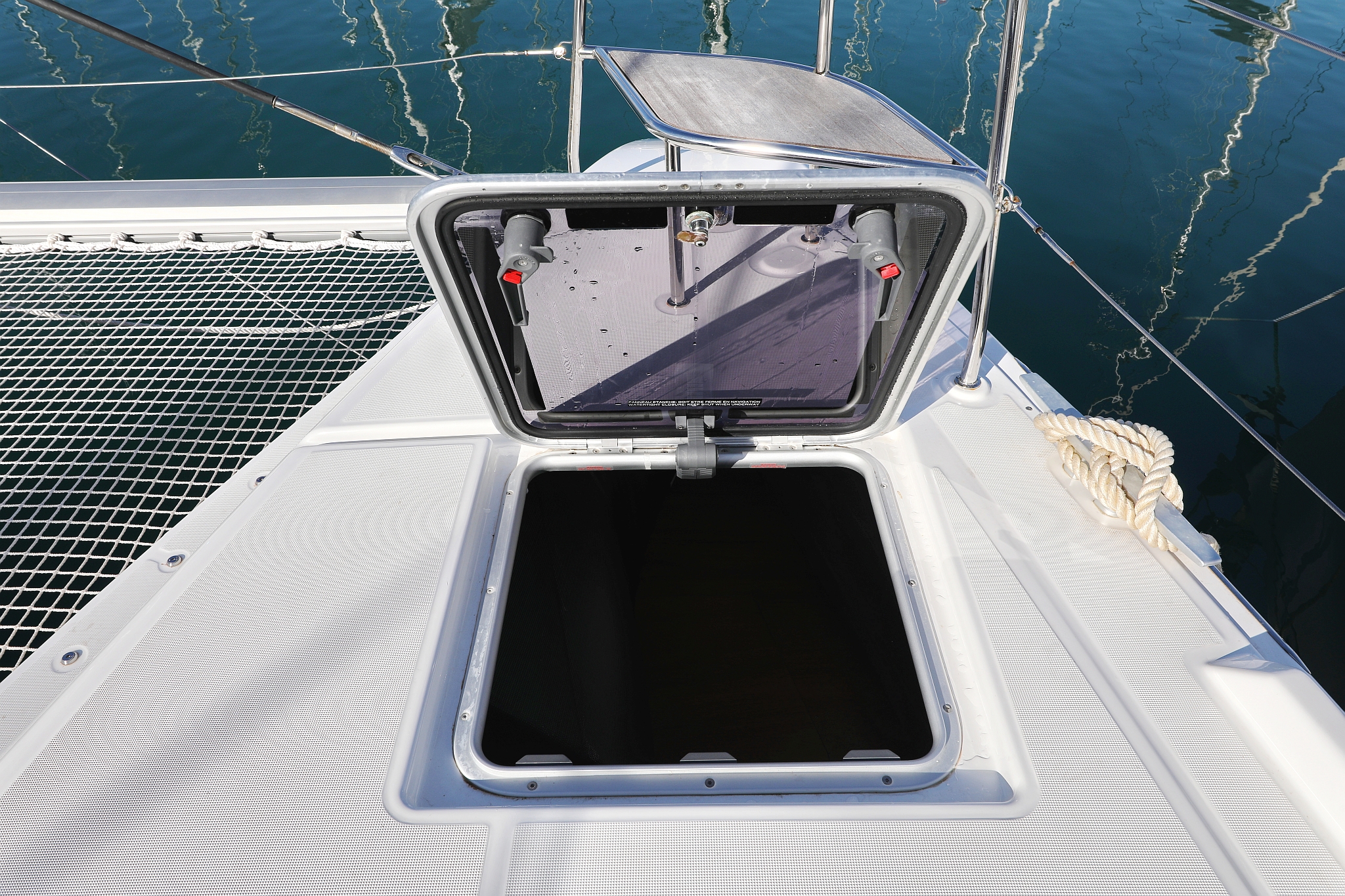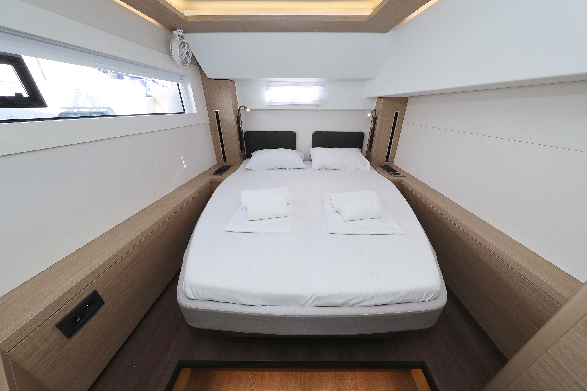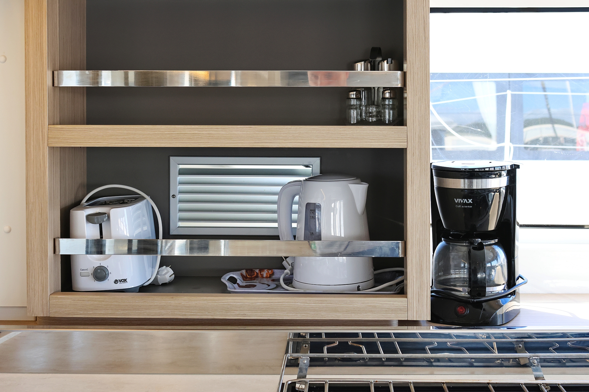 | Inside | Generator, Klimaanlage, Klimaanlage (ohne Landstrombedarf), Kühlschrank, Radio mit CD/MP3/USB/AUX-In, Salontisch absenkbar, USB Steckdosen in den Kabinen, Ventilatoren in Salon und Kabinen, Watermaker, WC (elektr.) |