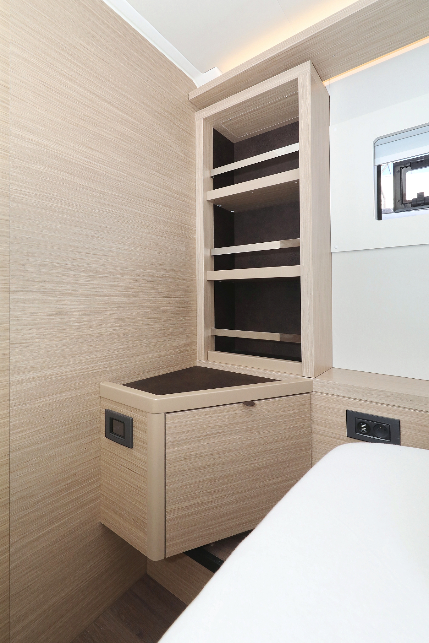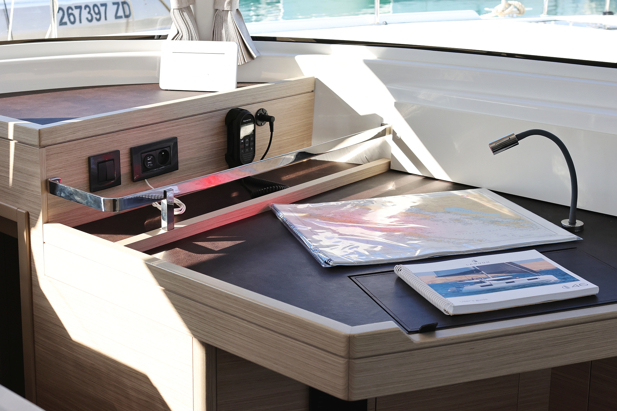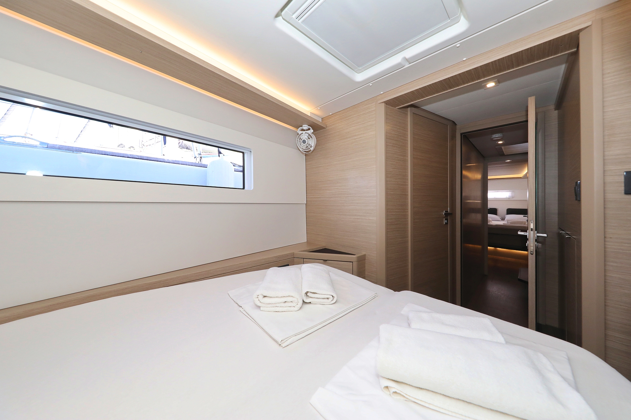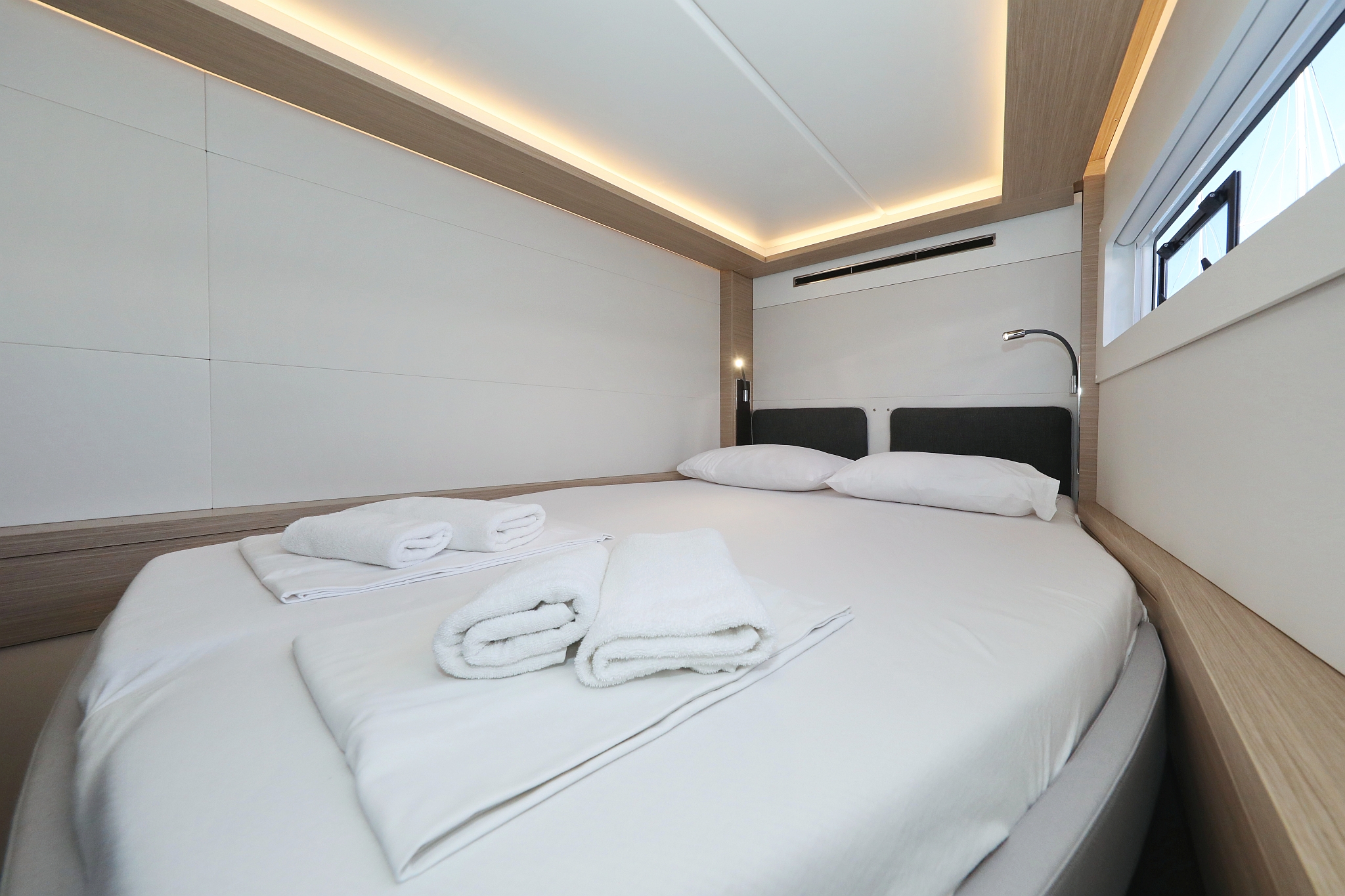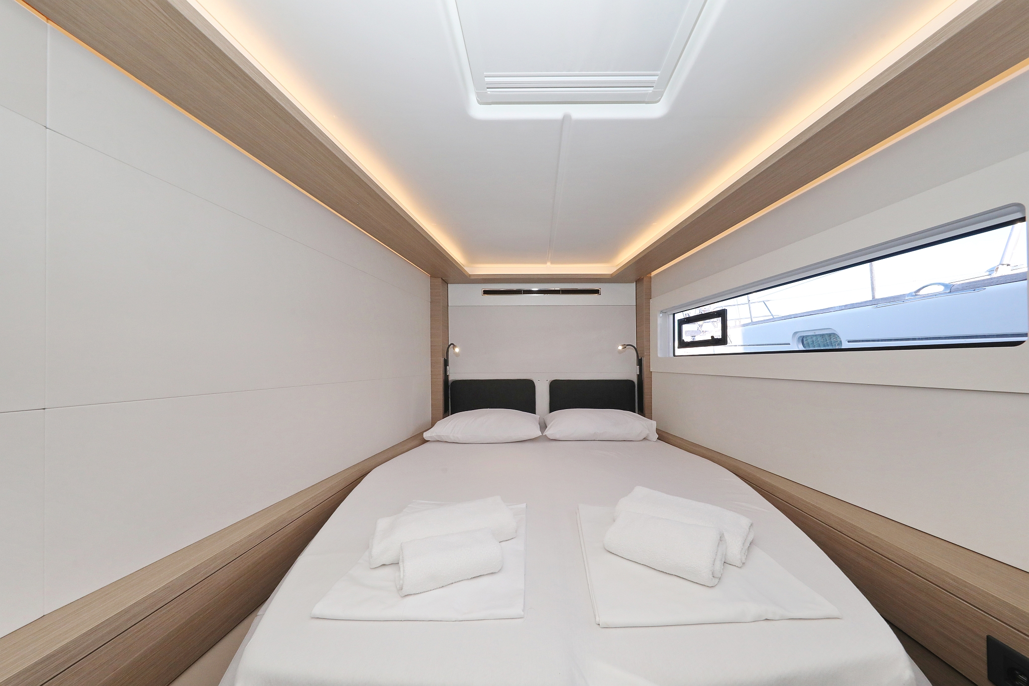 | Inside | Generator, Klimaanlage, Klimaanlage (ohne Landstrombedarf), Kühlschrank, Radio mit CD/MP3/USB/AUX-In, Salontisch absenkbar, USB Steckdosen in den Kabinen, Ventilatoren in Salon und Kabinen, Watermaker, WC (elektr.) |