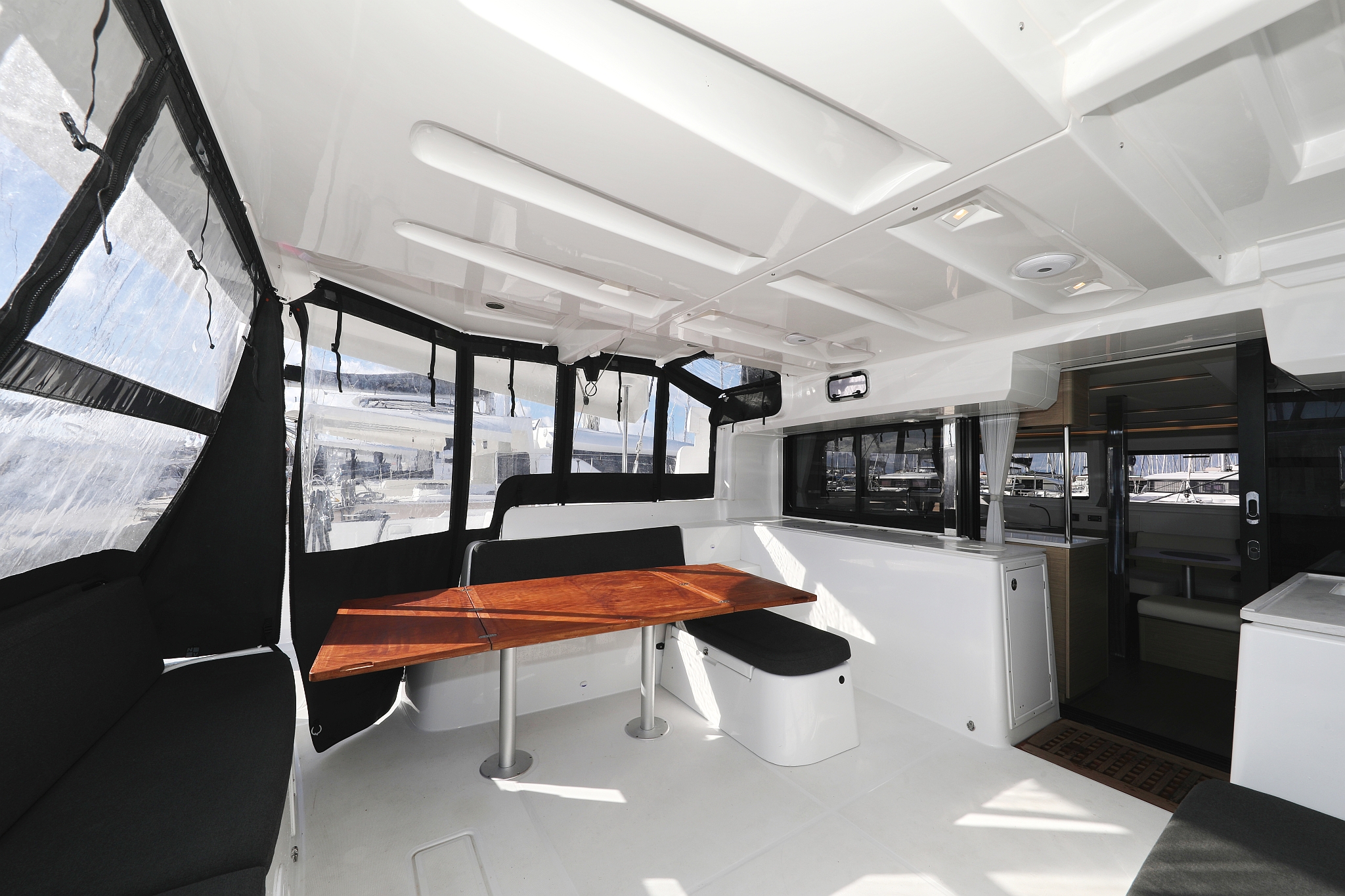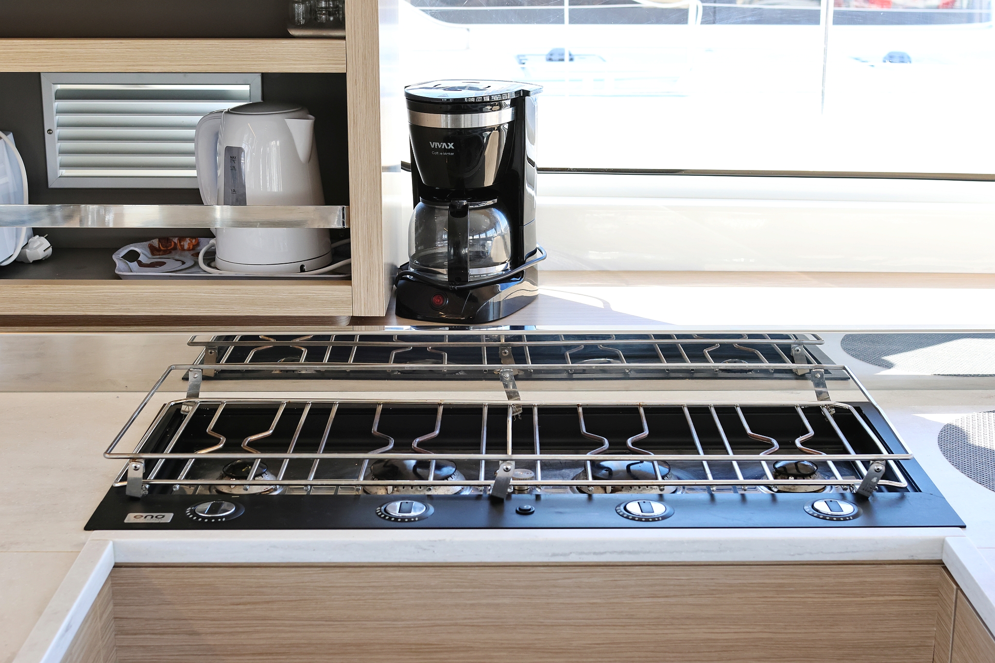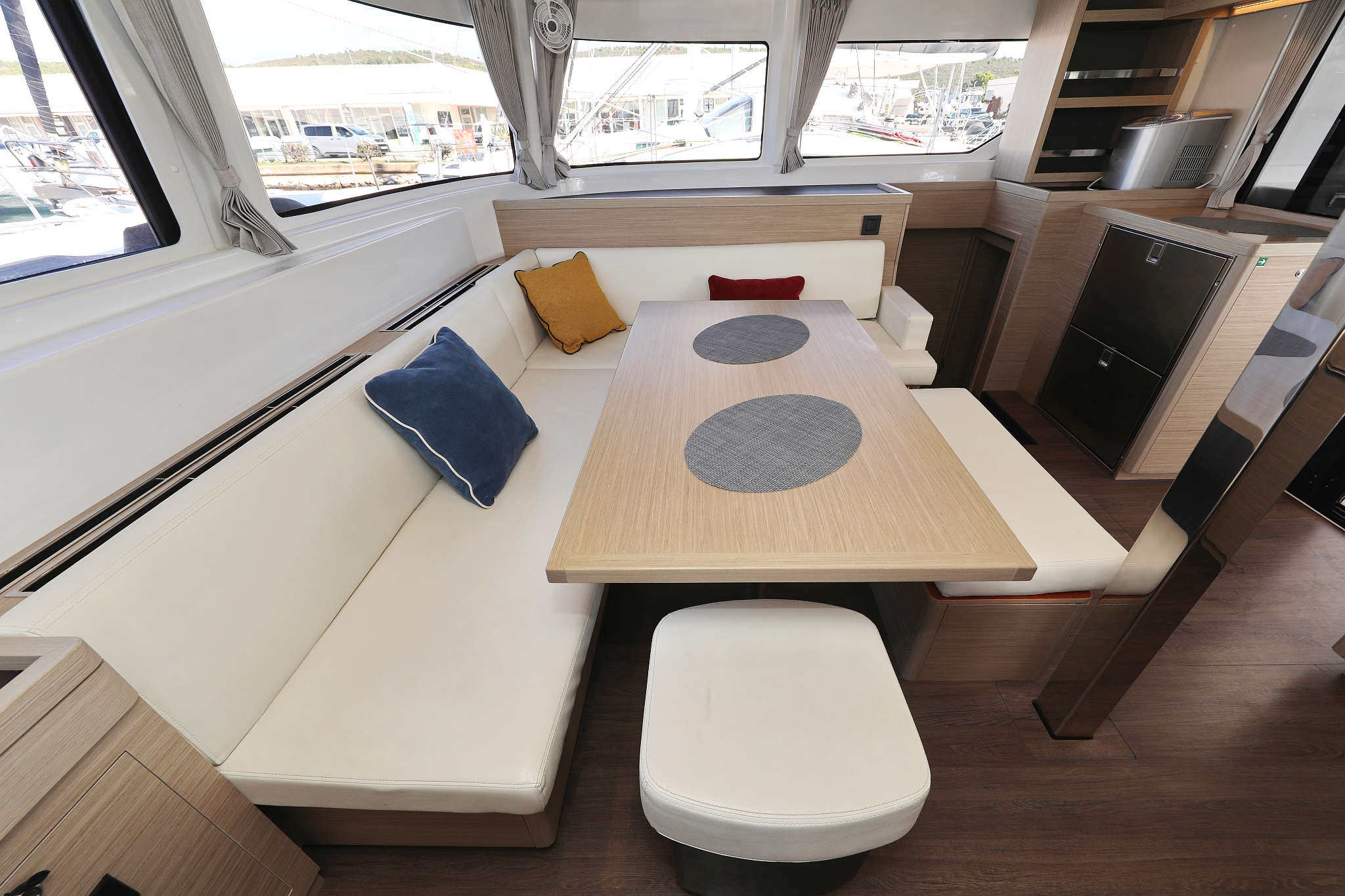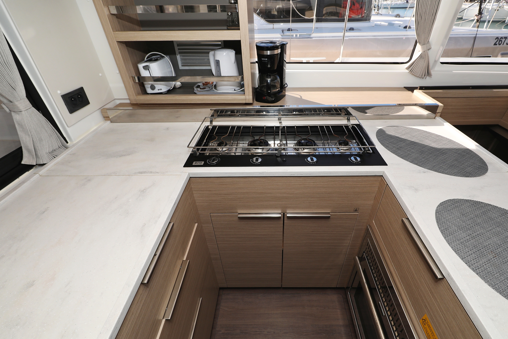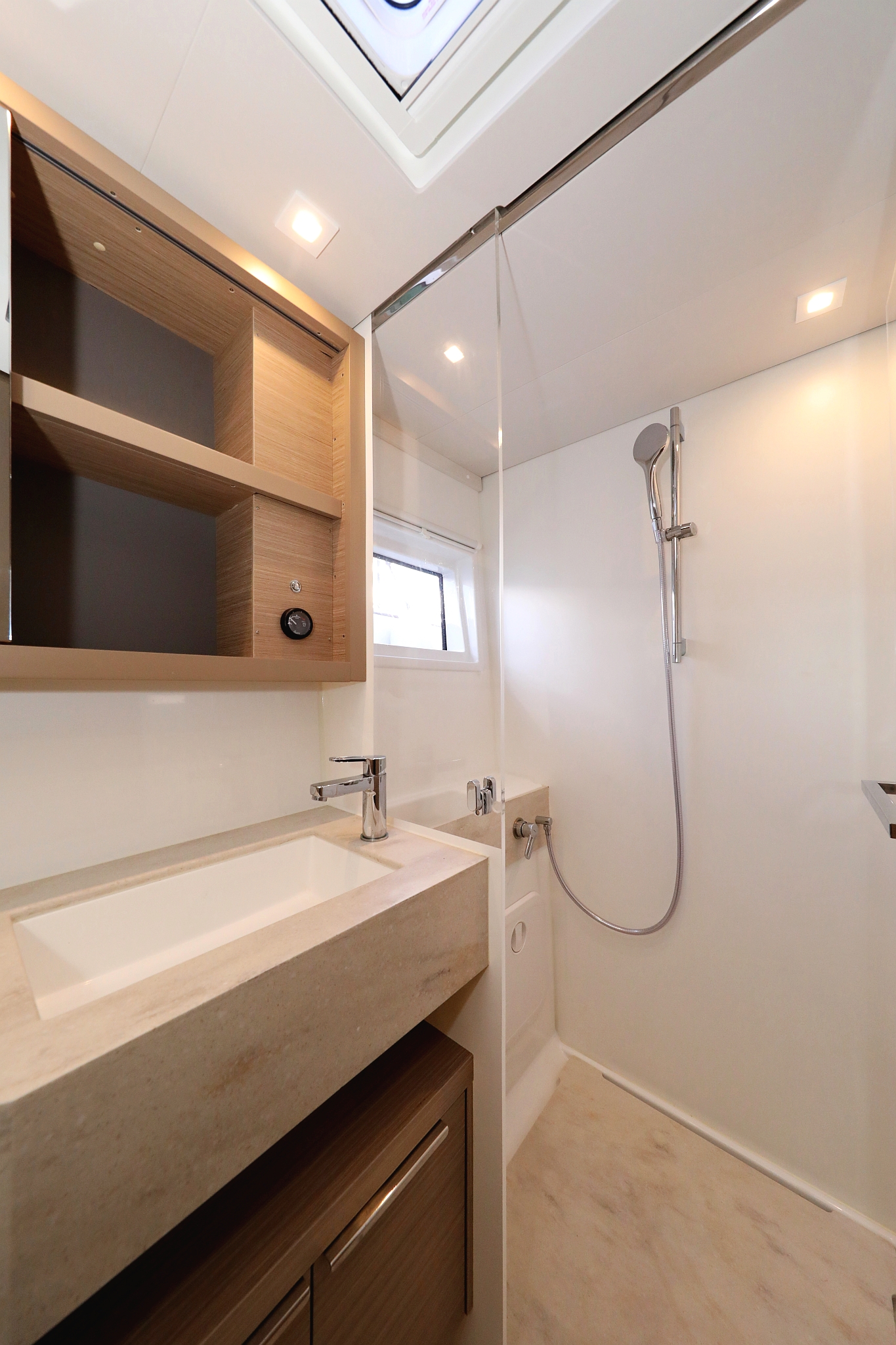 | Inside | Generator, Klimaanlage, Klimaanlage (ohne Landstrombedarf), Kühlschrank, Radio mit CD/MP3/USB/AUX-In, Salontisch absenkbar, USB Steckdosen in den Kabinen, Ventilatoren in Salon und Kabinen, Watermaker, WC (elektr.) |