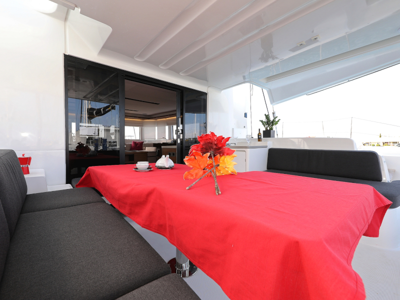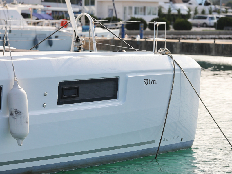 | Outside | Biminitop, Cockpitdusche, Cockpitkühlschrank, Cockpitlautsprecher, Davits, elektr. Ankerwinsch |