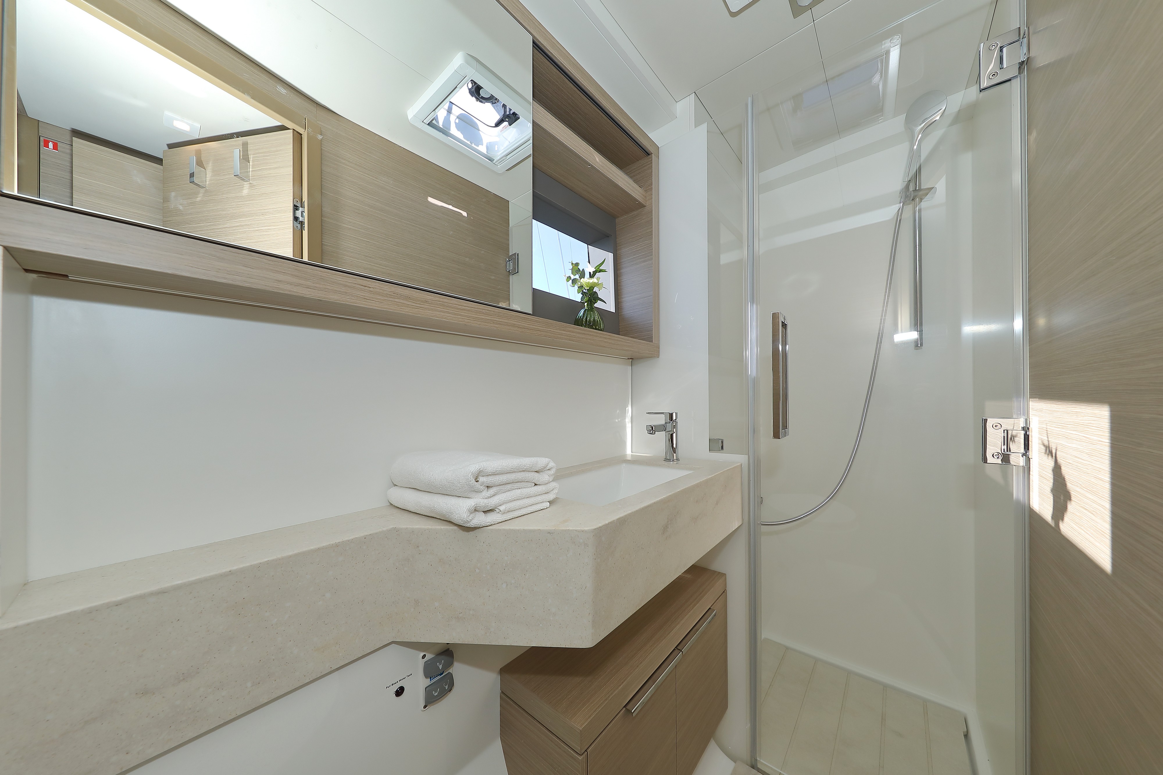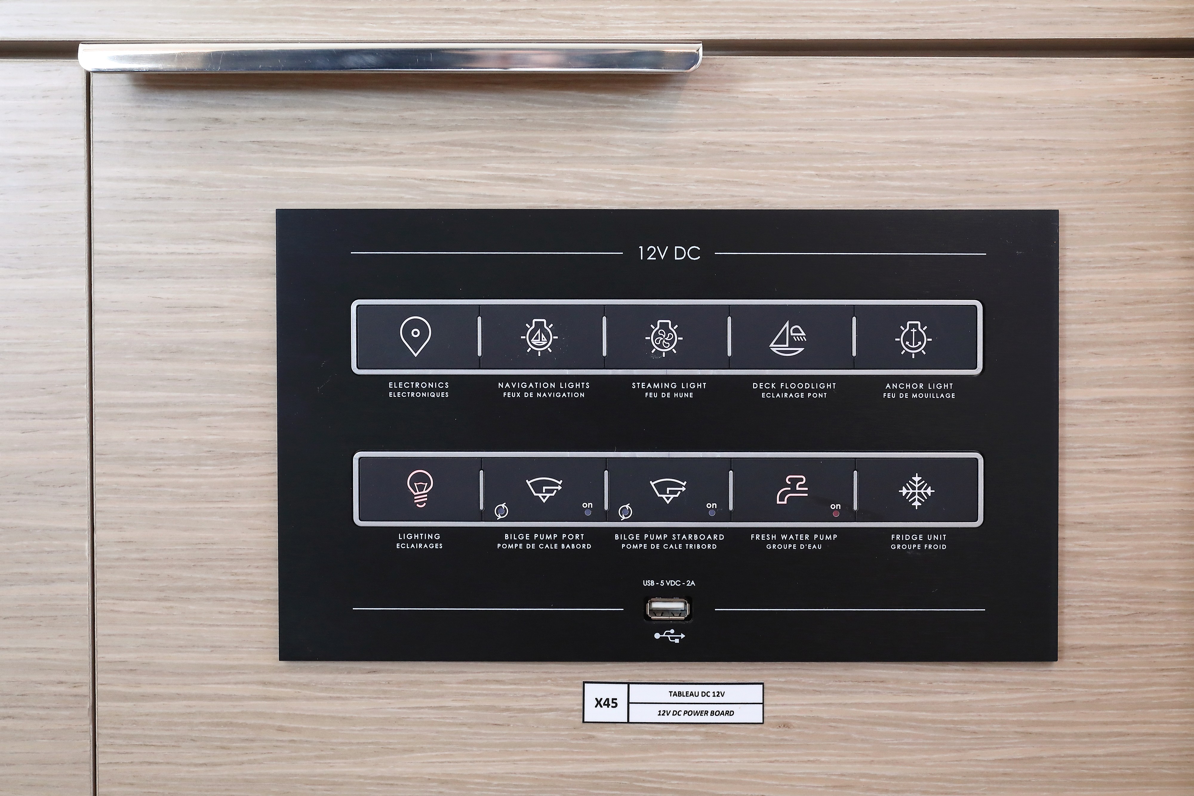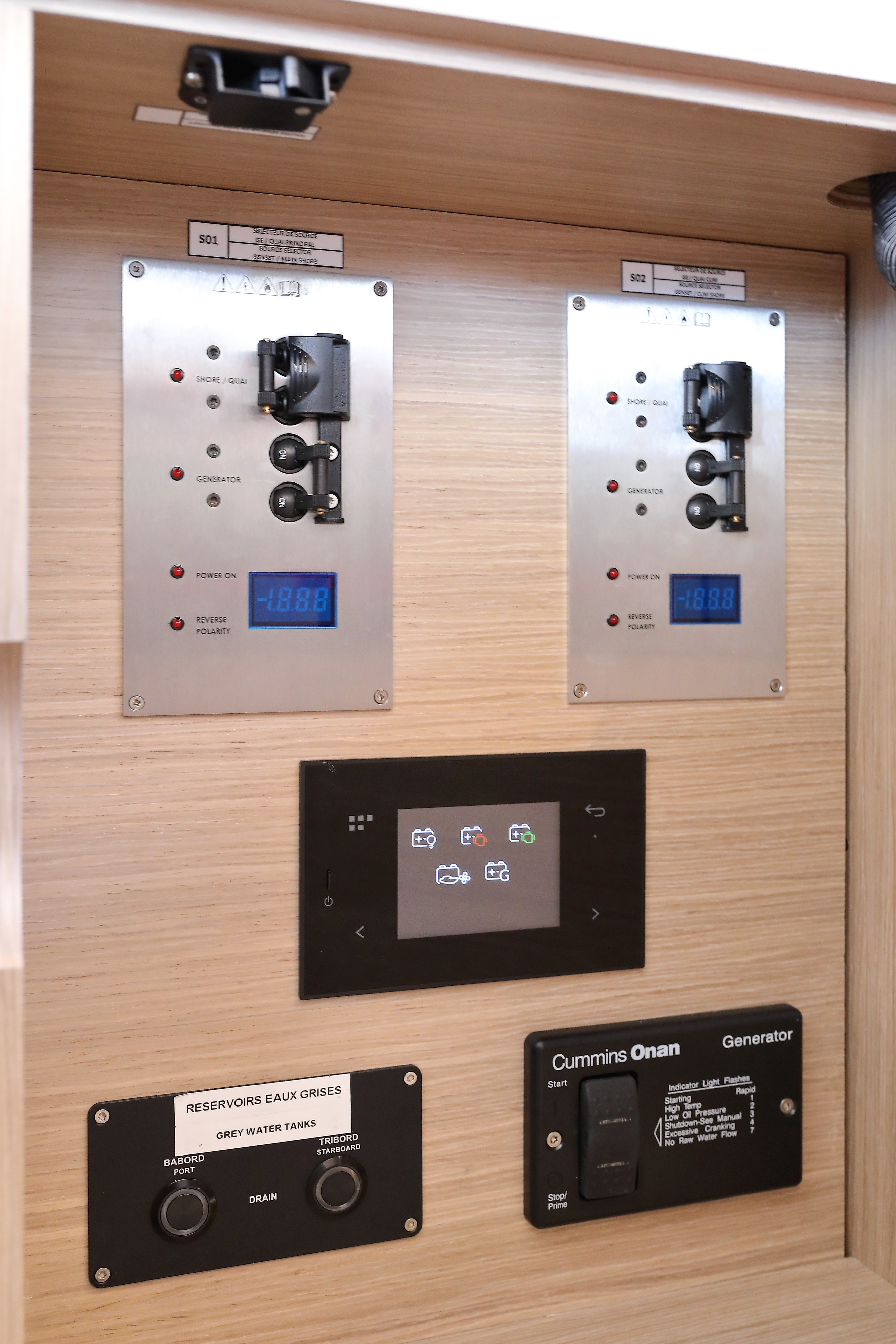 | Inside | Generator, Geschirrspüler, Inverter 12V/220V, Klimaanlage (ohne Landstrombedarf), Kühlschrank, Radio mit CD/MP3/USB/AUX-In, USB Steckdosen in Salon und Kabinen, Ventilatoren in Salon und Kabinen, Watermaker |