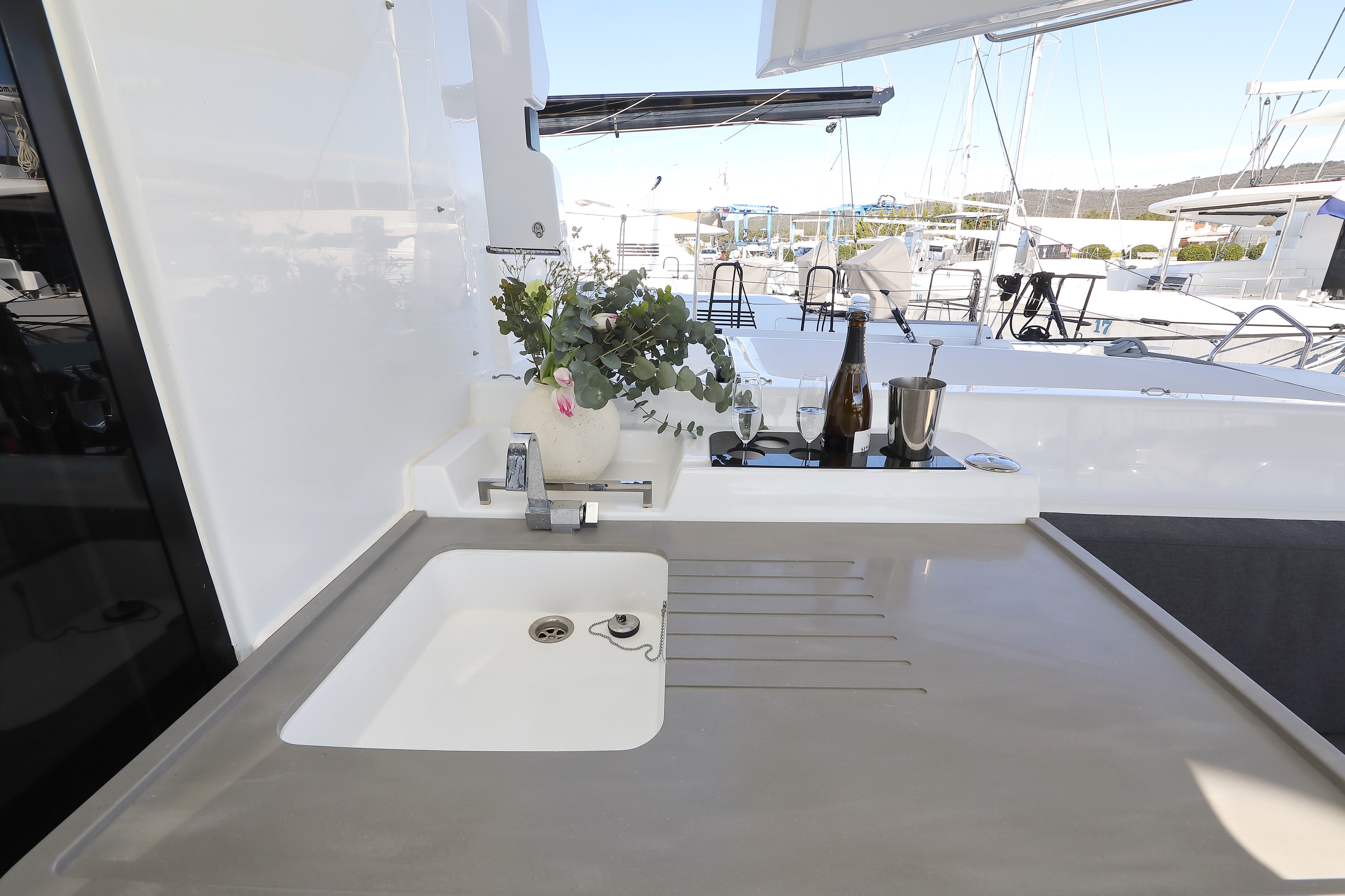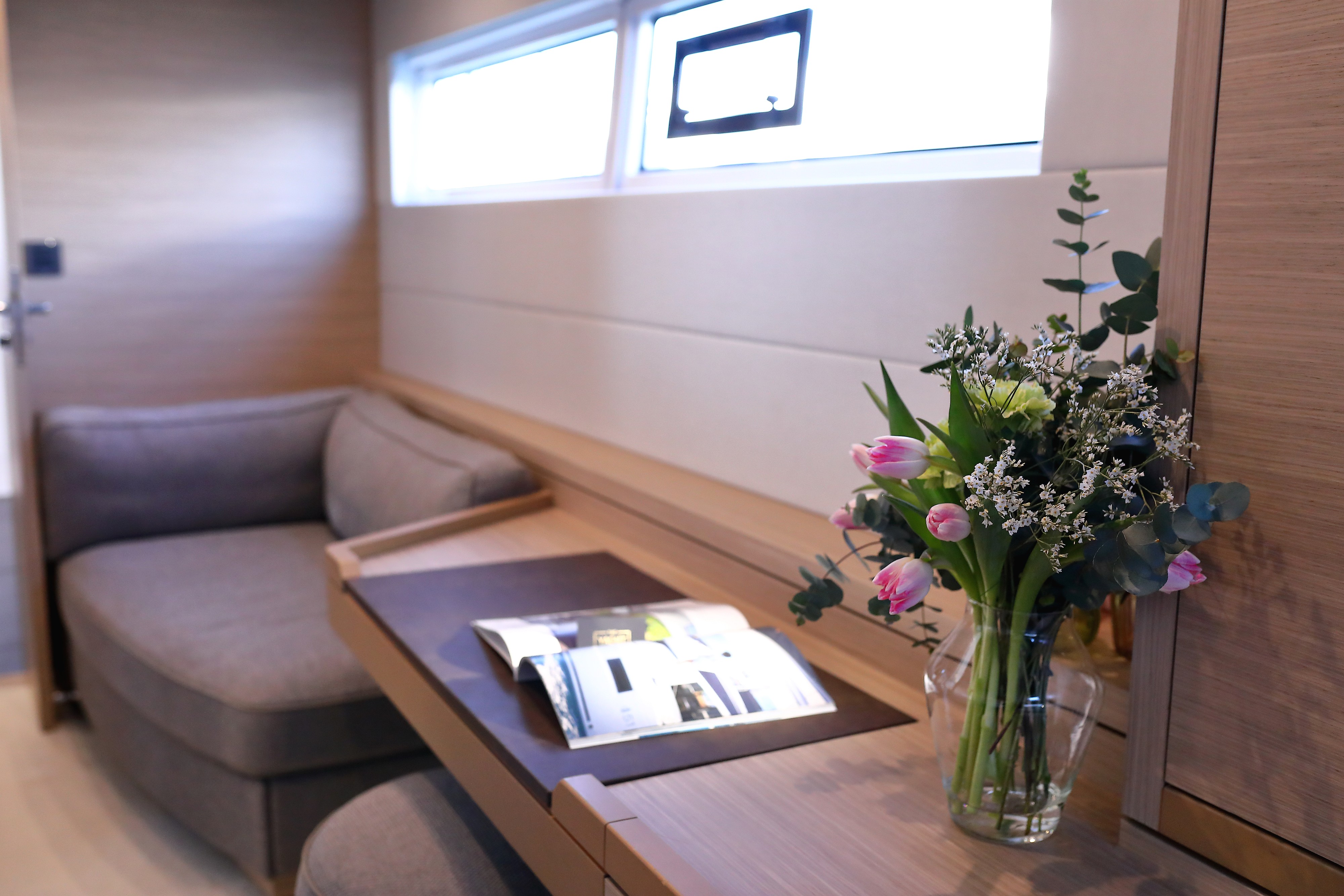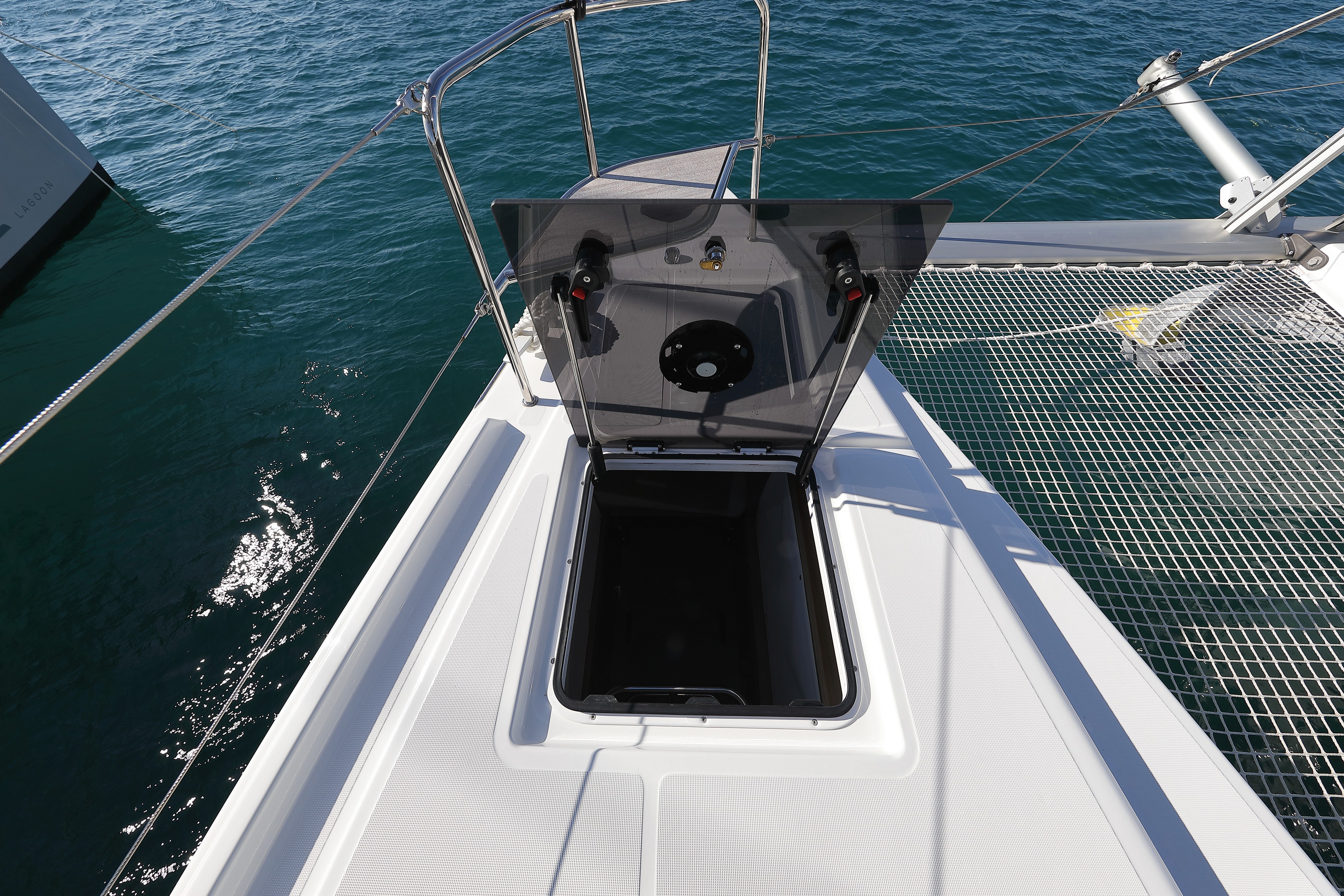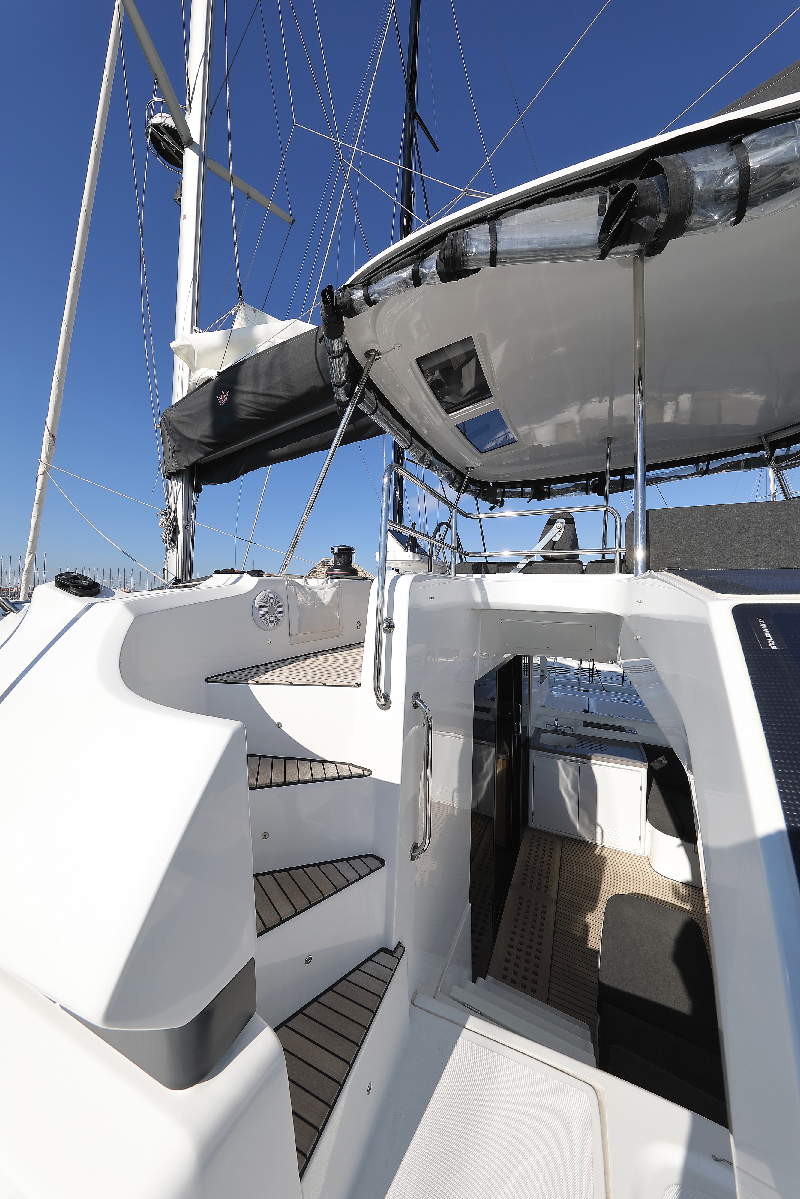 | Inside | Generator, Geschirrspüler, Inverter 12V/220V, Klimaanlage (ohne Landstrombedarf), Kühlschrank, Radio mit CD/MP3/USB/AUX-In, USB Steckdosen in Salon und Kabinen, Ventilatoren in Salon und Kabinen, Watermaker |