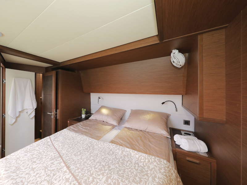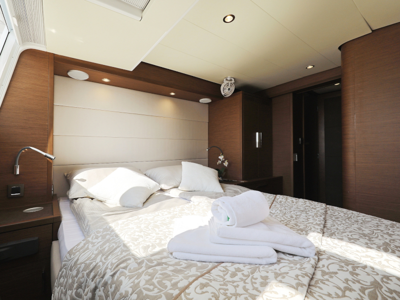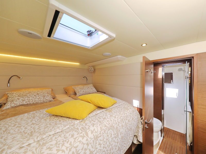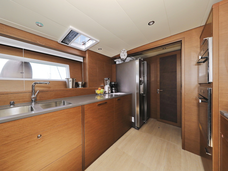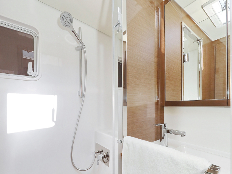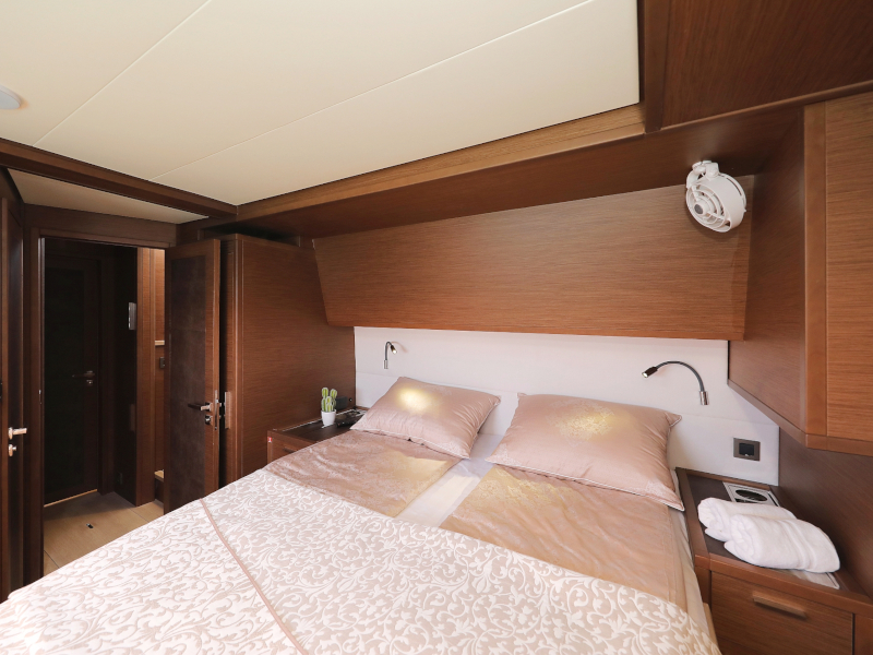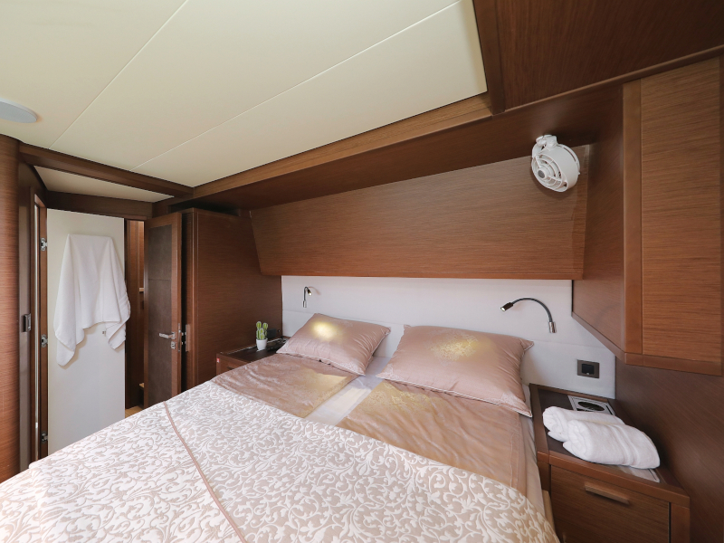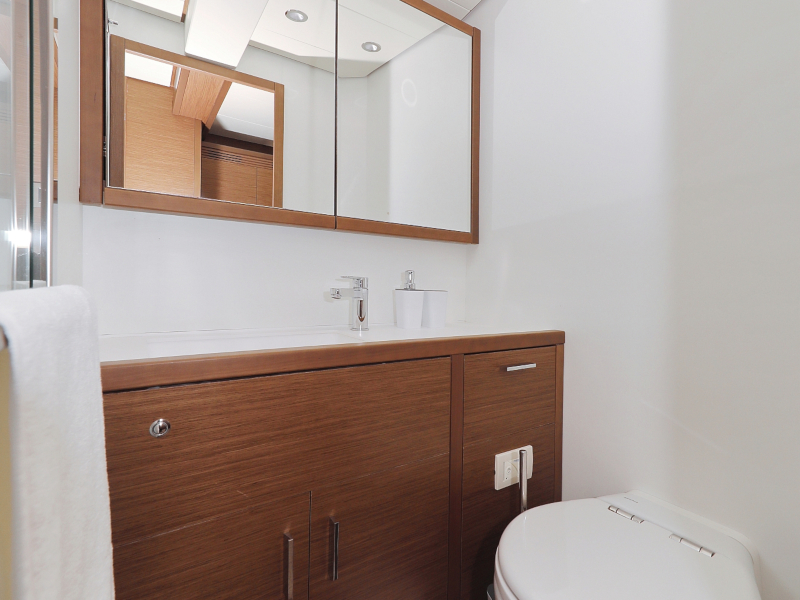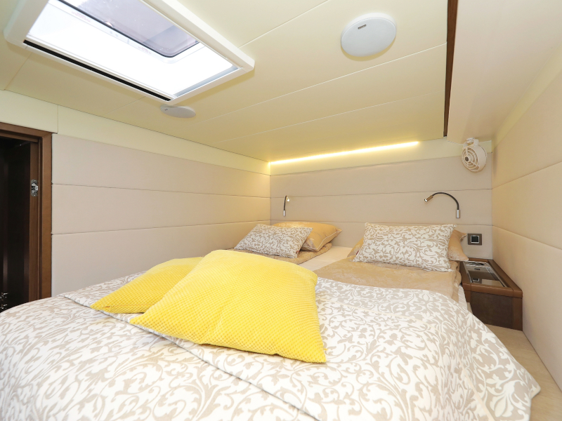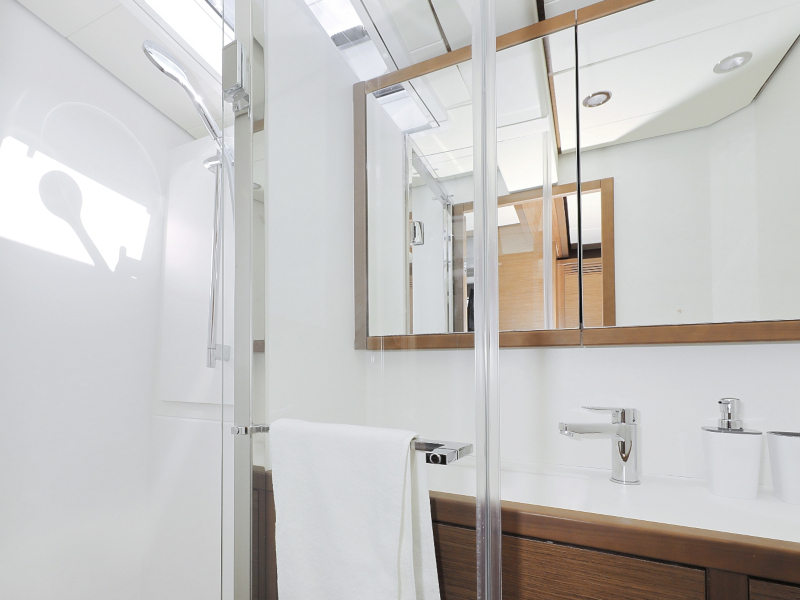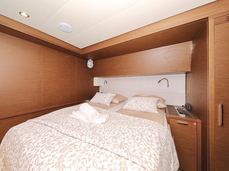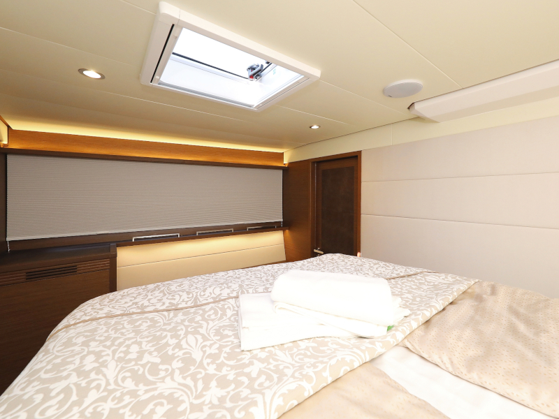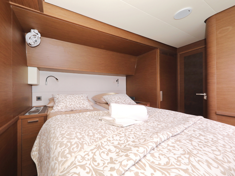 | Inside | 220V Steckdosen, Eiswürfelmaschine, Generator, Geschirrspüler, Inverter 12V/220V, Klimaanlage (ohne Landstrombedarf), Klimaanlage in Salon und Kabinen, Pantryausstattung, Radio mit CD/MP3/USB/AUX-In, Smart-TV, USB Steckdosen in den Kabinen, Ventilator, Waschmaschine mit Trockner, Watermaker, WC (elektr.) |