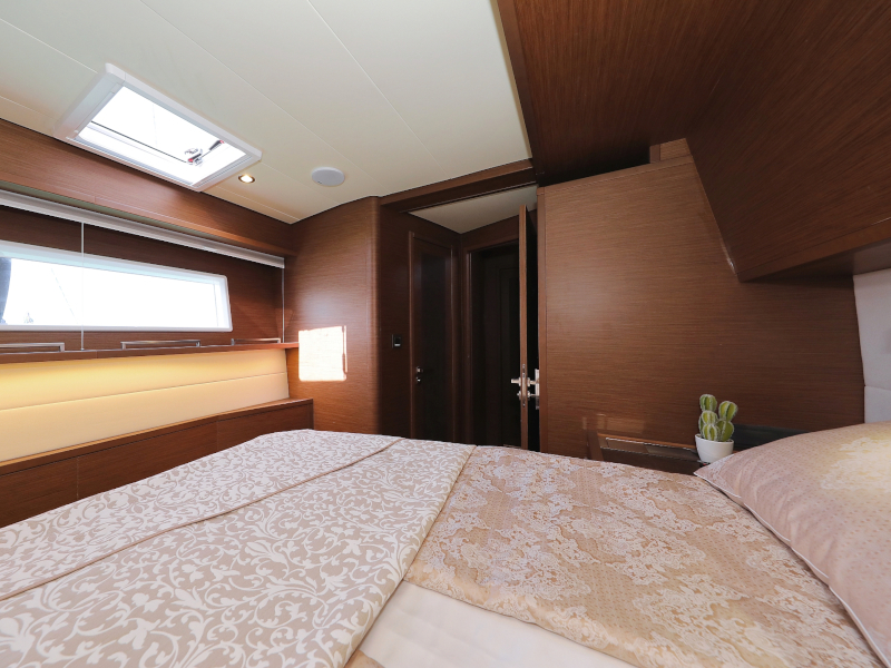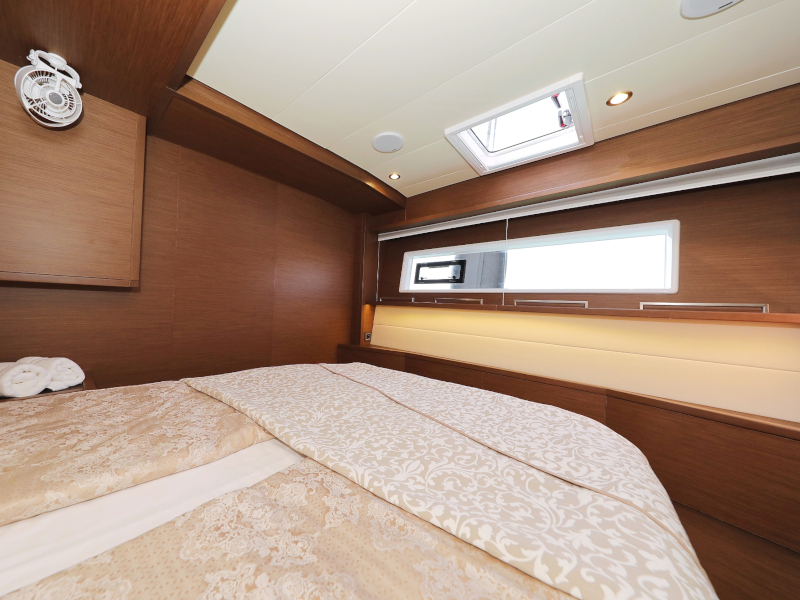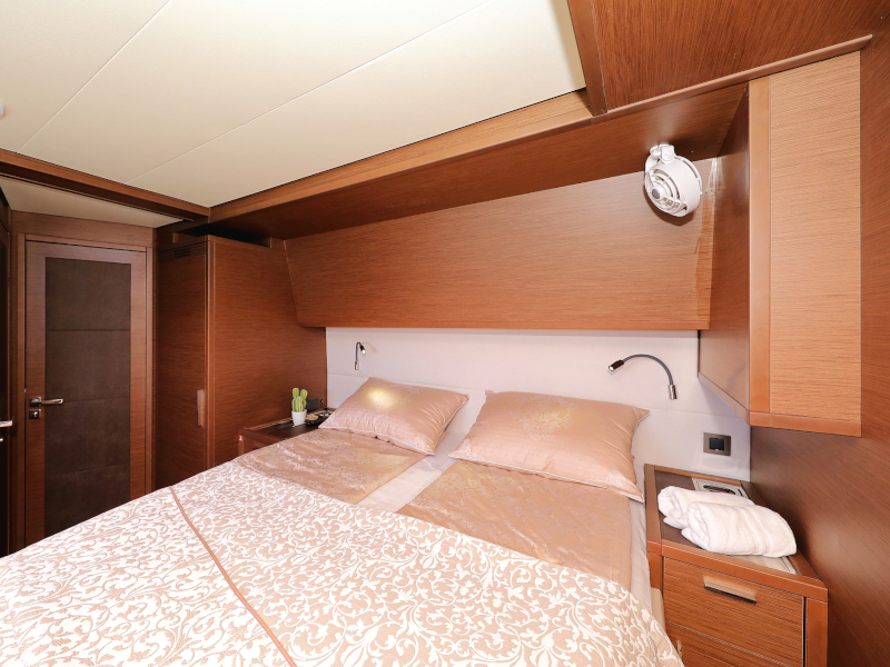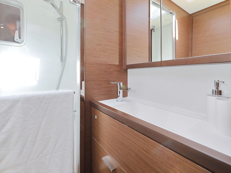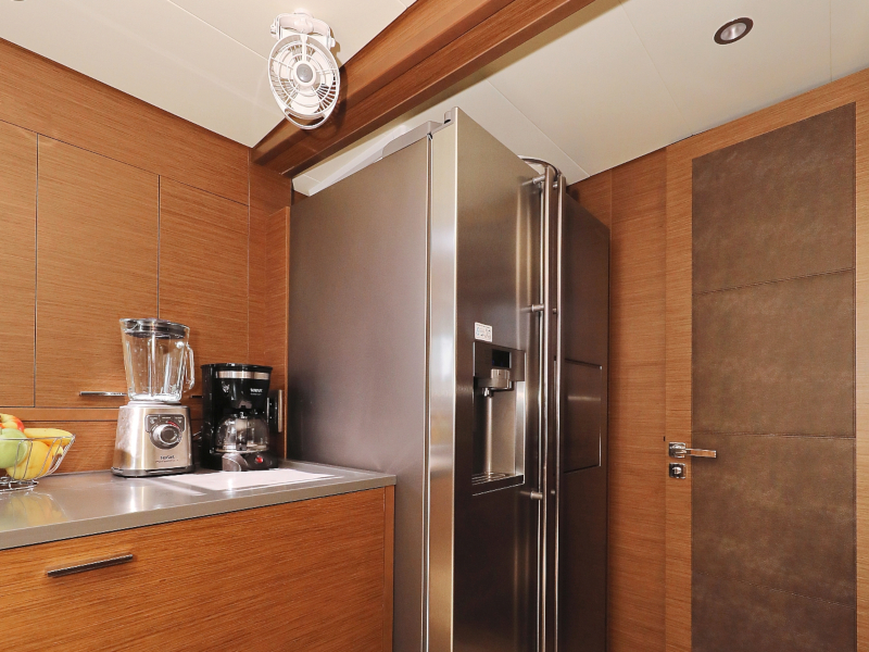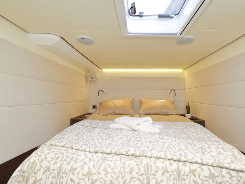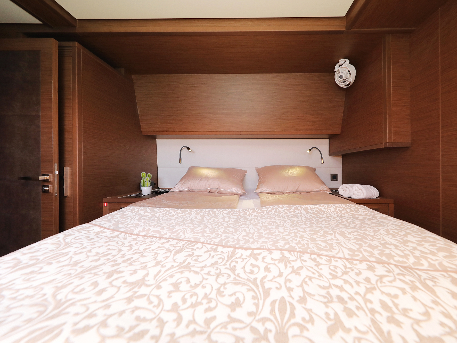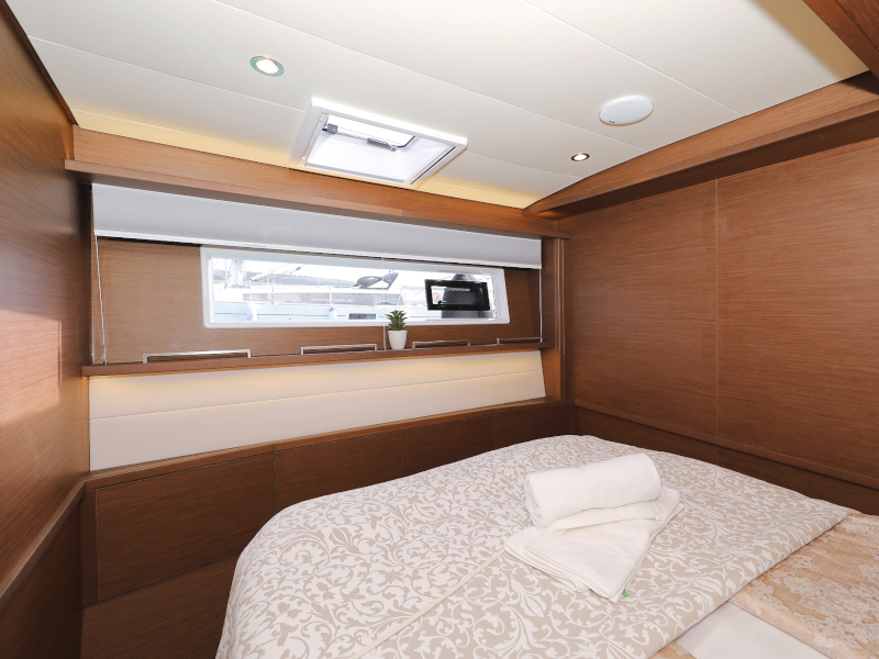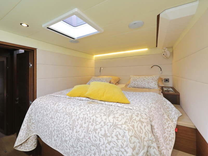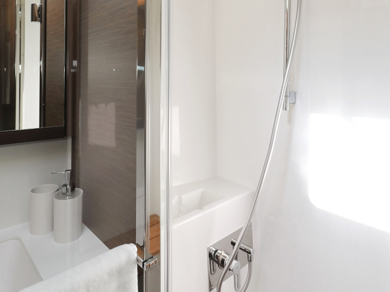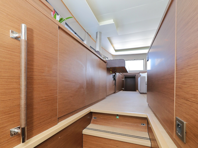 | Inside | 220V Steckdosen, Eiswürfelmaschine, Generator, Geschirrspüler, Inverter 12V/220V, Klimaanlage (ohne Landstrombedarf), Klimaanlage in Salon und Kabinen, Pantryausstattung, Radio mit CD/MP3/USB/AUX-In, Smart-TV, USB Steckdosen in den Kabinen, Ventilator, Waschmaschine mit Trockner, Watermaker, WC (elektr.) |