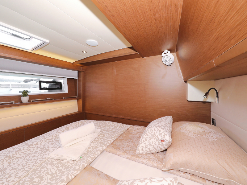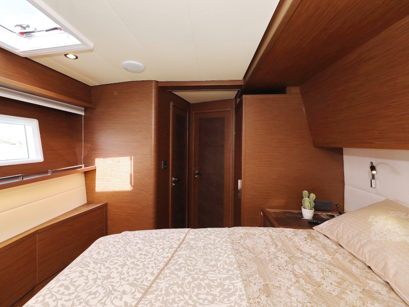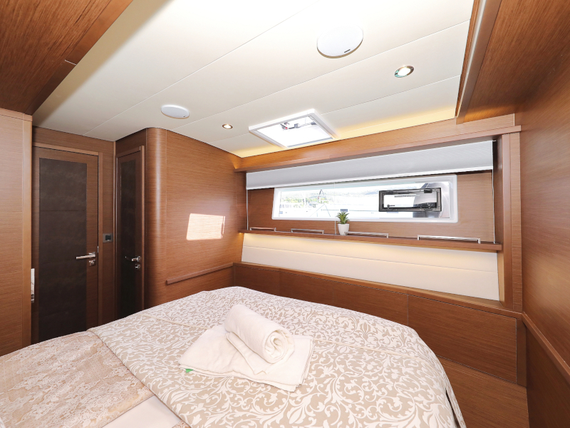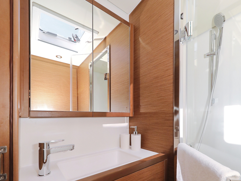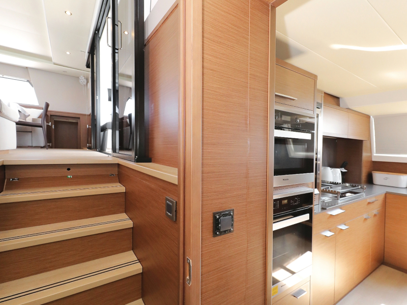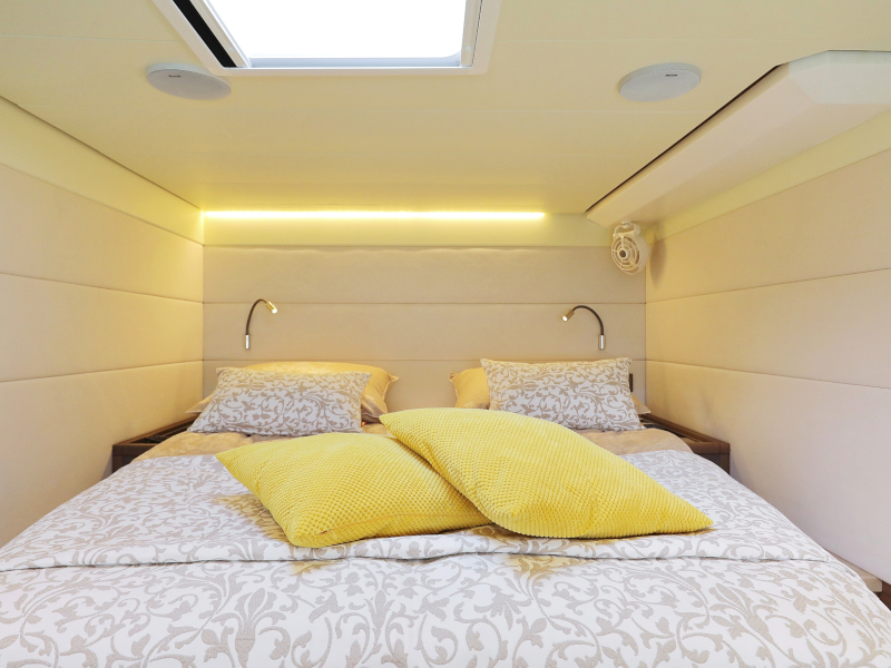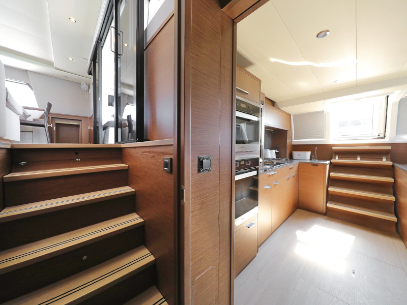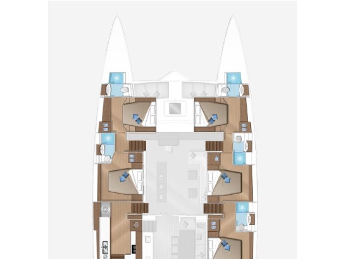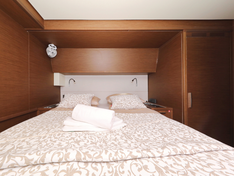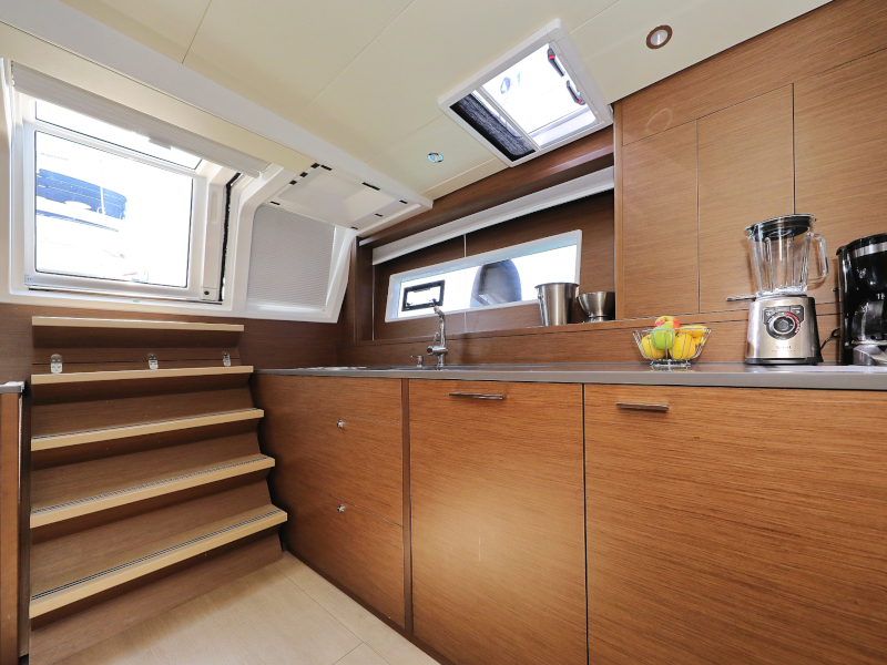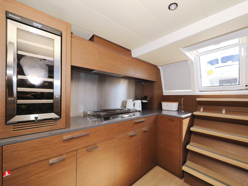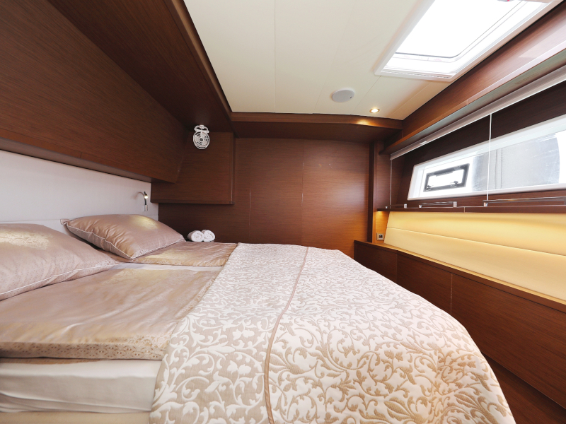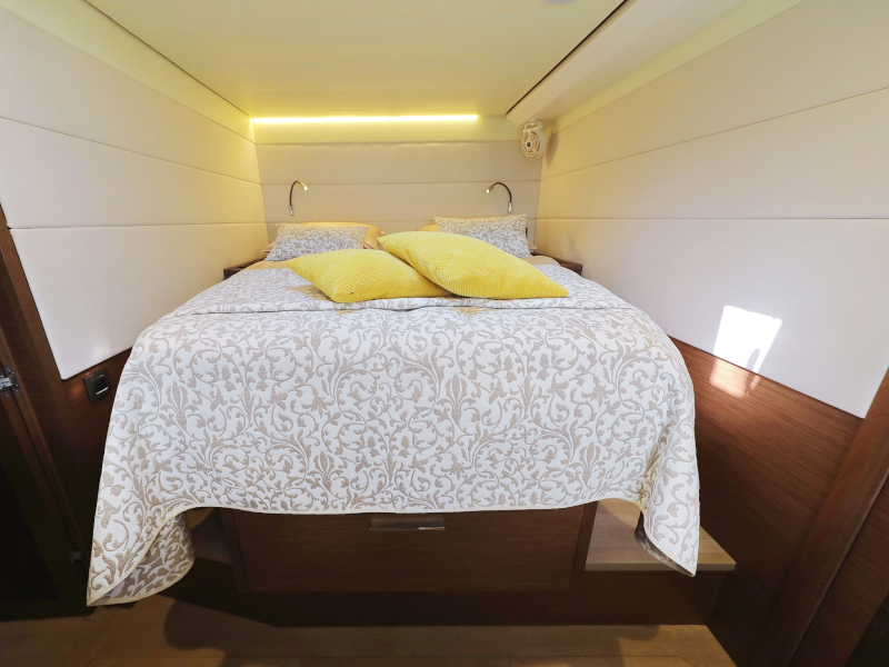 | Inside | 220V Steckdosen, Eiswürfelmaschine, Generator, Geschirrspüler, Inverter 12V/220V, Klimaanlage (ohne Landstrombedarf), Klimaanlage in Salon und Kabinen, Pantryausstattung, Radio mit CD/MP3/USB/AUX-In, Smart-TV, USB Steckdosen in den Kabinen, Ventilator, Waschmaschine mit Trockner, Watermaker, WC (elektr.) |