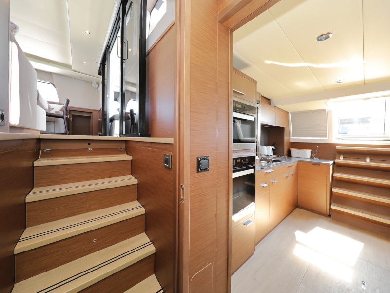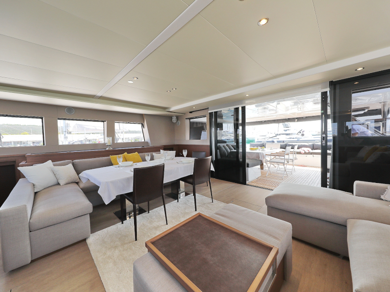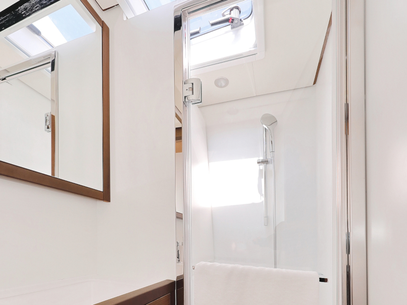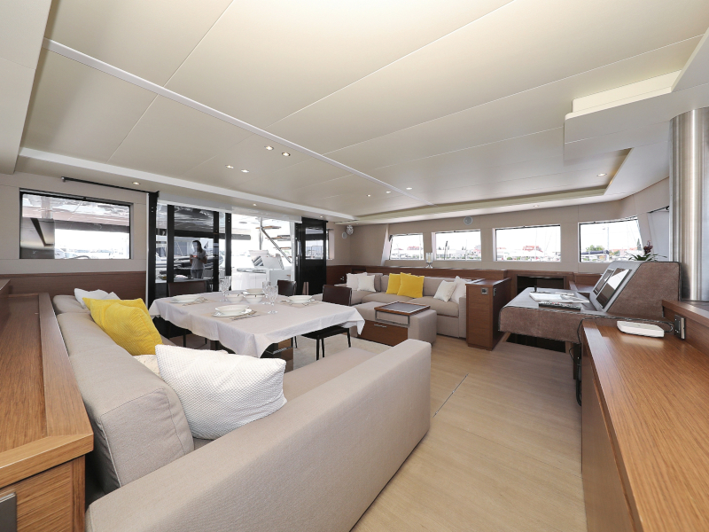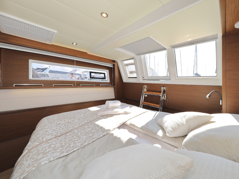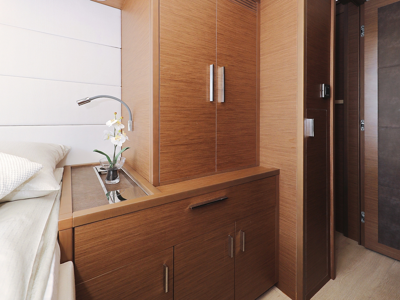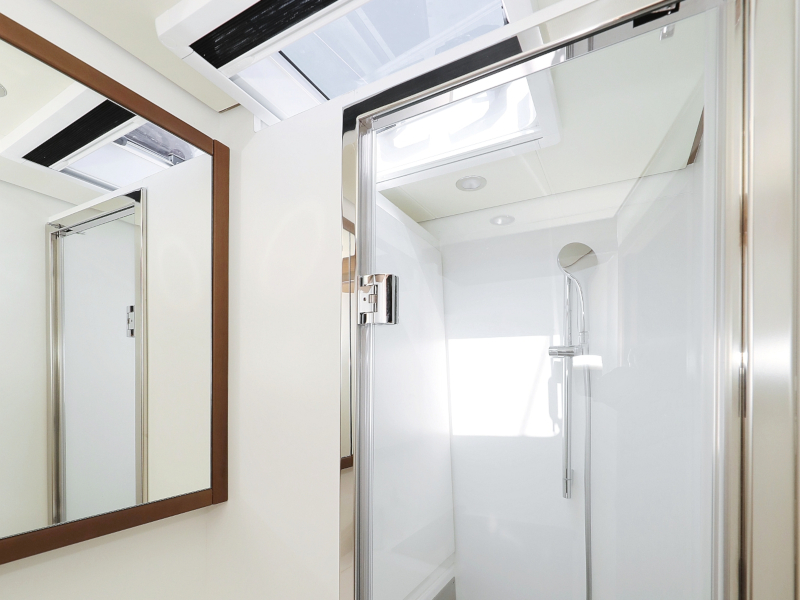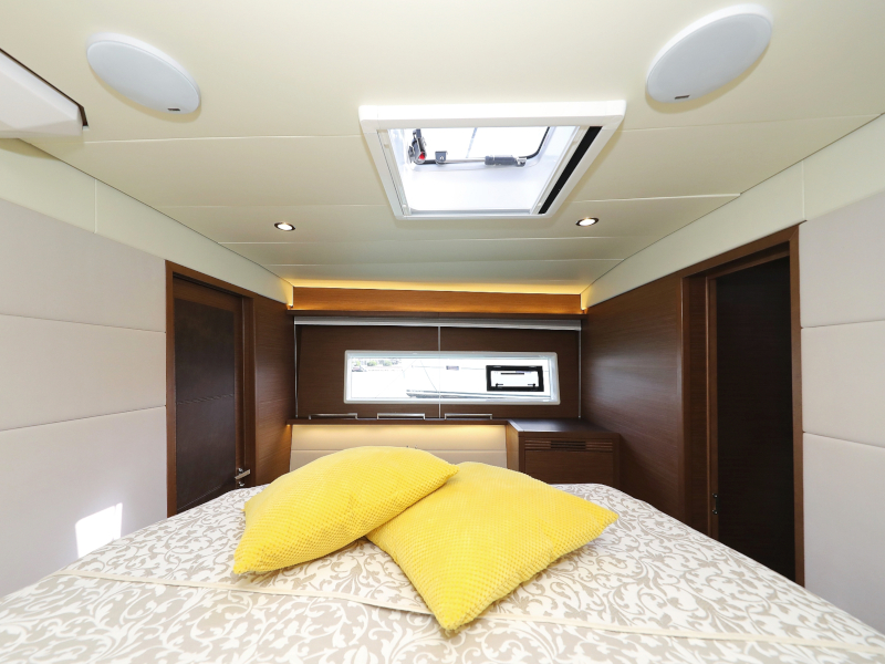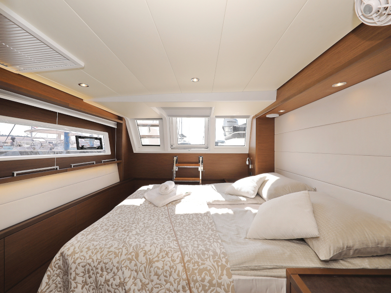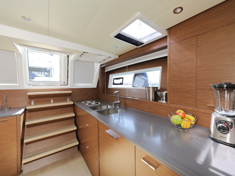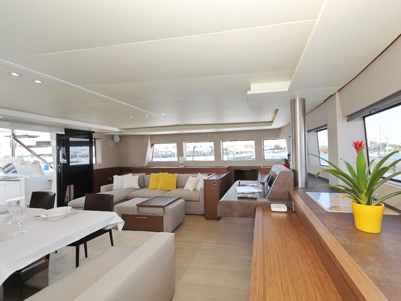 | Inside | 220V Steckdosen, Eiswürfelmaschine, Generator, Geschirrspüler, Inverter 12V/220V, Klimaanlage (ohne Landstrombedarf), Klimaanlage in Salon und Kabinen, Pantryausstattung, Radio mit CD/MP3/USB/AUX-In, Smart-TV, USB Steckdosen in den Kabinen, Ventilator, Waschmaschine mit Trockner, Watermaker, WC (elektr.) |
