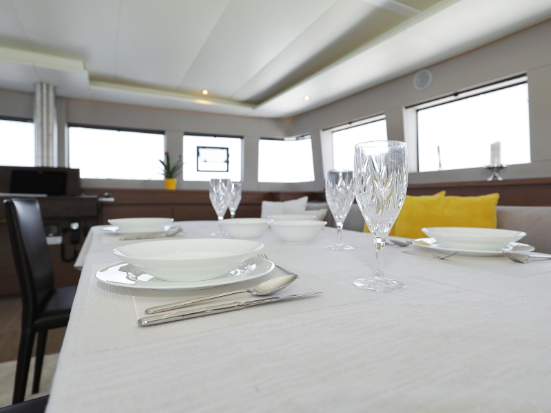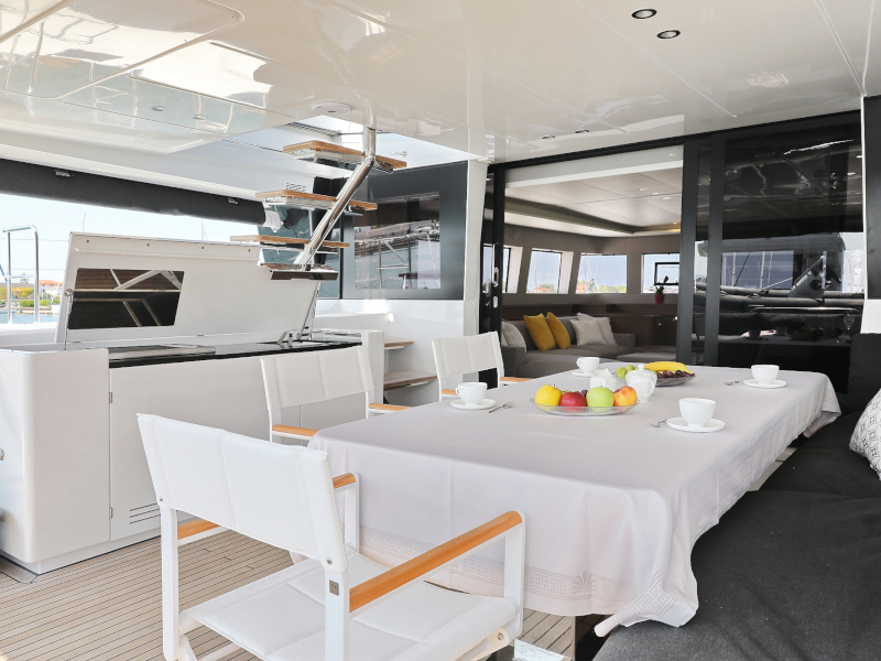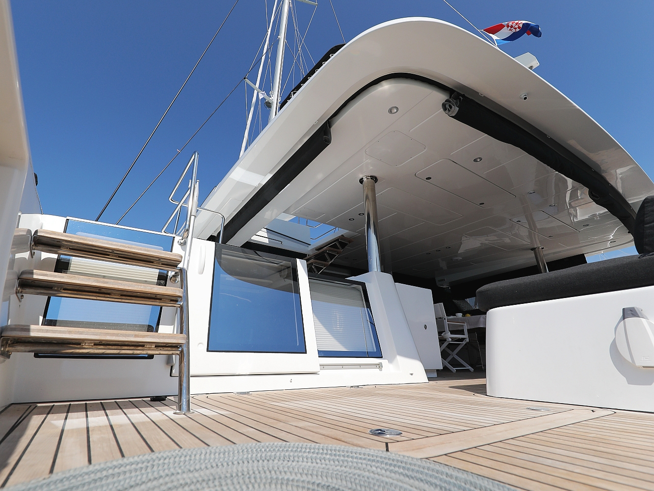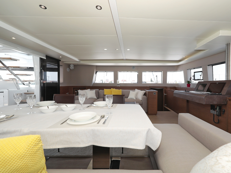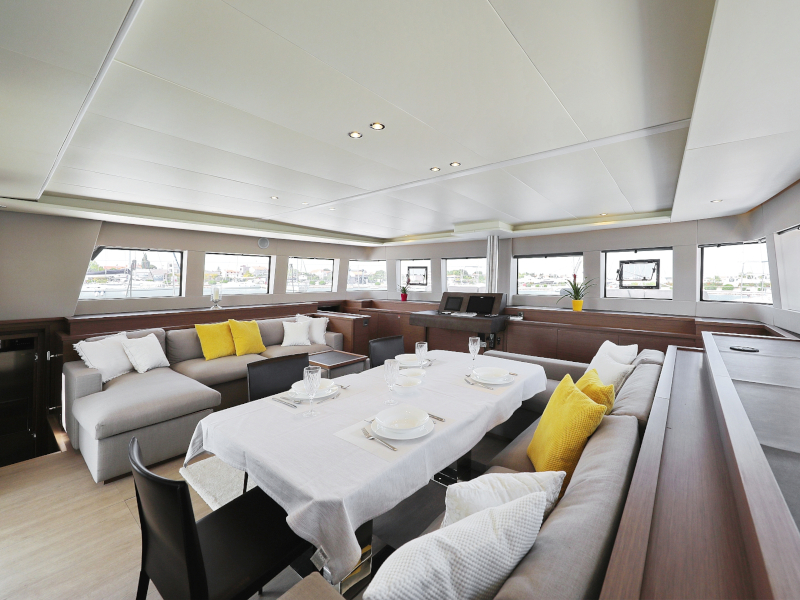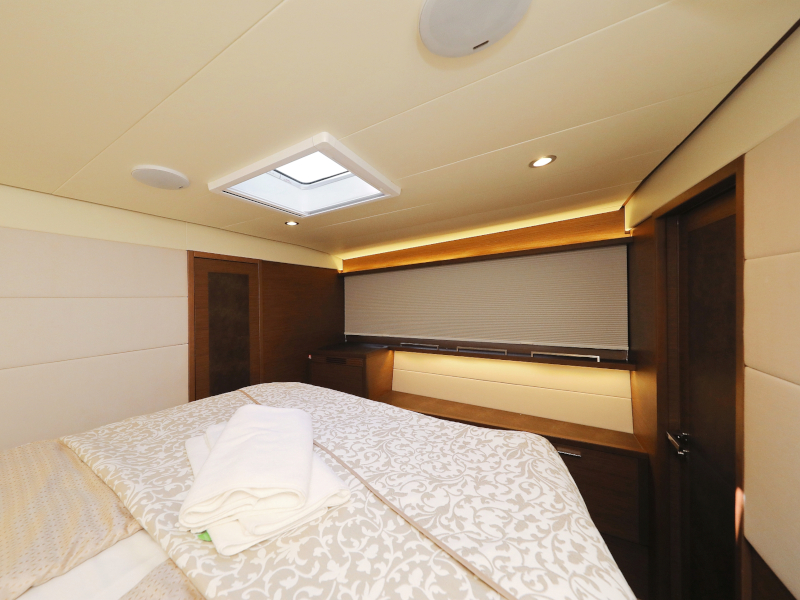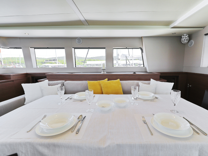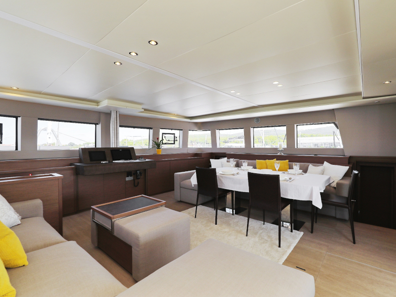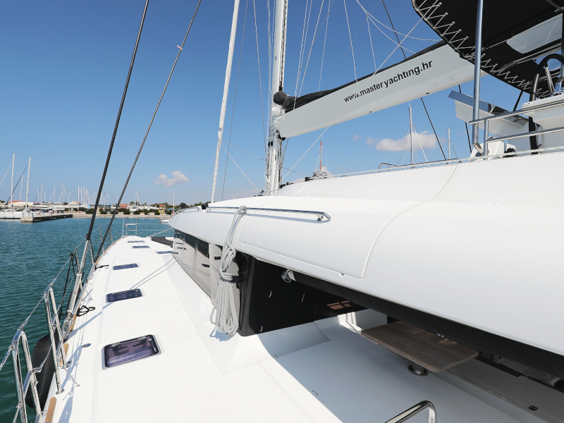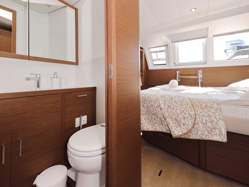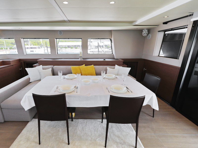 | Inside | 220V Steckdosen, Eiswürfelmaschine, Generator, Geschirrspüler, Inverter 12V/220V, Klimaanlage (ohne Landstrombedarf), Klimaanlage in Salon und Kabinen, Pantryausstattung, Radio mit CD/MP3/USB/AUX-In, Smart-TV, USB Steckdosen in den Kabinen, Ventilator, Waschmaschine mit Trockner, Watermaker, WC (elektr.) |
