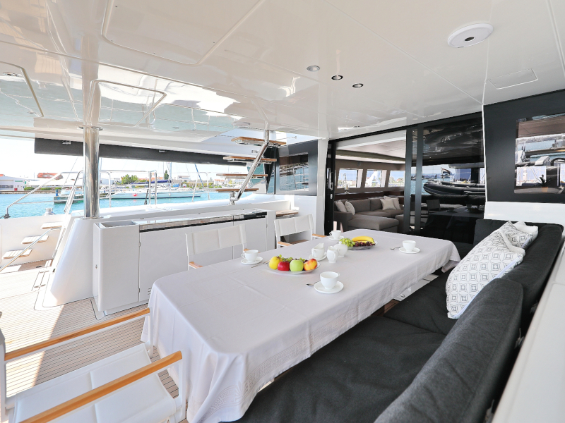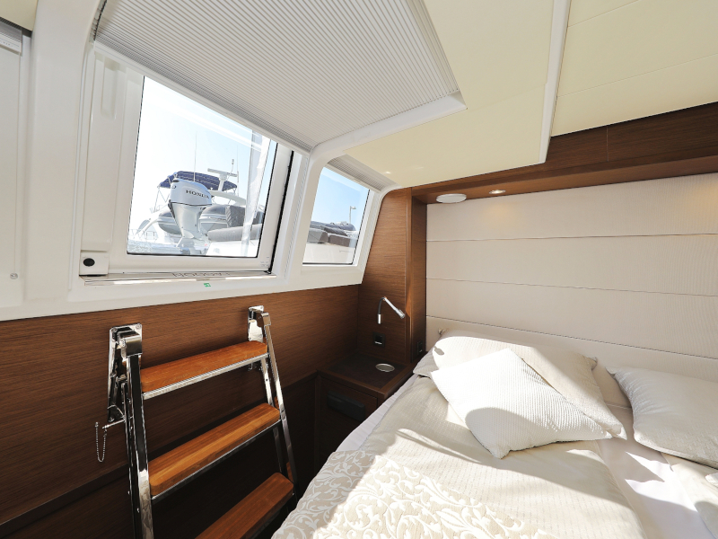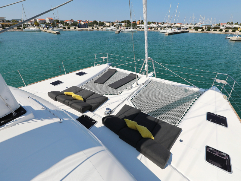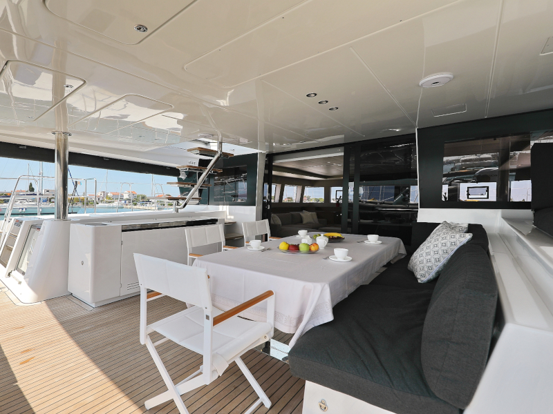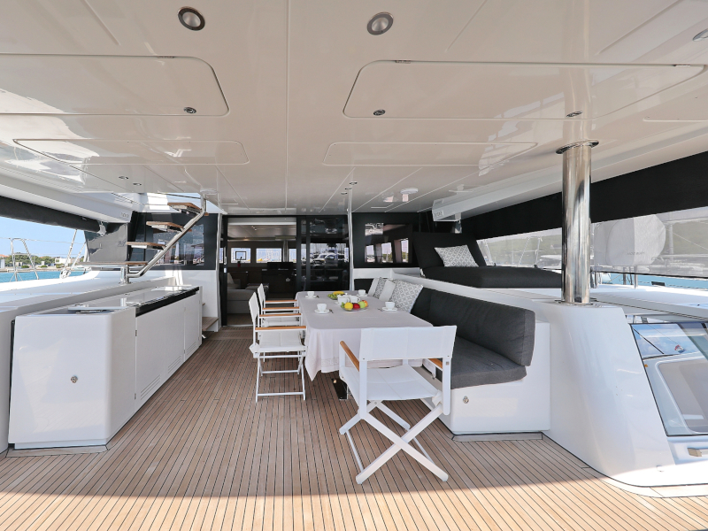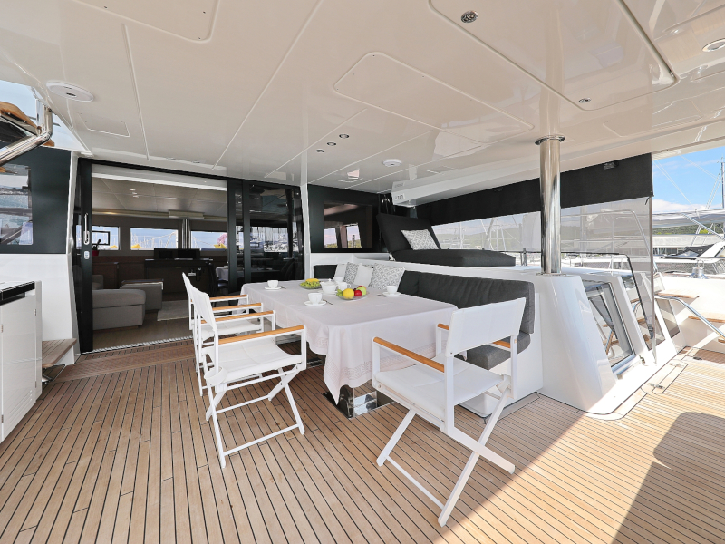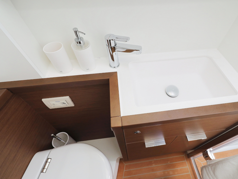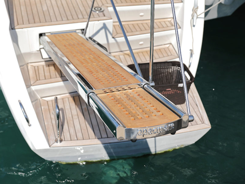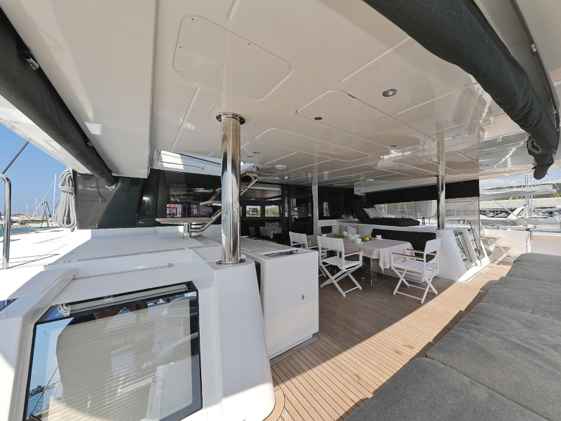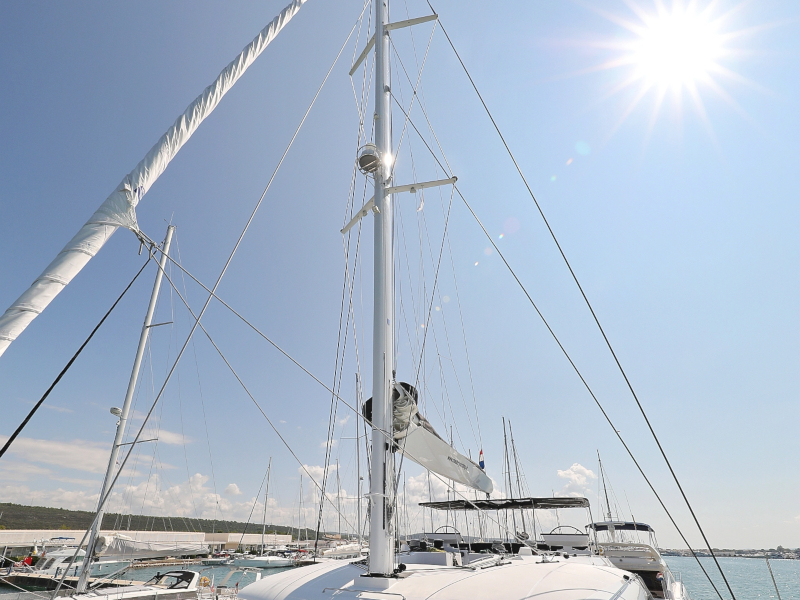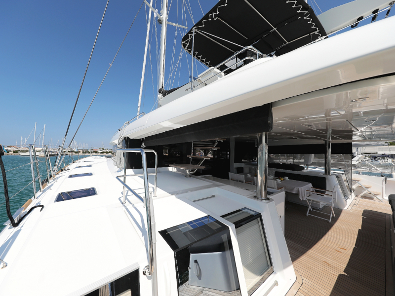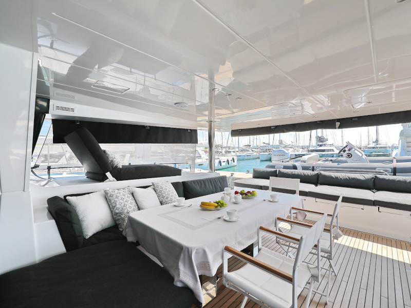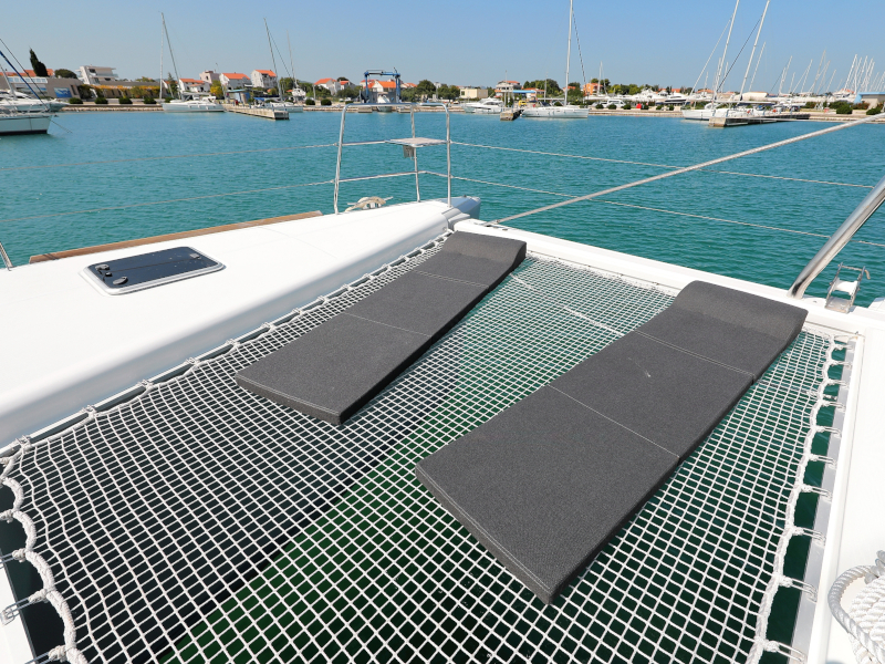 | Inside | 220V Steckdosen, Eiswürfelmaschine, Generator, Geschirrspüler, Inverter 12V/220V, Klimaanlage (ohne Landstrombedarf), Klimaanlage in Salon und Kabinen, Pantryausstattung, Radio mit CD/MP3/USB/AUX-In, Smart-TV, USB Steckdosen in den Kabinen, Ventilator, Waschmaschine mit Trockner, Watermaker, WC (elektr.) |