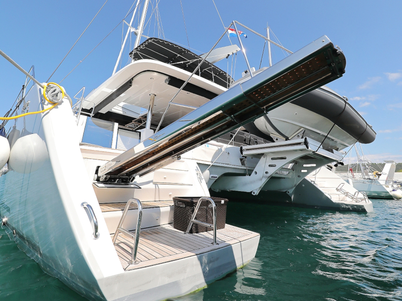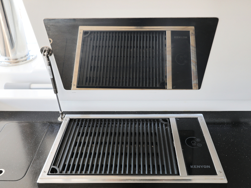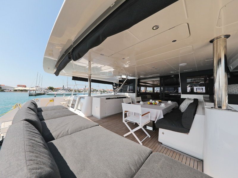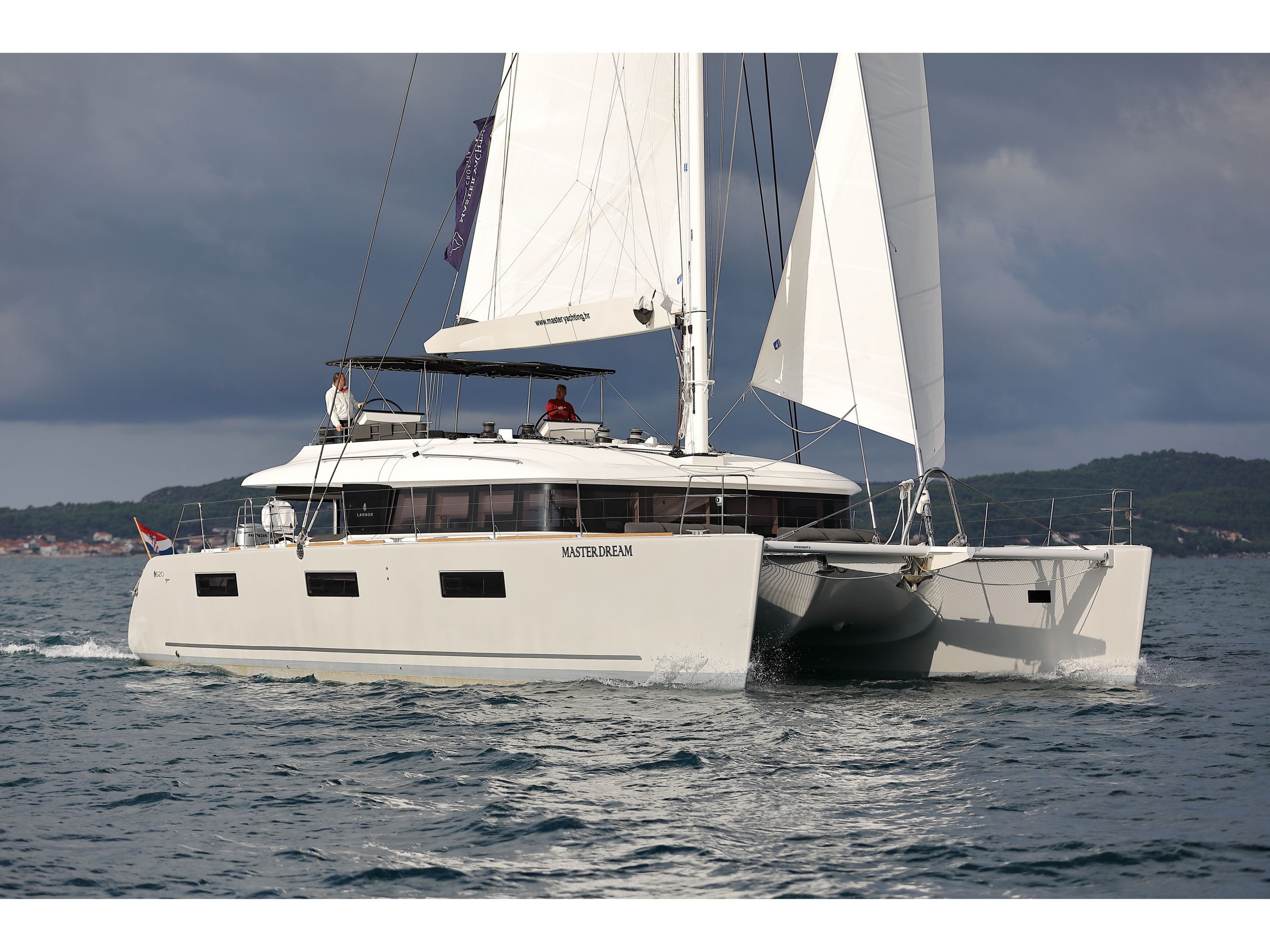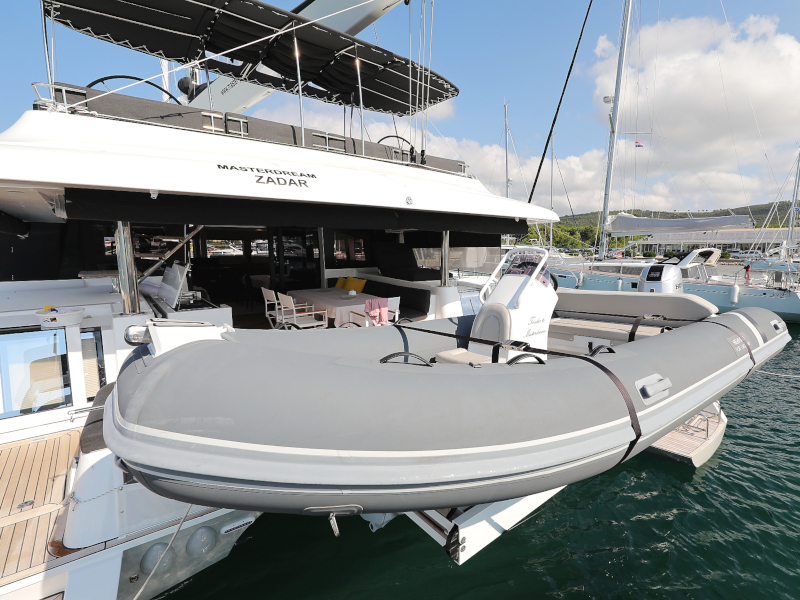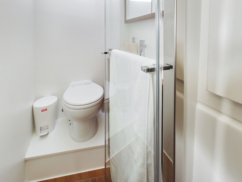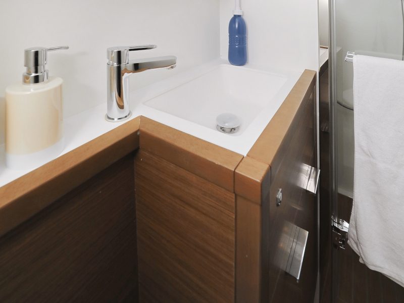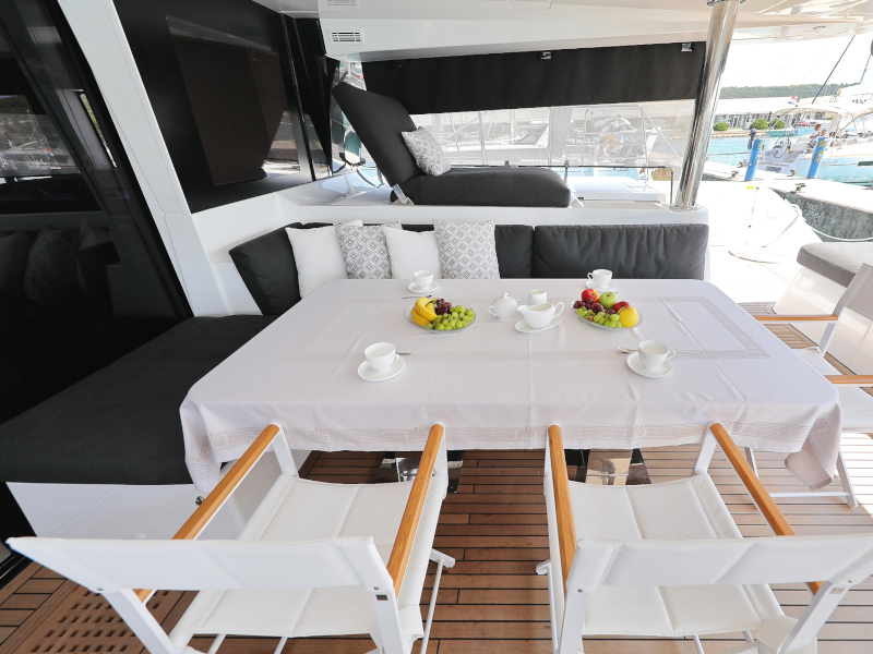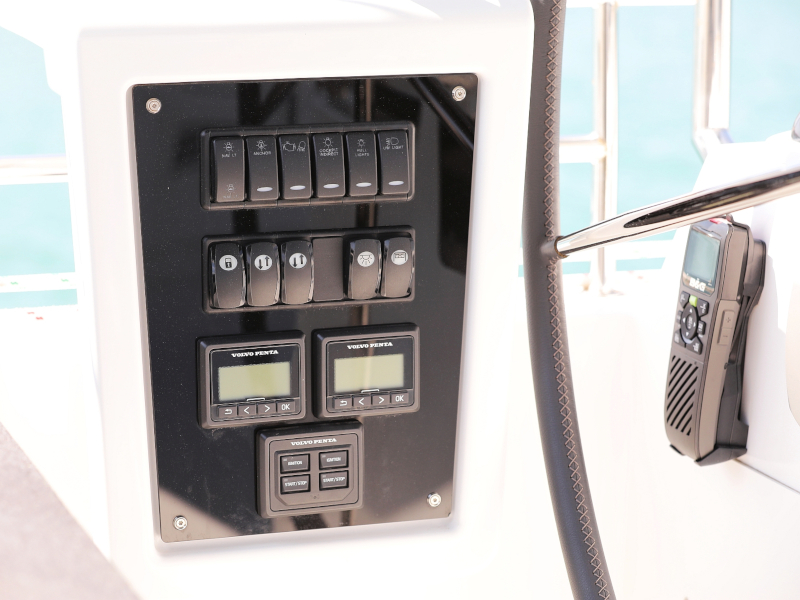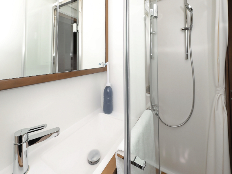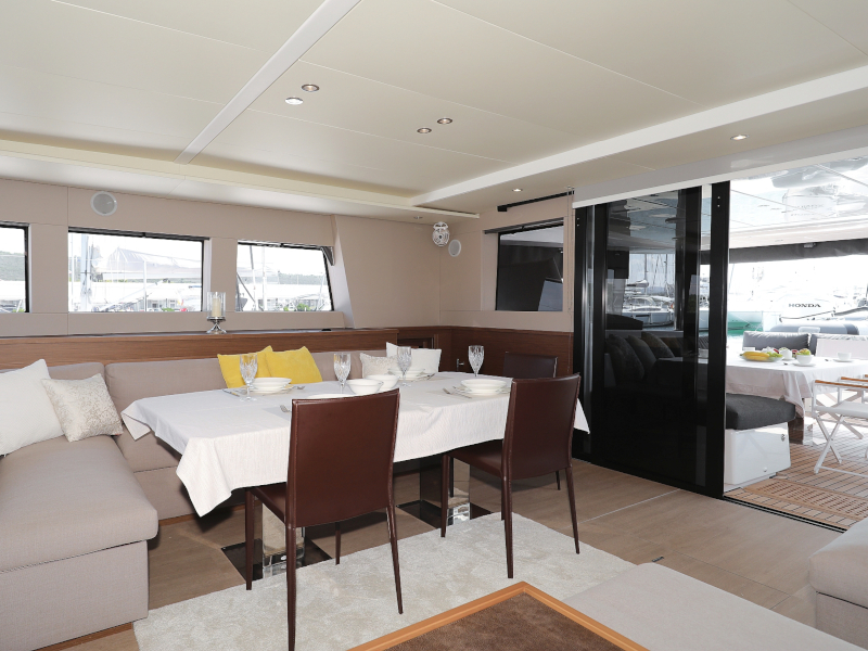 | Inside | 220V Steckdosen, Eiswürfelmaschine, Generator, Geschirrspüler, Inverter 12V/220V, Klimaanlage (ohne Landstrombedarf), Klimaanlage in Salon und Kabinen, Pantryausstattung, Radio mit CD/MP3/USB/AUX-In, Smart-TV, USB Steckdosen in den Kabinen, Ventilator, Waschmaschine mit Trockner, Watermaker, WC (elektr.) |