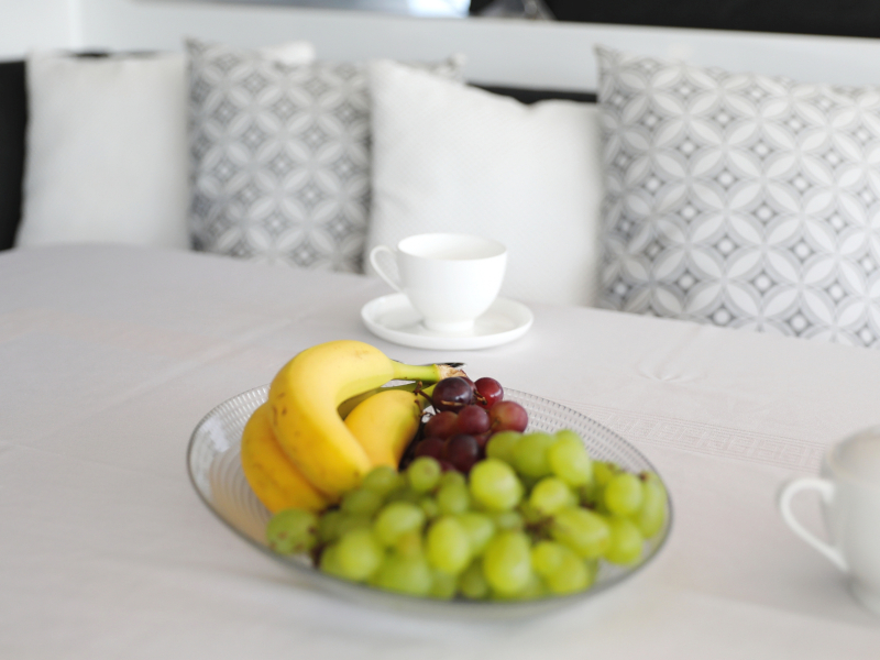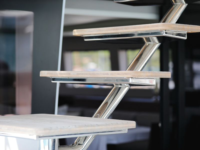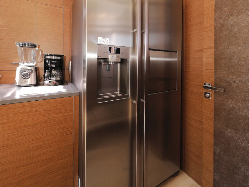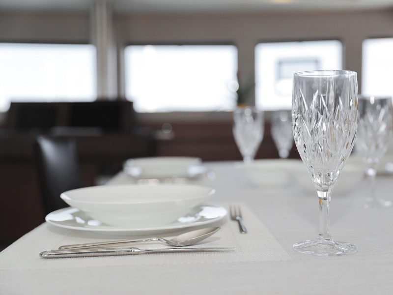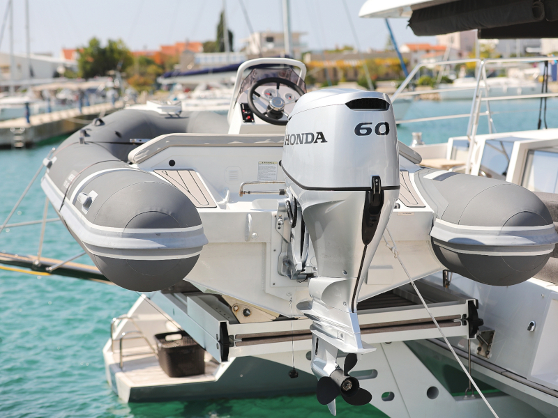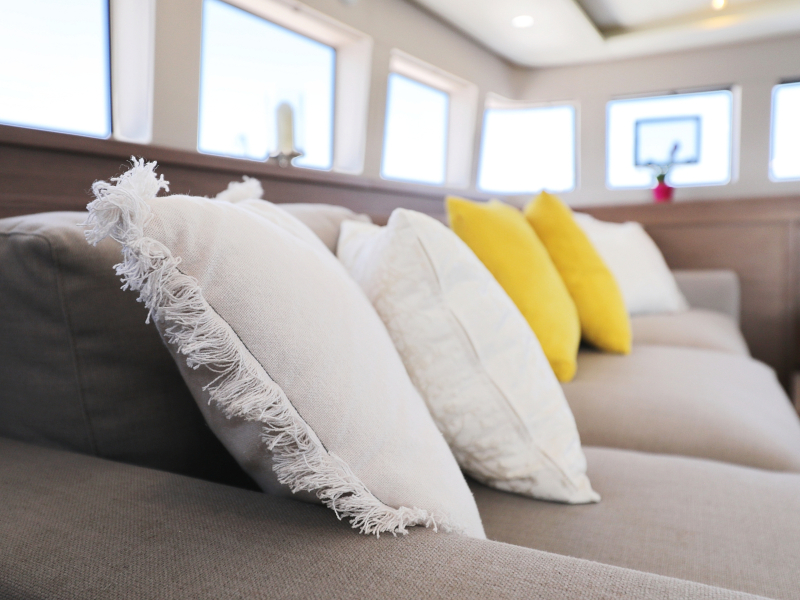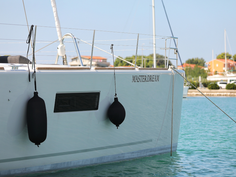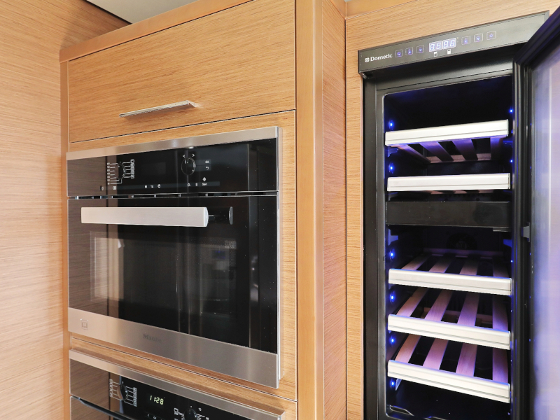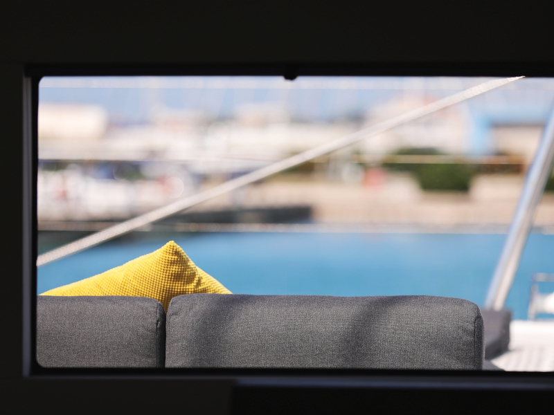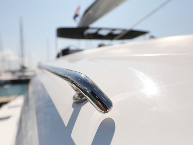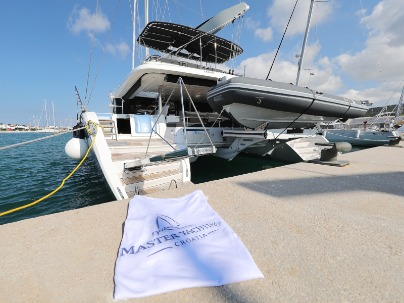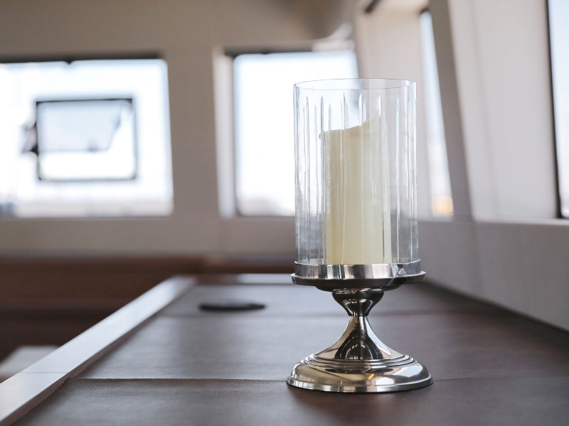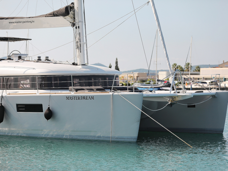 | Inside | 220V Steckdosen, Eiswürfelmaschine, Generator, Geschirrspüler, Inverter 12V/220V, Klimaanlage (ohne Landstrombedarf), Klimaanlage in Salon und Kabinen, Pantryausstattung, Radio mit CD/MP3/USB/AUX-In, Smart-TV, USB Steckdosen in den Kabinen, Ventilator, Waschmaschine mit Trockner, Watermaker, WC (elektr.) |