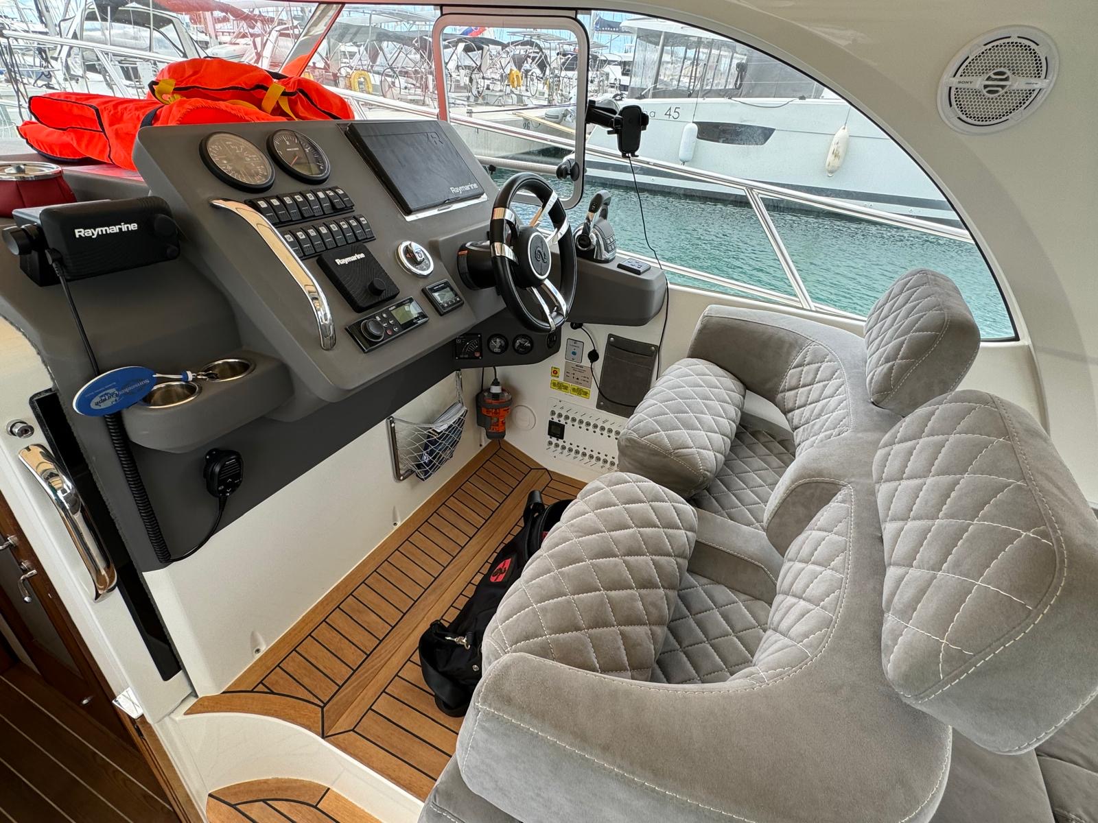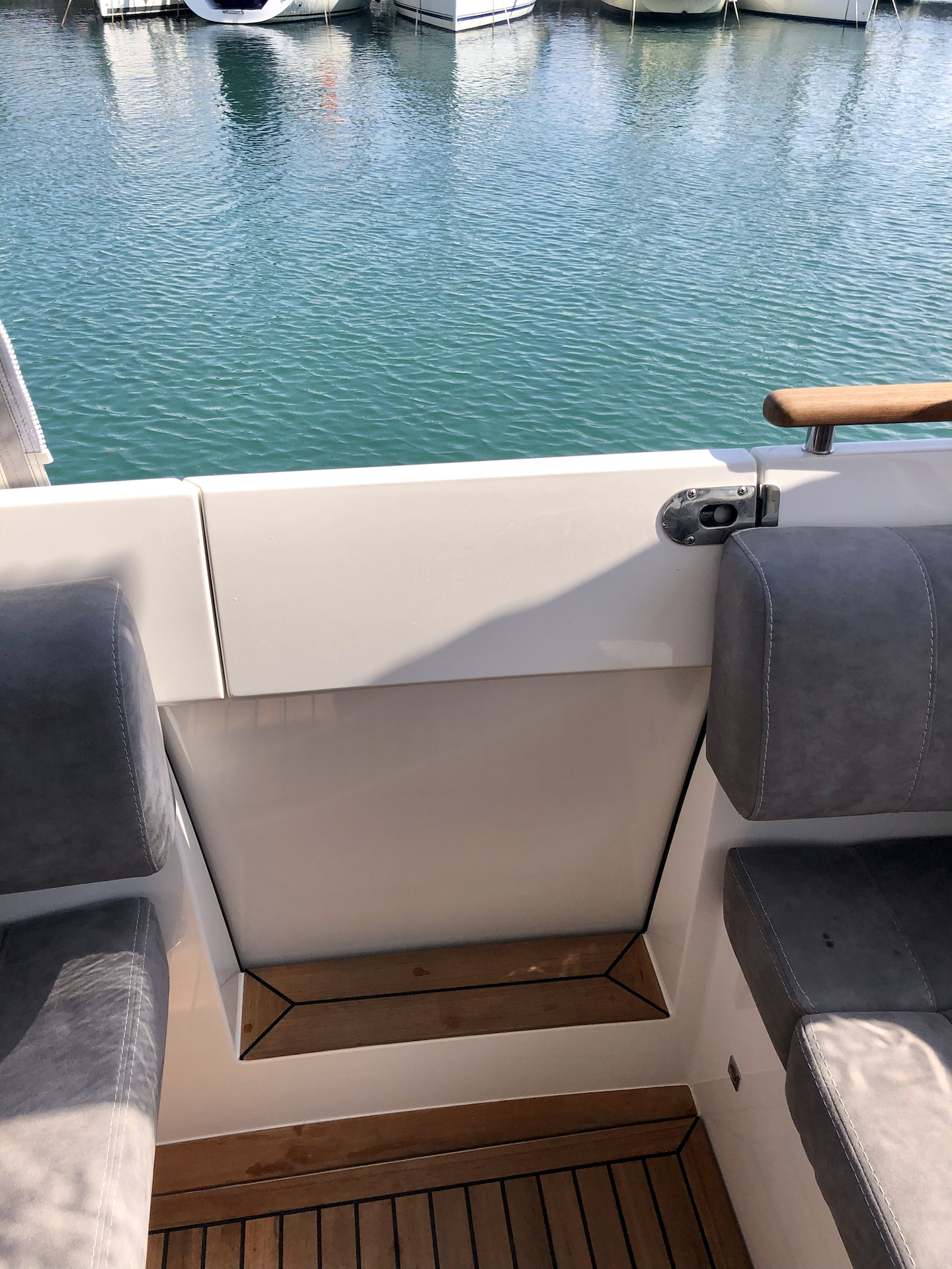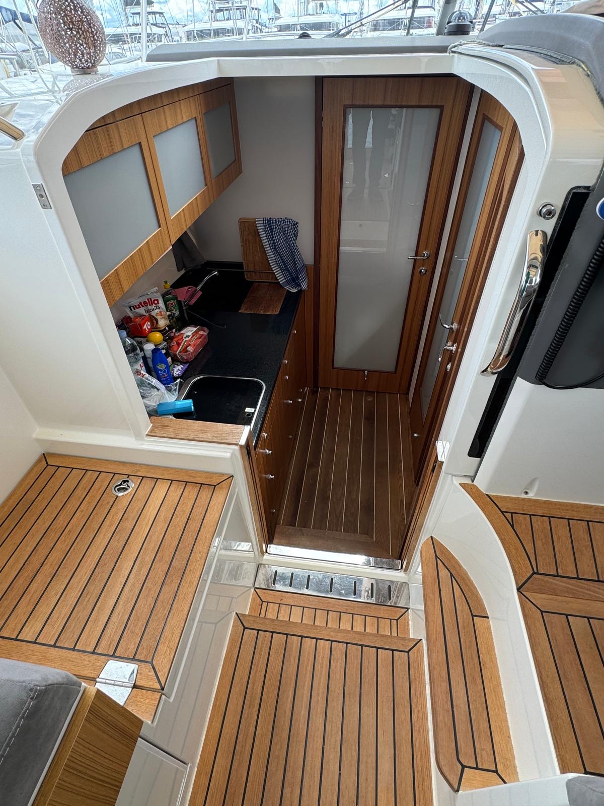 | Outside | Biminitop, Cockpitdusche, Cockpitpolster, elektr. Ankerwinsch, Solaranlage, Teak im Cockpit, Unterwasserbeleuchtung |
