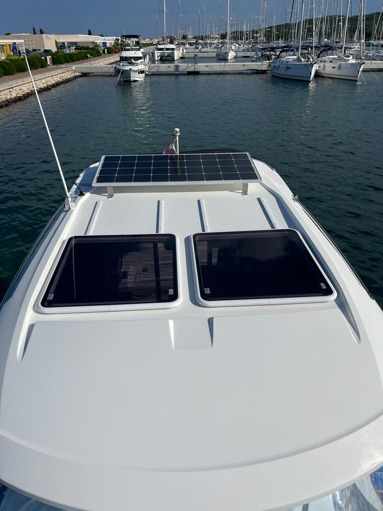 | Outside | Bootshaken, Cockpittisch, Deckbürste, elektr. Ankerwinsch, Festmacherleinen, Solaranlage, Teak im Cockpit, Unterwasserbeleuchtung, Wasserschlauch |