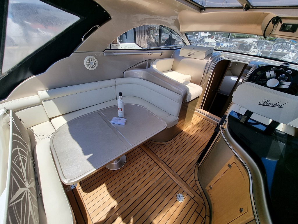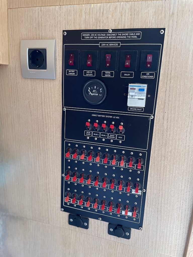 | Outside | 220 V-Landanschluss, Anker mit Kette, Badeleiter, Cockpitdusche, Cockpitlautsprecher, Cockpittisch, Deckpolster, elektr. Ankerwinsch, Festmacherleinen, Gangway, Hardtop, Solaranlage |