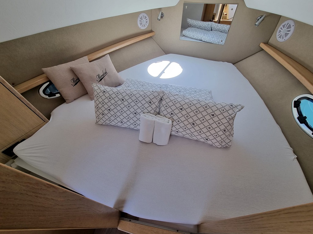 Die Sauberkeit der Yacht, bei der Übernahme war nicht gut ( es wurde auf unsere Aufforderung nachgereinigt). Die Yacht ist insgesamt in einem deutlich verbrauchten Zustand, insbesondere im Innenbereich( Wassereibruch nach Regen, gammliges Holz, muffig, stark riechender WC-Bereich).