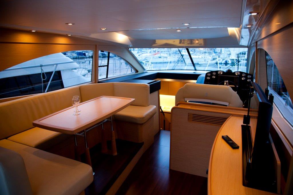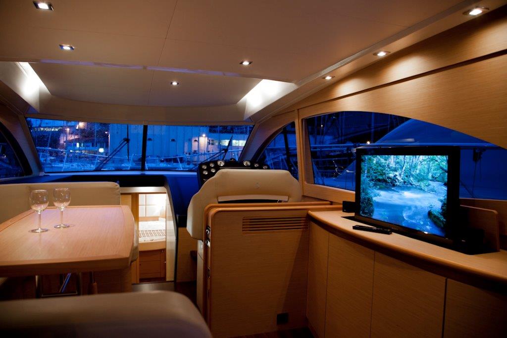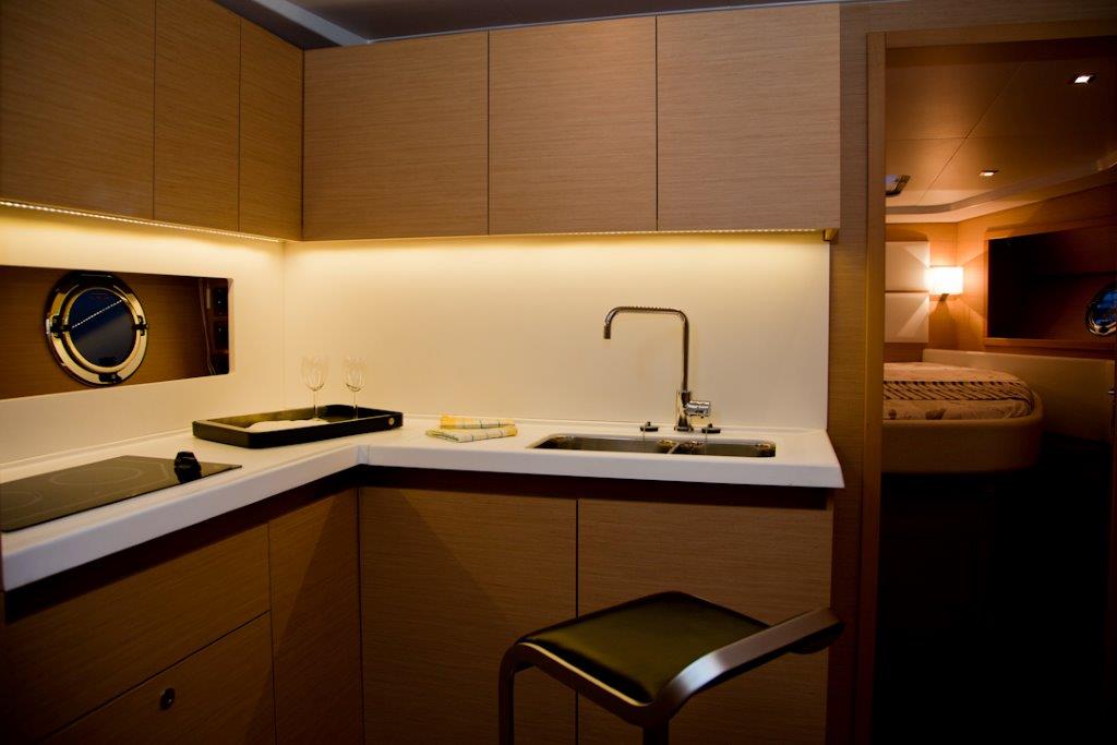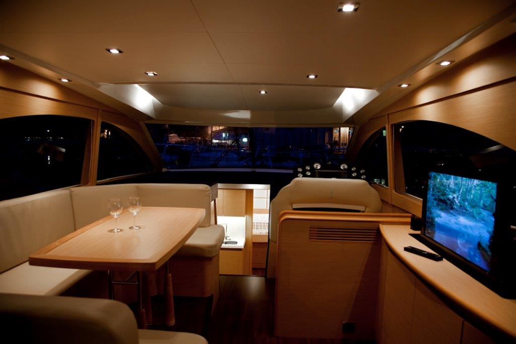 | Outside | 12 V-Anschluss, 220 V-Landanschluss, Badeleiter, Badeplattform, Cockpitdusche, elektr. Ankerwinsch, Flybridge, Seereling, Sonnendeck, Tendergarage |
