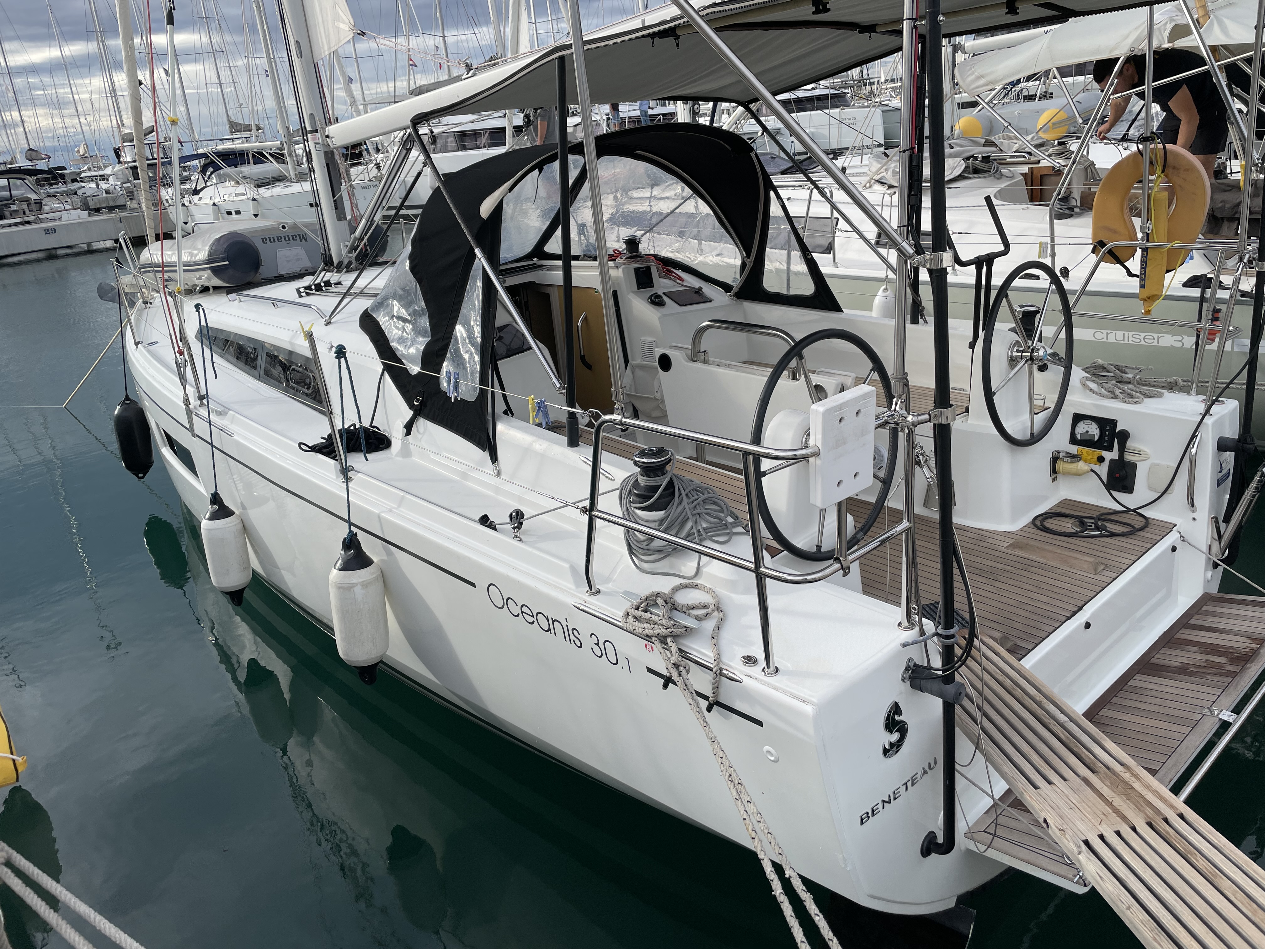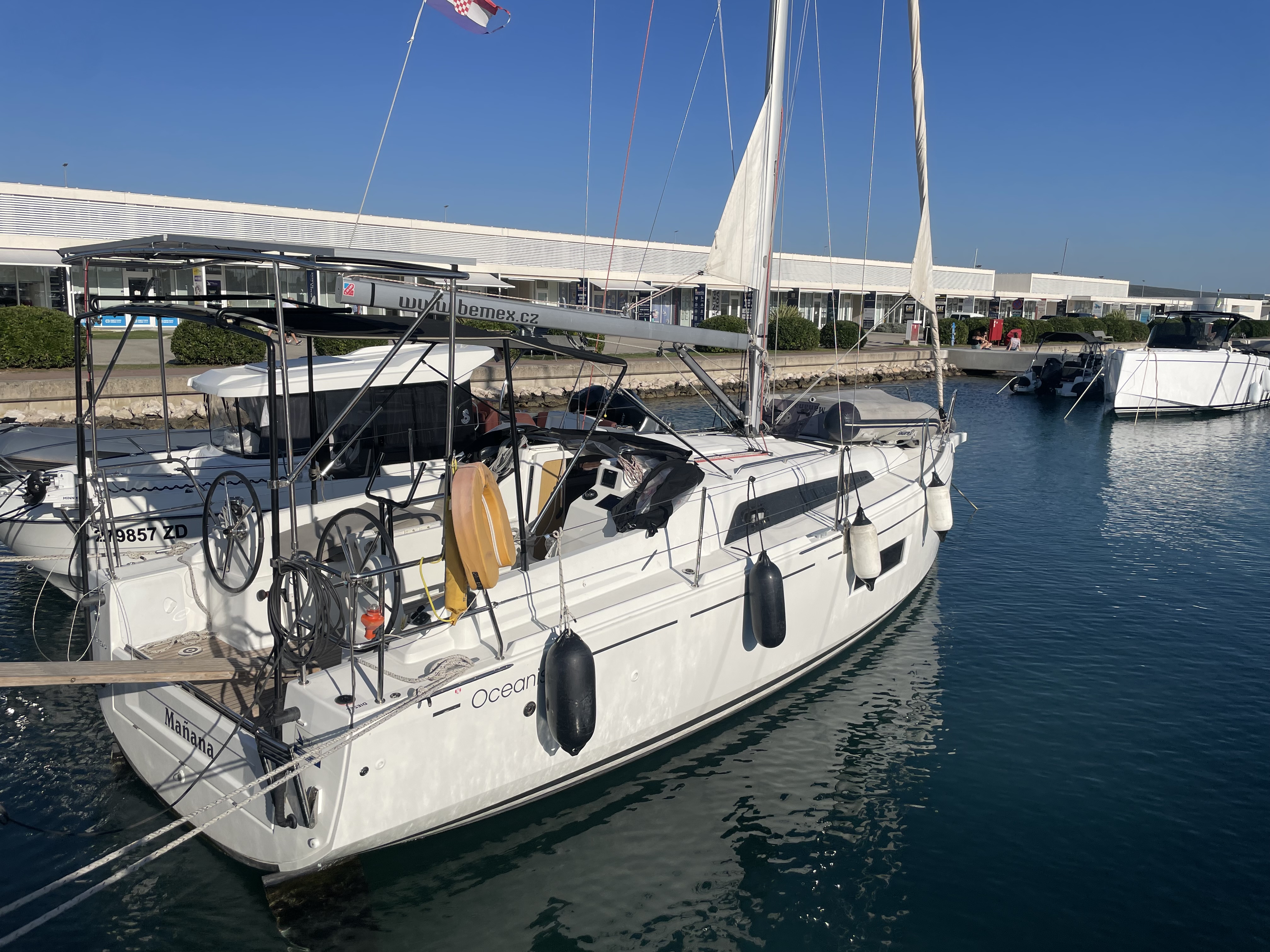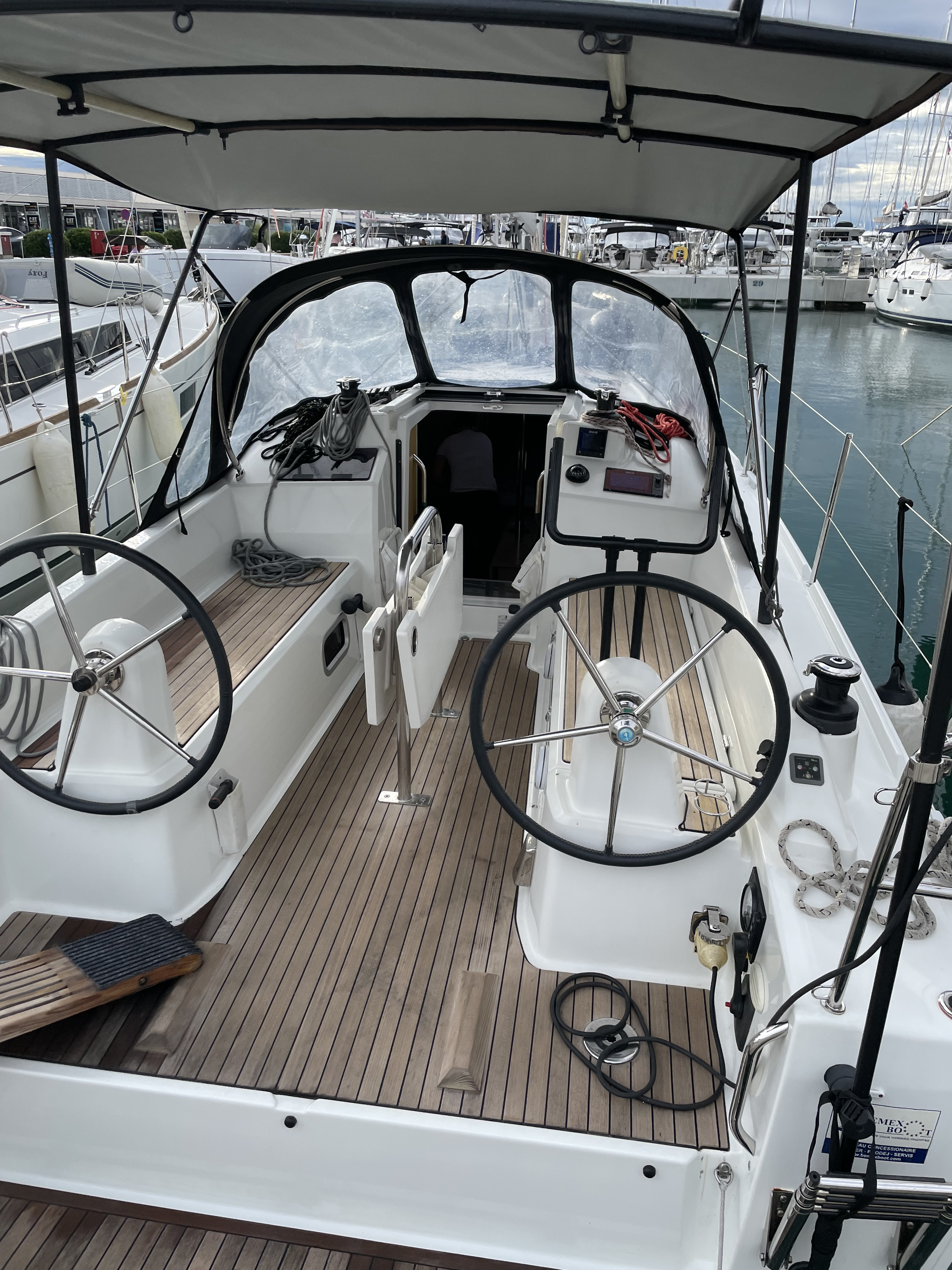 | Outside | Biminitop, Cockpitdusche, elektr. Ankerwinsch, Solaranlage, Sprayhood, Windex |
