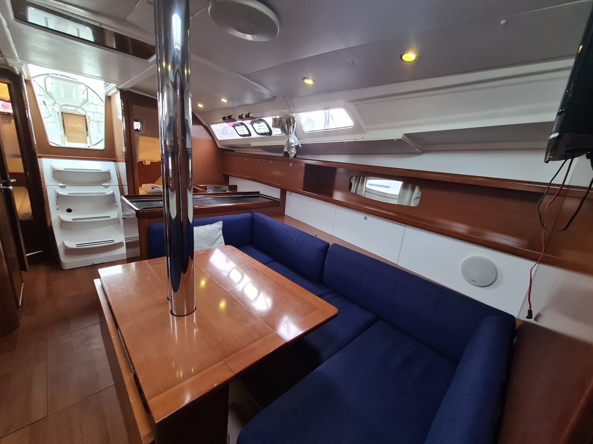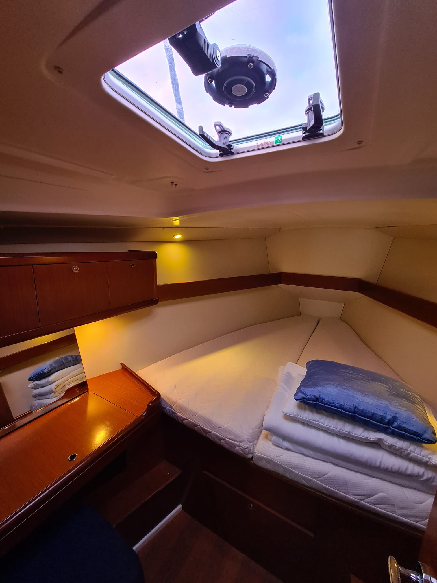 | Inside | Besen und Kehrblech, Borduhr, Frischwasserpumpe, Heizung, Kühlschrank, Ladegerät, Luftpumpe für Beiboot, Radio mit CD und MP3, Trichter, Warmwasser |