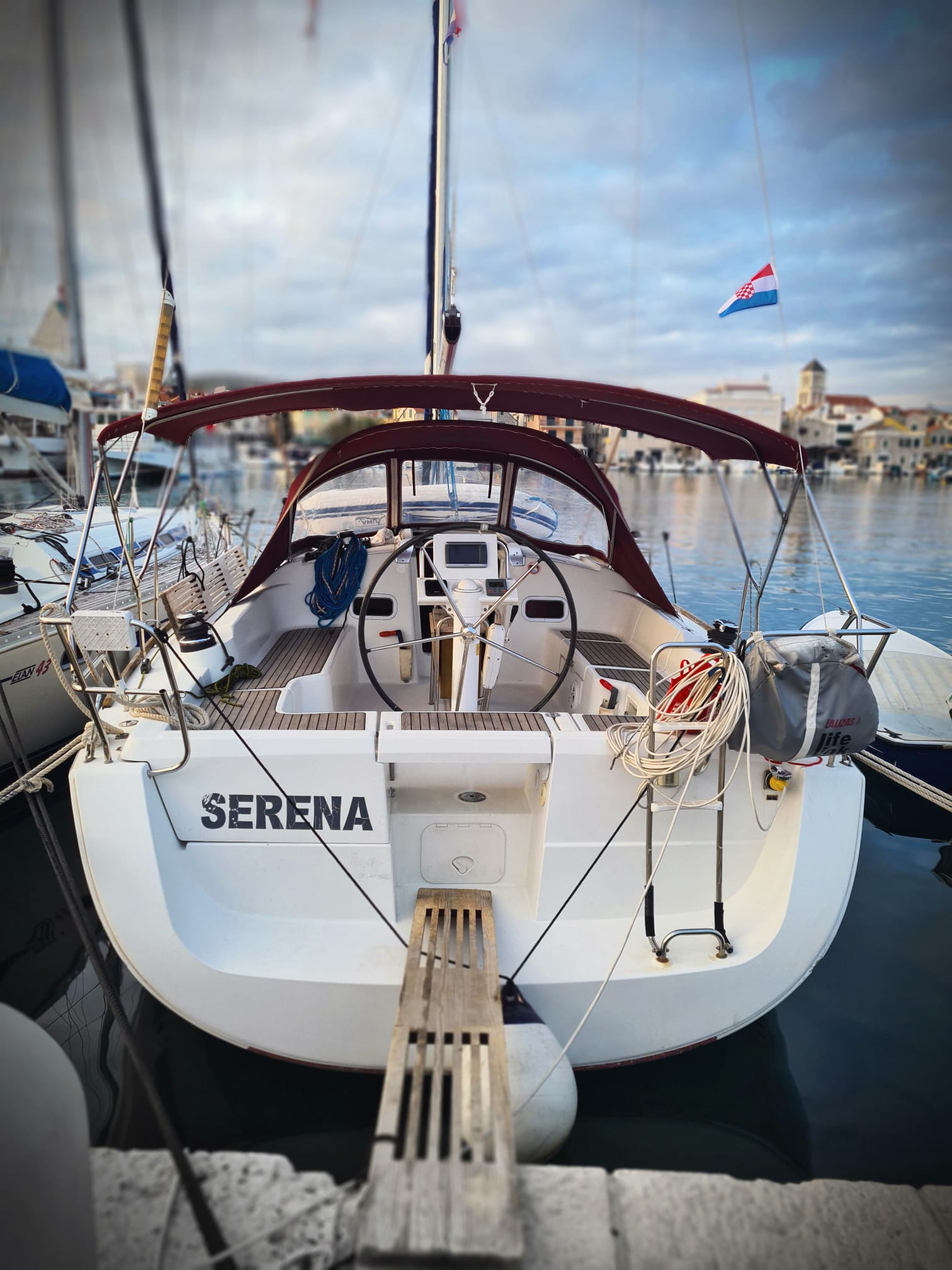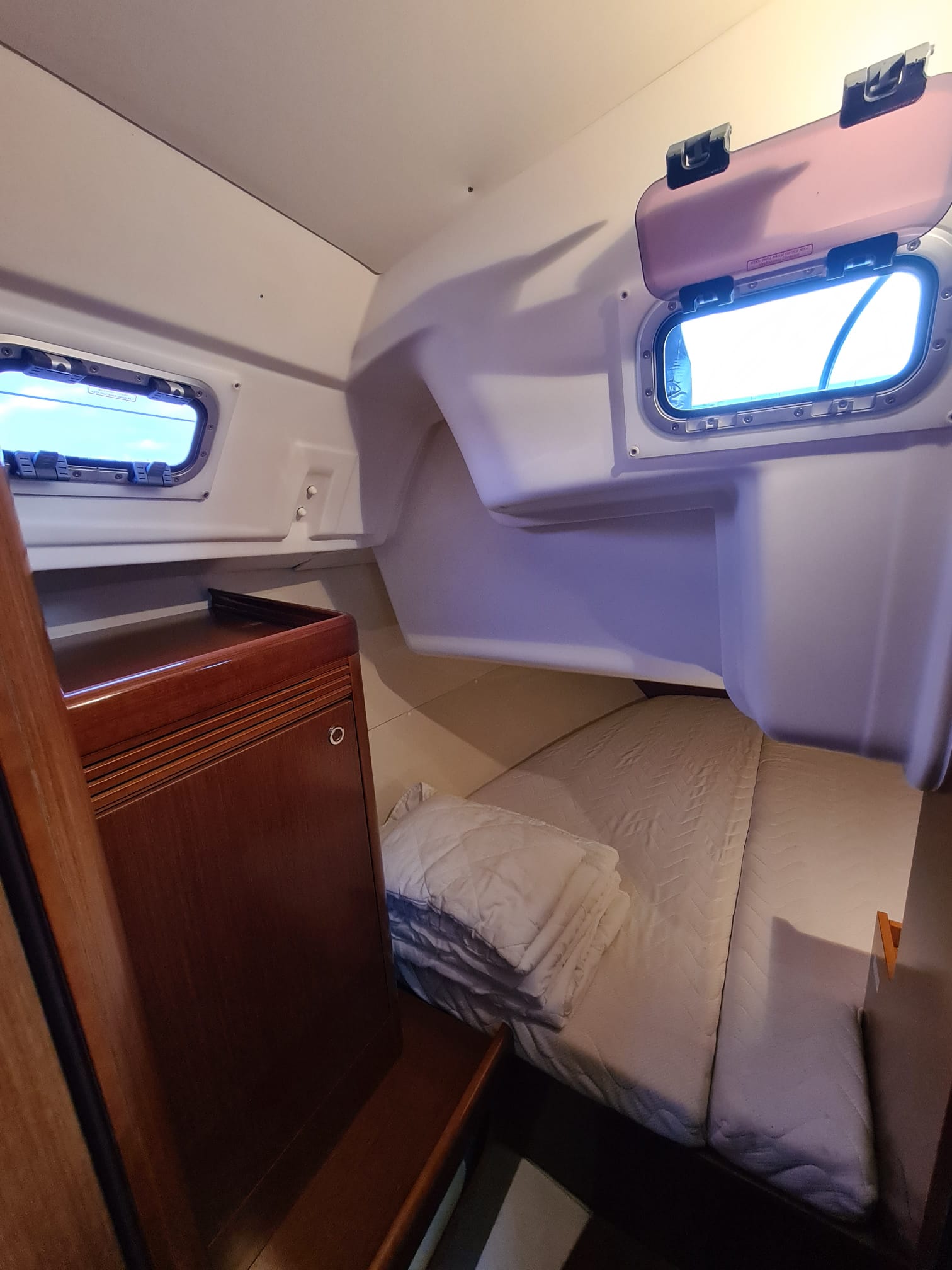 | Safety | Autopilot, Blitzboje, Bootsmannstuhl, Bordapotheke, Bordwerkzeug, Bugstrahlruder, elektr. Bilgepumpe, Feststoffschwimmwesten, Feuerlöscher, Lifebelts, Nebelhorn, Notpinne, Notsignale, Radarreflektor, Taschenlampe, UKW-Funk, Zweitanker |