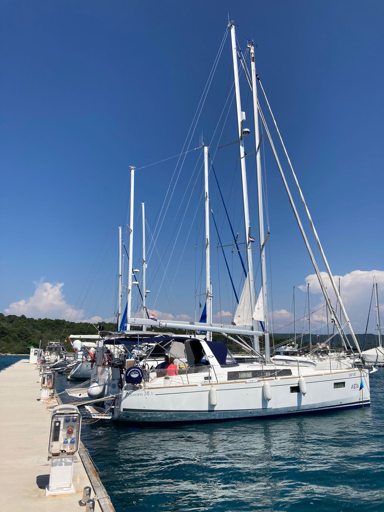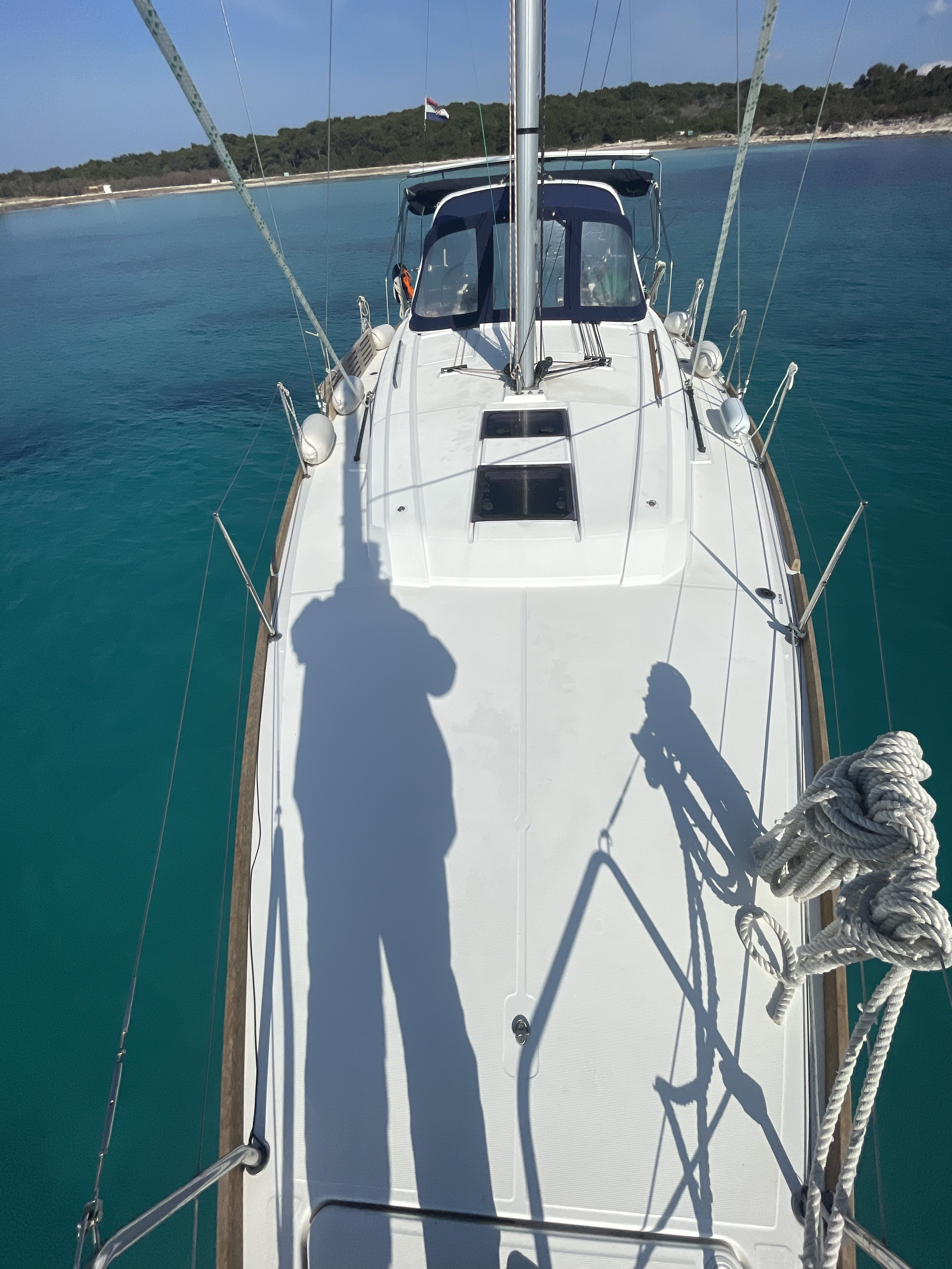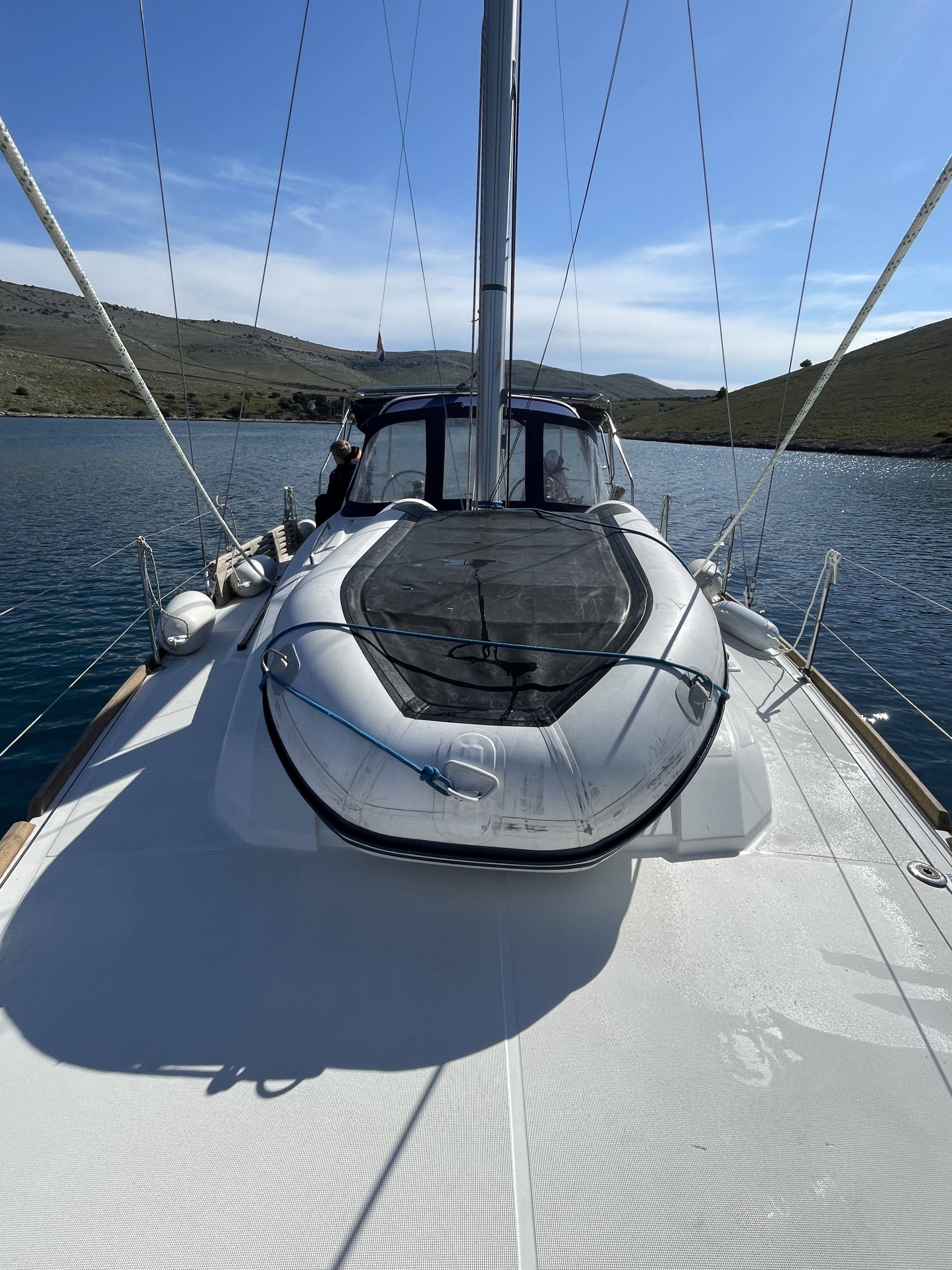 | Outside | Badeplattform, Biminitop, Bootshaken, Buganker, Cockpitdusche, Cockpittisch, Deckbürste, Dieselkanister , Eimer mit Seil, elektr. Ankerwinsch, Fender, Festmacherleinen, Gangway, Solaranlage, Sprayhood, Wasserschlauch, Winschen |