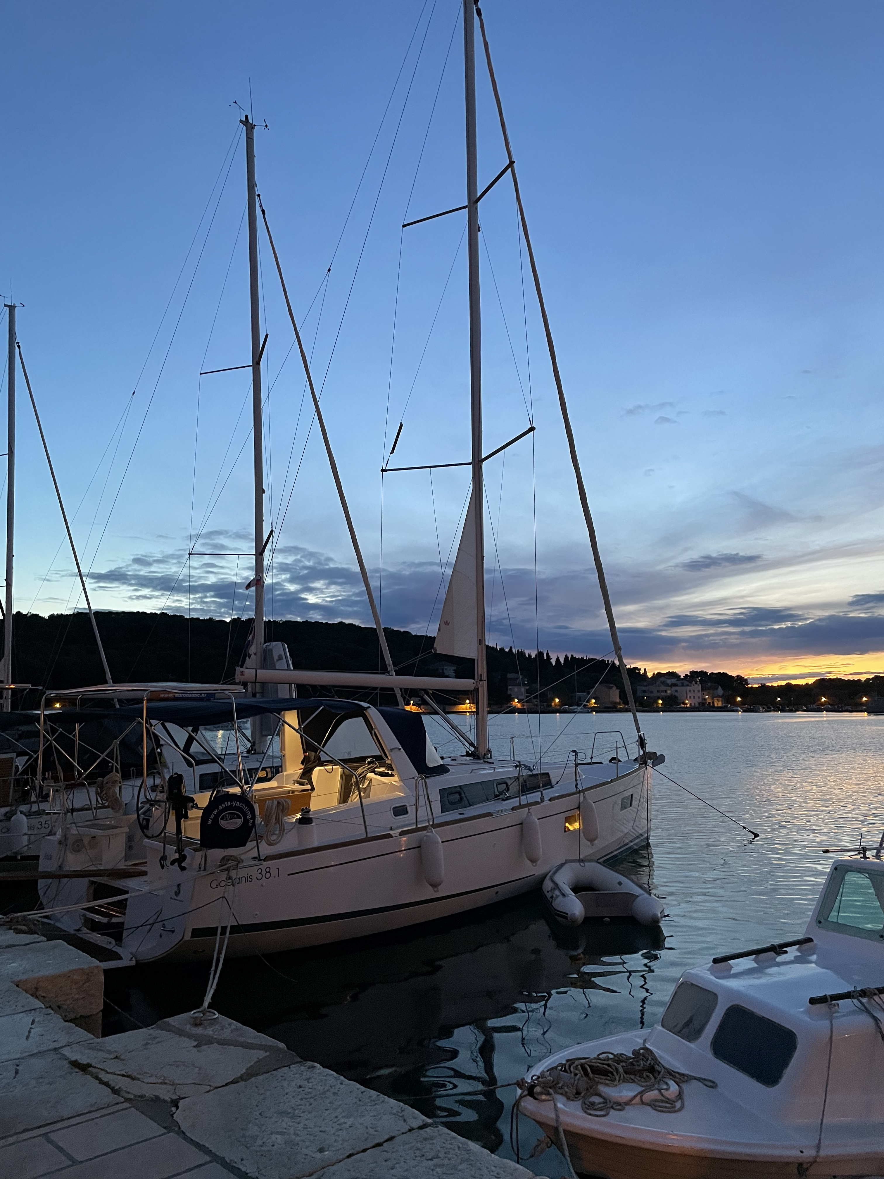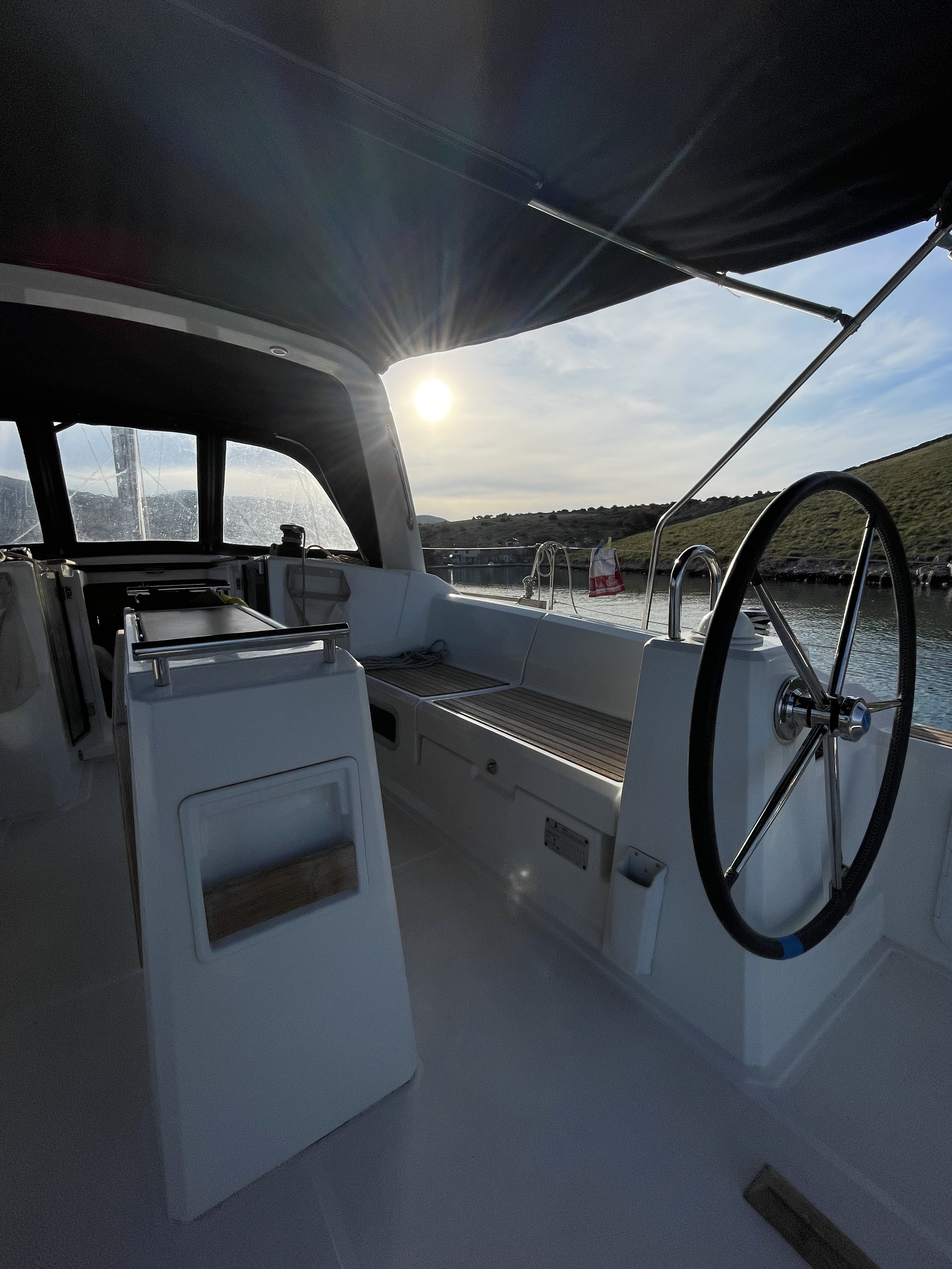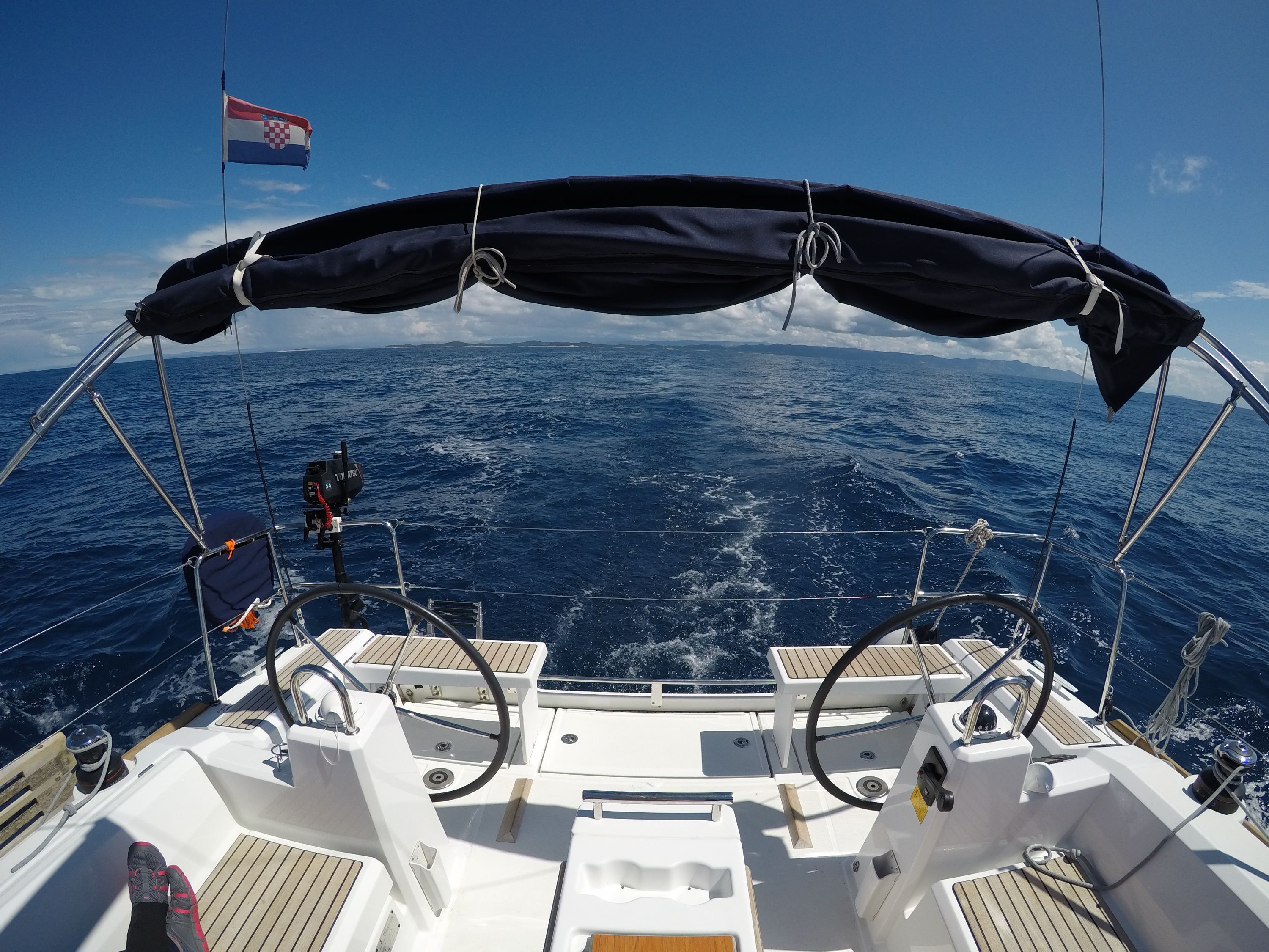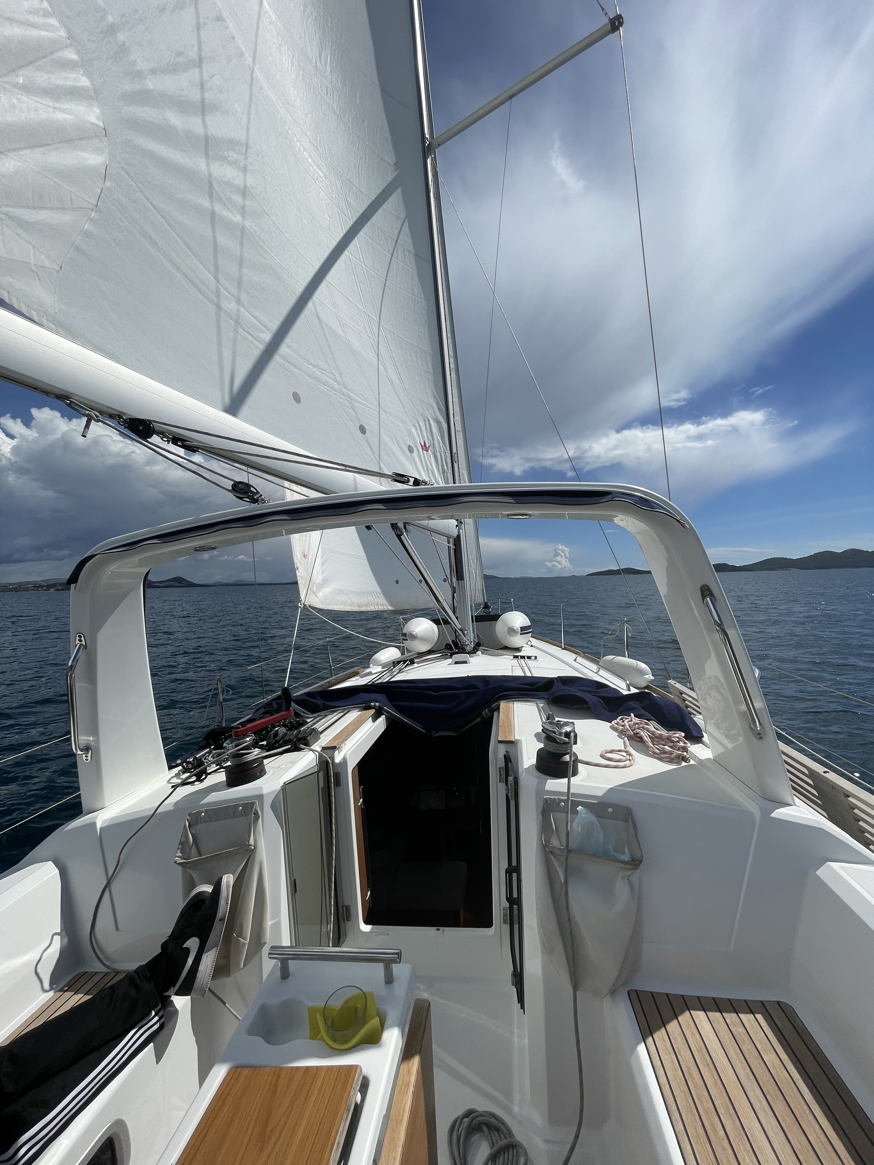 | Outside | Badeplattform, Biminitop, Bootshaken, Buganker, Cockpitdusche, Cockpittisch, Deckbürste, Dieselkanister , Eimer mit Seil, elektr. Ankerwinsch, Fender, Festmacherleinen, Gangway, Solaranlage, Sprayhood, Wasserschlauch, Winschen |