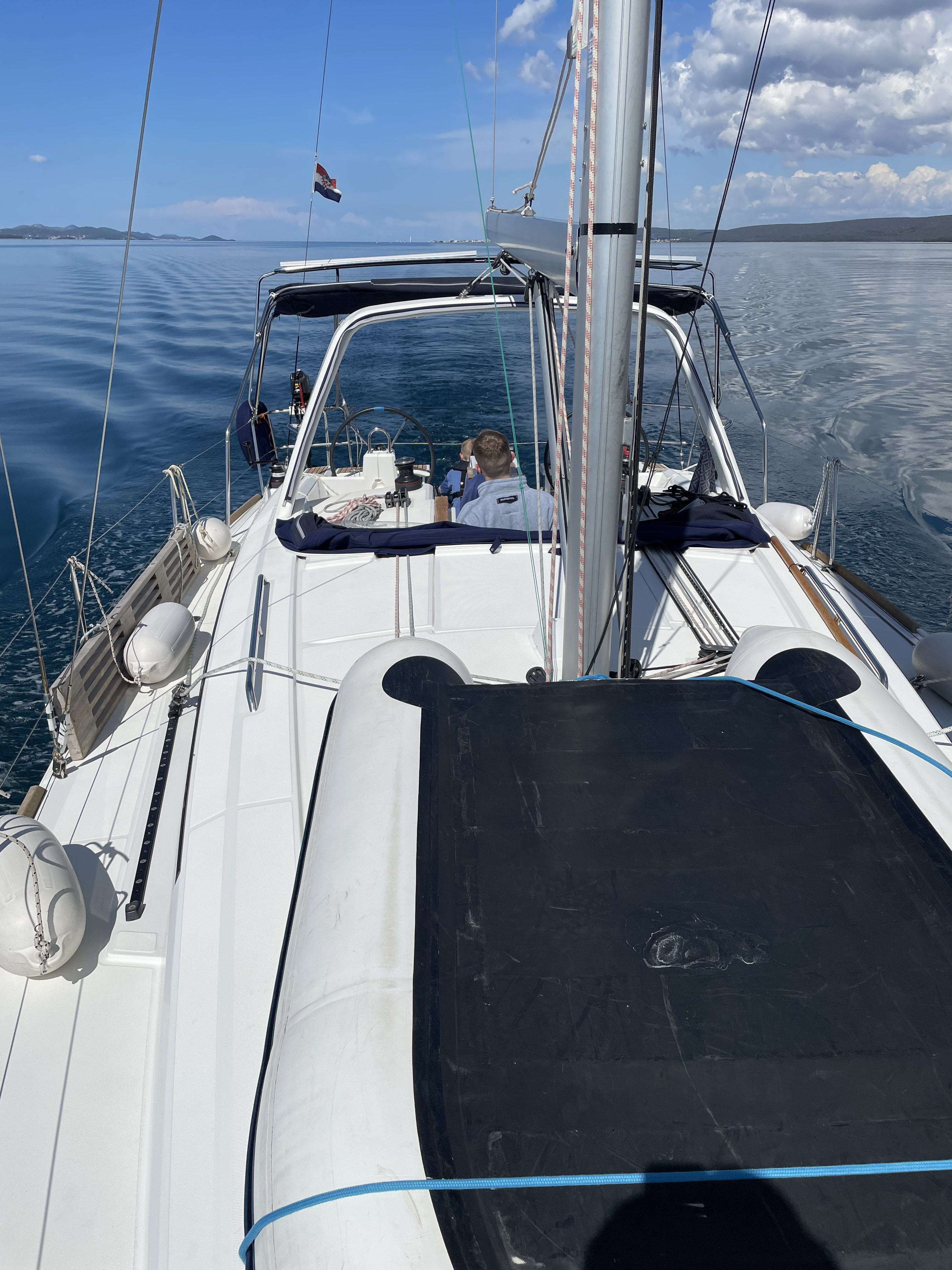 | Navigation | Barometer, Echolot, Fernglas, GPS mit Kartenplotter im Cockpit, Hafenhandbücher, Handpeilkompass, Kompass, Navigationsbesteck, Seekarten, Sumlog, Windmesser |