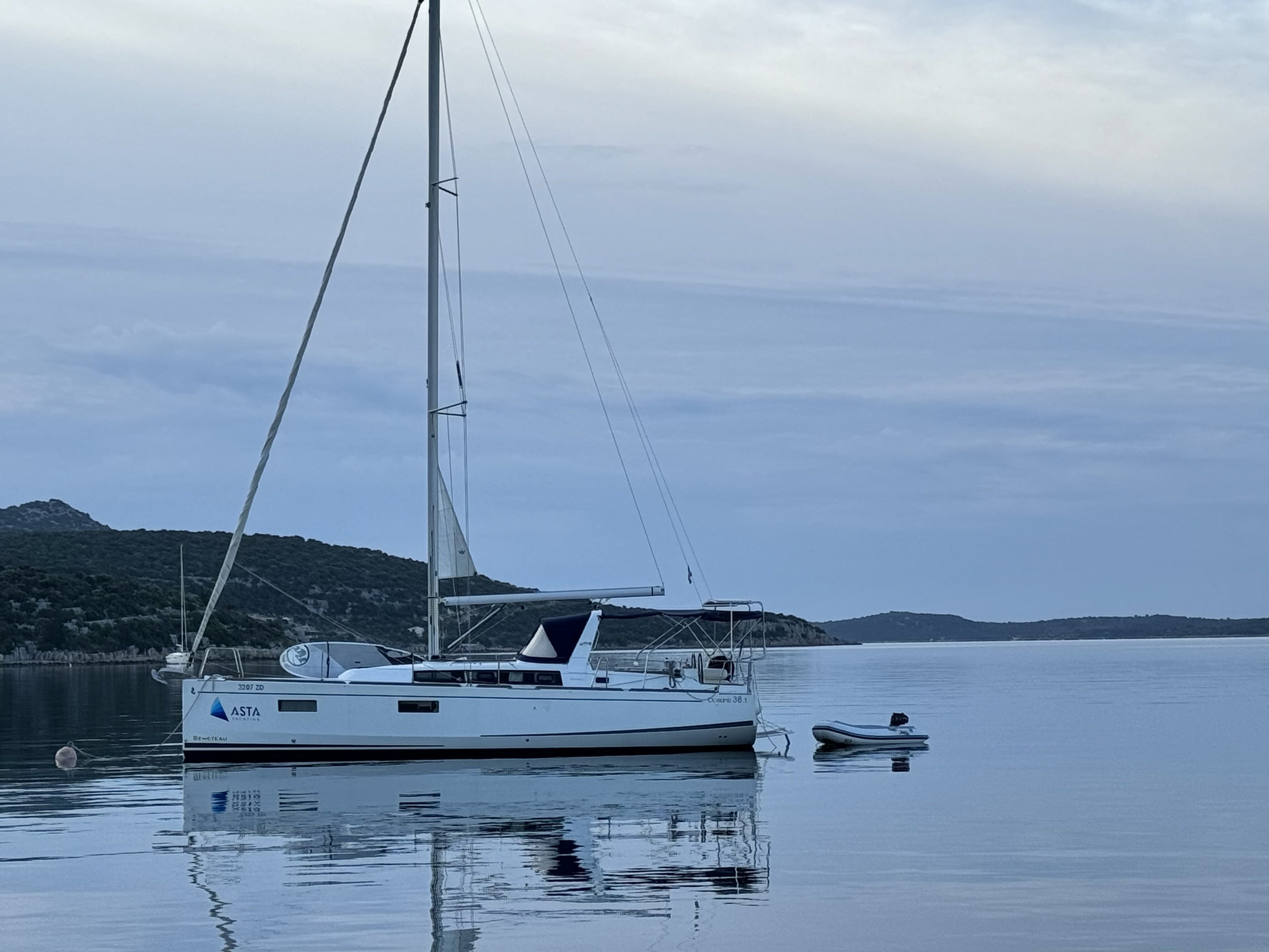 | Outside | Badeplattform, Biminitop, Bootshaken, Buganker, Cockpitdusche, Cockpittisch, Deckbürste, Dieselkanister , Eimer mit Seil, elektr. Ankerwinsch, Fender, Festmacherleinen, Gangway, Solaranlage, Sprayhood, Wasserschlauch, Winschen |