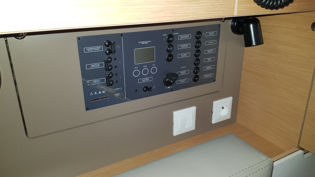 | Outside | 220 V-Landanschluss, Biminitop, Cockpitdusche, Cockpitlautsprecher, Cockpitpolster, Cockpittisch, elektr. Ankerwinsch, Sprayhood |