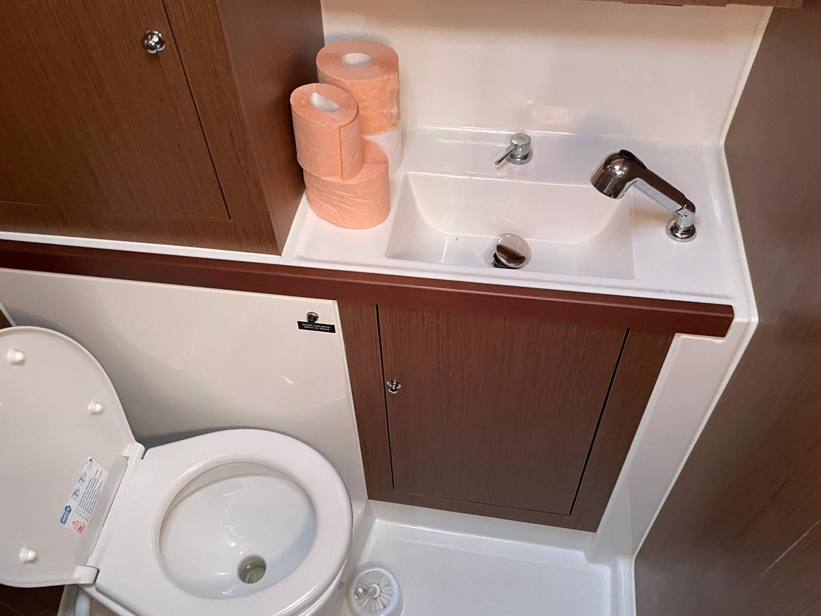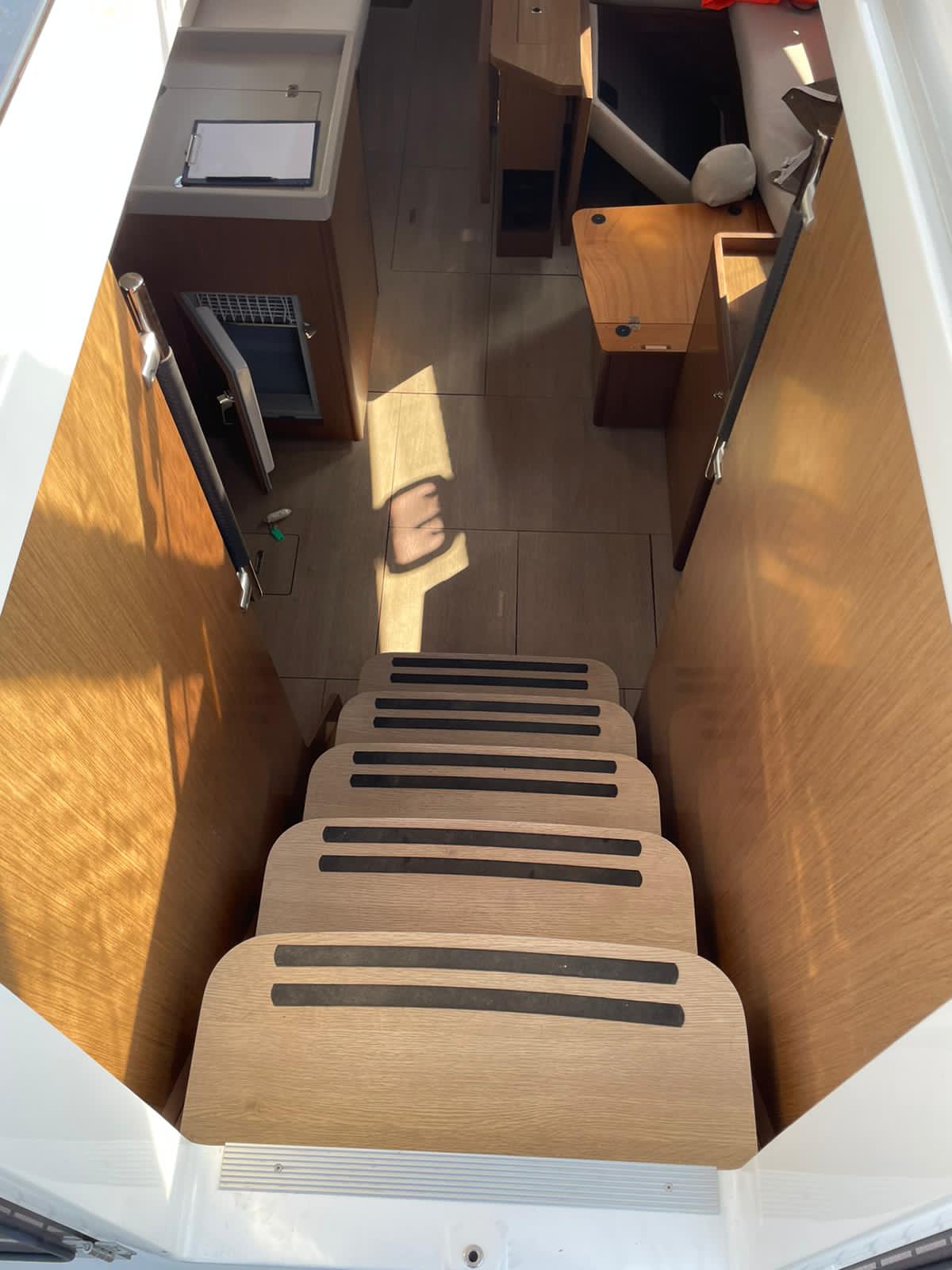 | Outside | Biminitop, Bootshaken, Cockpitlautsprecher, Cockpittisch, Deckbürste, elektr. Ankerwinsch, Festmacherleinen, Solaranlage, Sprayhood, Teak im Cockpit, Unterwasserbeleuchtung, Wasserschlauch, Windex, Winschen |