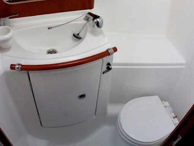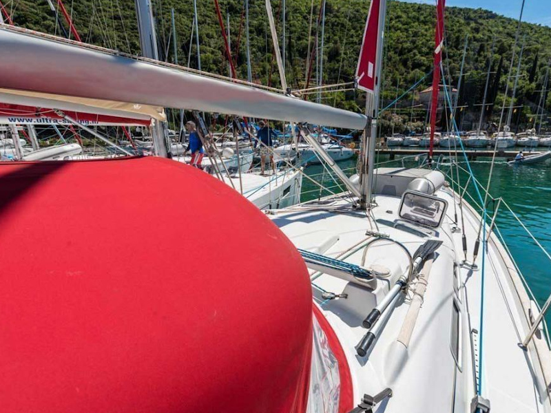 | Outside | 220 V-Landanschluss, Anker mit Kette, Biminitop, Bootshaken, Cockpittisch, Fender, Festmacherleinen, Gangway, Kugelfender, Solaranlage, Sprayhood, Teak im Cockpit, Wasserkanister , Wasserschlauch, Windex |