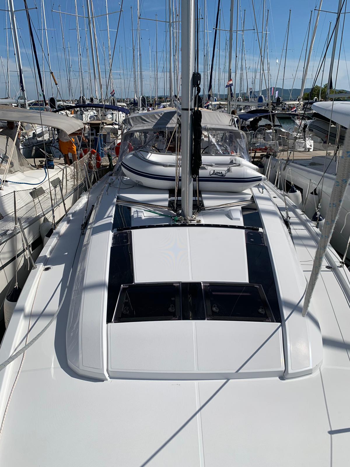 | Outside | Biminitop, Bootshaken, Cockpitlautsprecher, Cockpittisch, Deckbürste, elektr. Ankerwinsch, Solaranlage, Sprayhood, Teak im Cockpit, Unterwasserbeleuchtung, Windex |
